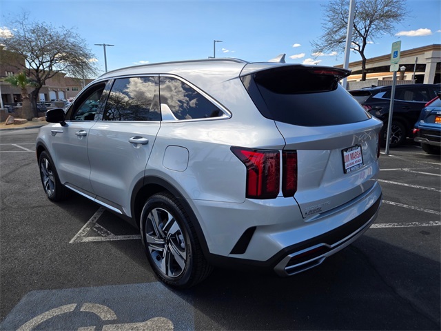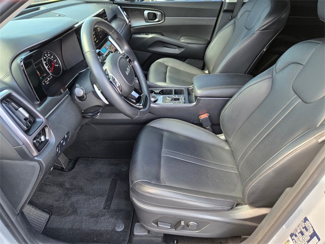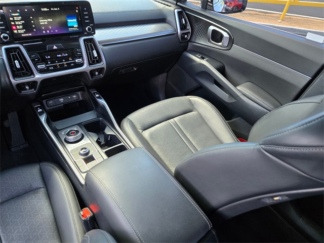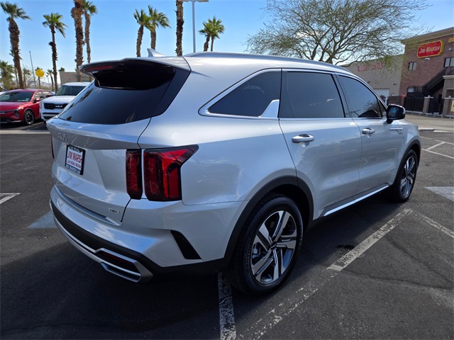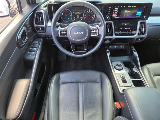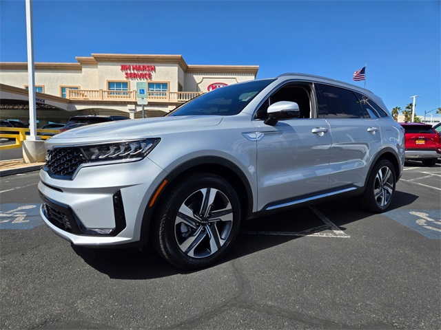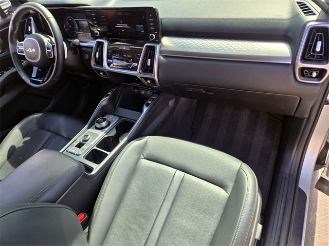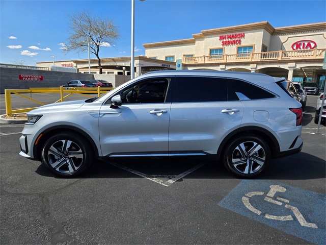 CARFAX One-Owner.Priced below KBB Fair Purchase Price!Odometer is 16004 miles below market average!36/33 City/Highway MPGSilky Silver 2023 Kia Sorento Hybrid EX AWD 6-Speed Automatic 1.6L I4 DGI Hybrid Turbocharged DOHC 16V LEV3-ULEV70 1.6L I4 DGI Hybrid Turbocharged DOHC 16V LEV3-ULEV70.If you don't drive here, you can't save here!Price may not include recon fee. 1.6L I4 DGI Hybrid Turbocharged DOHC 16V LEV3-ULEV70, 3rd row seats: split-bench, 4-Wheel Disc Brakes, 6 Speakers, ABS brakes, Air Conditioning, Alloy wheels, AM/FM radio: SiriusXM, Apple CarPlay & Android Auto, Auto High-beam Headlights, Automatic temperature control, Axle Ratio: 3.510, Brake assist, Bumpers: body-color, Carpet Floor Mats, Delay-off headlights, Driver door bin, Driver vanity mirror, Dual front impact airbags, Dual front side impact airbags, Electronic Stability Control, Emergency communication system, Exterior Parking Camera Rear, Four wheel independent suspension, Front anti-roll bar, Front Bucket Seats, Front Center Armrest, Front dual zone A/C, Front fog lights, Front reading lights, Fully automatic headlights, Heated door mirrors, Heated Front Bucket Seats, Heated front seats, Illuminated entry, Knee airbag, Leather steering wheel, Low tire pressure warning, Navigation System, Occupant sensing airbag, Outside temperature display, Overhead airbag, Overhead console, Panic alarm, Passenger door bin, Passenger vanity mirror, Power door mirrors, Power driver seat, Power Liftgate, Power passenger seat, Power steering, Power windows, Radio data system, Radio: AM/FM/HD Radio/SiriusXM Audio System, Rear air conditioning, Rear anti-roll bar, Rear reading lights, Rear window defroster, Rear window wiper, Remote keyless entry, Roof rack: rails only, Security system, Smart Key w/ Push Button and Remote Start, Speed control, Speed-sensing steering, Split folding rear seat, Spoiler, Steering wheel mounted audio controls, SynTex Artificial Leather Seat Trim, Tachometer, Telescoping steering wheel, Tilt steering wheel, Traction control, Trip computer, Turn signal indicator mirrors, Variably intermittent wipers, and Wheels: 19" Machine-Finished Alloy.