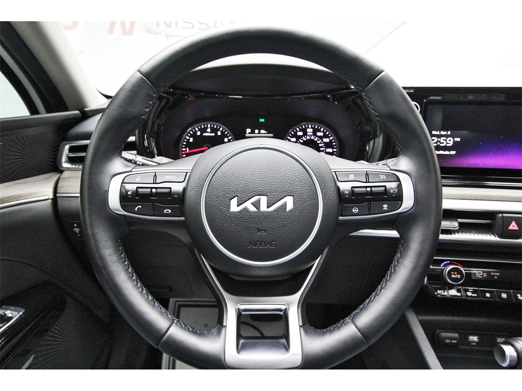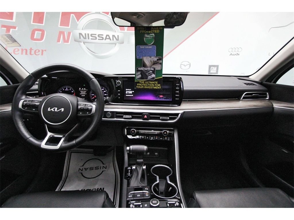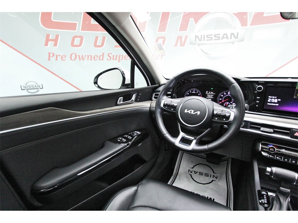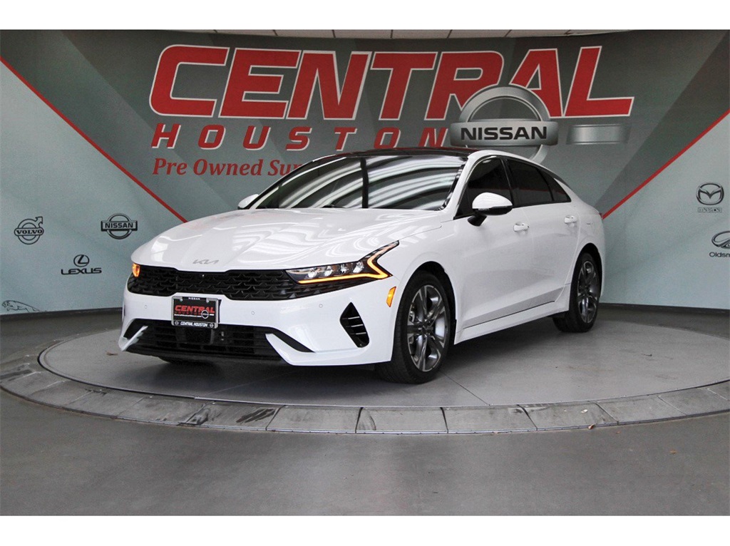 Central Houston Nissan is proud to present you with another True Market Priced Pre-Owned Vehicle. This 2022 Kia K5 EX is loaded with the following Factory Options: EX Premium Package (10-Way Power Passenger Seat, Active Sound Design, Auto Up/Down Rear Windows, Bose Premium Audio, Forward Collision Avoidance-Assist - Cyclist, Forward Collision Avoidance-Assist - Junction Turn, Heated Steering Wheel, LED Rear Combi Lamps, Memory Driver's Seat & Outside Mirrors, Navigation-Based Smart Cruise Control - Curve, Outside Mirrors w/LED Turn Signals, Parking Collision Avoidance-Assist - Reverse, Parking Distance Warning - Forward, Power Child Lock, Power Folding Outside Mirrors, Safe Exit Assist w/Lock, Smart Cruise Control w/Stop & Go, and Surround View Monitor), 4-Wheel Disc Brakes, 6 Speakers, ABS brakes, Air Conditioning, Alloy wheels, AM/FM radio: SiriusXM, Apple CarPlay & Android Auto, Auto High-beam Headlights, Automatic temperature control, Brake assist, Bumpers: body-color, Cargo Mat, Delay-off headlights, Driver door bin, Driver vanity mirror, Dual front impact airbags, Dual front side impact airbags, Electronic Stability Control, Emergency communication system, Four wheel independent suspension, Front anti-roll bar, Front Bucket Seats, Front Center Armrest, Front dual zone A/C, Front reading lights, Fully automatic headlights, Heated & Ventilated Front Bucket Seats, Heated door mirrors, Heated front seats, Illuminated entry, Knee airbag, Leatherette Seat Trim, Low tire pressure warning, Navigation System, Occupant sensing airbag, Outside temperature display, Overhead airbag, Overhead console, Panic alarm, Passenger door bin, Passenger vanity mirror, Power door mirrors, Power driver seat, Power moonroof, Power steering, Power windows, Radio data system, Radio: AM/FM/MP3 Audio System, Rear anti-roll bar, Rear reading lights, Rear seat center armrest, Rear side impact airbag, Rear window defroster, Remote keyless entry, Security system, Smart Key w/ Push Button and Remote Start, Speed control, Speed-sensing steering, Split folding rear seat, Steering wheel mounted audio controls, Tachometer, Telescoping steering wheel, Tilt steering wheel, Traction control, Trip computer, Variably intermittent wipers, Ventilated front seats, and Wheels: 7.5J x 18" Gray Machined Finish Alloy!!Central Houston Nissan is more than just your typical car dealership. When our customers visit us, our goal is to provide quality vehicles, exceptional service and a friendly atmosphere. Our staff has been trained to create ease during your purchase or service experience and we are always making sure you get everything you want and deserve out of your visit. Our vision and mission is an employee-centered and customer-focused environment. Vehicles may be subject to prep package and market adjustment. When you buy from Central Houston Nissan, we'll make it the best car buying experience you've ever had. When you purchase a New Nissan or a qualifying Pre-Owned vehicle from Central Houston Nissan, you are automatically enrolled into our Central Houston Nissan Central Care Program at no cost to you. You can’t beat that! Vehicles may be subject to prep package and market adjustment. Stop by 2901 S Loop W, Houston, Texas 77054 today!!!