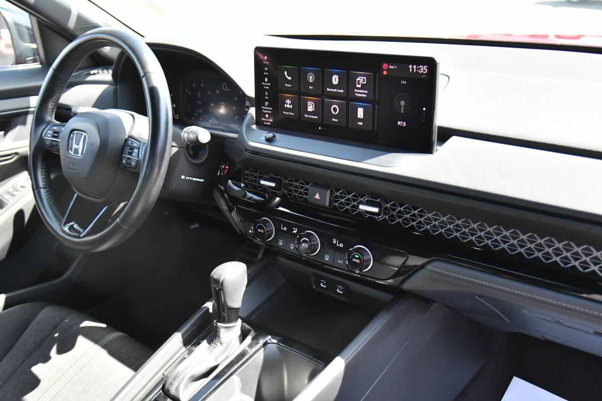 Scores 41 Highway MPG and 46 City MPG! This Honda Accord Hybrid delivers a Gas/Electric I-4 2.0 L/122 engine powering this Variable transmission. Wheels: 19 x 8.5J Berlina Black -inc: machined face, Vehicle Stability Assist (VSA) Electronic Stability Control (ESC), Valet Function.*This Honda Accord Hybrid Features the Following Options *Trunk Rear Cargo Access, Trip Computer, Transmission: Electronic Continuously Variable -inc: econ, normal, sport and individual modes, Traffic Jam Assist, Tires: 235/40R19 96V AS, Tire Specific Low Tire Pressure Warning, Tire mobility kit, Strut Front Suspension w/Coil Springs, Speed Sensitive Variable Intermittent Wipers, Smart Device Remote Engine Start.