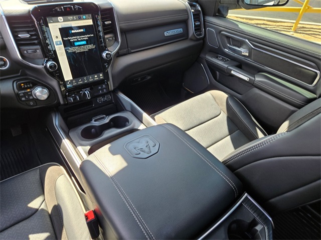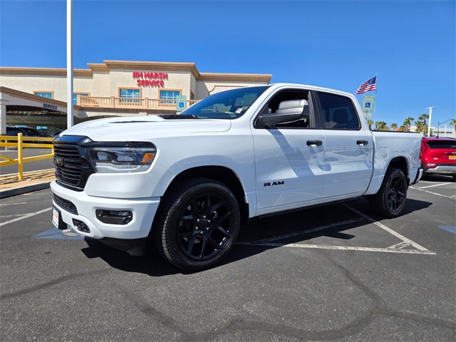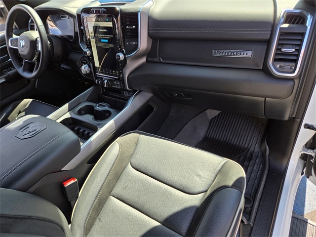 CARFAX One-Owner.Priced below KBB Fair Purchase Price!Odometer is 8249 miles below market average!Bright White Clearcoat 2024 Ram 1500 Laramie 4WD 8-Speed Automatic HEMI 5.7L V8 Multi Displacement VVT eTorque ** BLUETOOTH / HANDS FREE **, NAVIGATION, AUTOMATIC, * V8 *.If you don't drive here, you can't save here!Price may not include recon fee. Advanced Safety Group (Adaptive Cruise Control w/Stop & Go, Auto High Beam Headlamp Control, Lane Keep Assist, Parallel & Perp Park Assist w/Stop, Pedestrian Emergency Braking, and Surround View Camera System), Bed Utility Group (MOPAR 4 Adjustable Cargo Tie-Down Hooks, MOPAR Spray In Bedliner, and Pick-Up Box Lighting), Laramie Level B Equipment Group (2nd Row In Floor Storage Bins, 4G LTE Wi-Fi Hot Spot, Apple CarPlay, Blind Spot & Cross Path Detection, Connected Travel & Traffic Services, Connectivity - US/Canada, Electric Shift-On-Demand Transfer Case, Foam Bottle Insert (Door Trim Panel), For Details, Visit DriveUconnect.com, For More Info, Call 800-643-2112, Front Door Accent Lighting, Front LED Fog Lamps, Global Telematics Box Module (TBM), Google Android Auto, GPS Navigation, harman/kardon 19 Speaker Premium Sound, HD Radio, Heated Second Row Seats, Integrated Voice Command w/Bluetooth, LED Reflector Headlamps, Power Adjustable Pedals w/Memory, Radio: Uconnect 5 Nav w/12.0" Display, Rain Sensitive Windshield Wipers, Rear 60/40 Folding Split Recline Seat, Rear Door Accent Lighting, Rear Power Sliding Window, Rear Underseat Compartment Storage, Rear Window Defroster, Remote Tailgate Release, SiriusXM Radio Service, SiriusXM w/360L, and USB Host Flip), Night Edition (3 Rear Seat Head Restraints, 4 Way Front Headrests, Accent Color Door Handles, Accent Color Premium Power Mirrors, Auto-Dimming Exterior Driver Mirror, Black Exterior Truck Badging, Black Headlamp Bezels, Black Interior Accents, Black Painted Exterior Mirrors Caps, Body Color Front Bumper, Body Color Rear Bumper w/Step Pads, Bucket Seats, Convex Wide-Angle Exterior Mirror Insert, Driver Seat Memory, Dual Exhaust w/Black Tips, Exterior Mirrors Courtesy Lamps, Exterior Mirrors w/Heating Element, Exterior Mirrors w/Memory, Exterior Mirrors w/Supplemental Signals, Front Seat Back Map Pockets, Full Length Upgraded Floor Console, Grille Surround 3 Black Texture 2 Black, Heated Front Seats, Heated Steering Wheel, Leather Trimmed Bucket Seats, Power 2-Way Driver Lumbar Adjust, Power 2-Way Passenger Lumbar Adjust, Power 8-Way Driver & Passenger Seats, Power-Folding Mirrors, RAM Grille Badge - Black, Rear 60/40 Folding Seat, Sport Performance Hood, Ventilated Front Seats, and Wheels: 22" x 9" Forged Aluminum), Quick Order Package 27H Laramie, Technology Group (Digital Rearview Mirror, Heads-Up Display, and LED CHMSL Lamp), Trailer Tow Group (Chrome Exterior Mirrors, Mirror Clearance/Running Lights, Mirror-Mounted Aux Reverse Lamps, Trailer Brake Control, Trailer Light Check, Trailer Reverse Steering Control, and Trailer Tire Pressure Monitoring System), 10 Speakers, 3.21 Rear Axle Ratio, 33 Gallon Fuel Tank, 4-Wheel Disc Brakes, 48V Belt Starter Generator, ABS brakes, Air Conditioning, Alloy wheels, AM/FM radio: SiriusXM with 360L, Anti-Spin Differential Rear Axle, Apple CarPlay/Android Auto, Audio memory, Auto-dimming door mirrors, Auto-dimming Rear-View mirror, Automatic temperature control, Brake assist, Bumpers: chrome, Class IV Receiver Hitch, Compass, Delay-off headlights, Driver door bin, Driver vanity mirror, Dual front impact airbags, Dual front side impact airbags, Electronic Stability Control, Front anti-roll bar, Front Center Armrest w/Storage, Front dual zone A/C, Front fog lights, Front License Plate Bracket, Front reading lights, Front wheel independent suspension, Fully automatic headlights, Garage door transmitter, Heated door mirrors, Heated front seats, Heated steering wheel, Illuminated entry, Leather steering wheel, Leather Trim 40/20/40 Bench Seat, Low tire pressure warning, Manufacturer's State