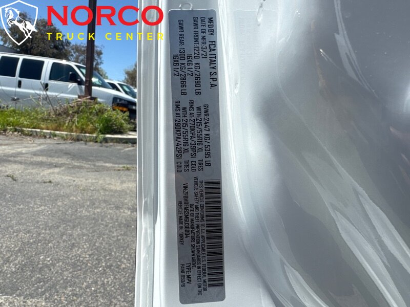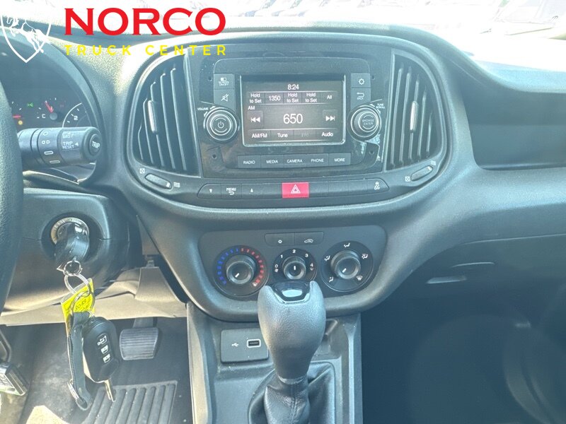 INSTALLED FEATURES: Air filtration, Front air conditioning, Front air conditioning zones: single, Airbag deactivation: occupant sensing passenger, Front airbags: dual, Knee airbags: driver, Side airbags: front, Side curtain airbags: front, Antenna type: mast, Auxiliary audio input: Bluetooth / jack / USB, Radio: AM/FM / touch screen display / voice operated, Speed sensitive volume control, Total speakers: 4, ABS: 4-wheel, Braking assist, Electronic brakeforce distribution, Front brake type: ventilated disc, Power brakes, Rear brake type: drum, Armrests: drivers seat, Floor material: carpet, Shift knob trim: urethane, Steering wheel trim: urethane, Assist handle: front / rear, Cargo area light, Cupholders: front, Multi-function remote: keyless entry / panic alarm / trunk release, One-touch windows: 2, Overhead console: front, Power outlet(s): 12V front / USB front, Power steering, Reading lights: front, Rearview mirror: manual day/night, Steering wheel: tilt and telescopic, Steering wheel mounted controls: voice control, Storage: cargo tie-down anchors and hooks / door pockets, Sun visors, Body side moldings: black, Door handle color: black, Front bumper color: black, Grille color: black, License plate bracket: front, Mirror color: black, Rear bumper color: black, Rear trunk/liftgate: barn, Side door type: dual manual sliding, Window trim: black, Infotainment: Uconnect, Infotainment screen size: 5 in., Clock, Digital odometer, External temperature display, Fuel economy display: MPG / range, Gauge: tachometer, Powertrain hour meter, Trip odometer, Warnings and reminders: low battery / low fuel level / maintenance due, Headlights: auto delay off / halogen, Side mirror adjustments: manual / manual folding, Alternator: 160 amps, Battery: maintenance-free, Battery rating: 700 CCA, Battery saver, Emissions: 50 state, OEM roof height: undefined, Camera system: rearview, Crumple zones: front, Impact sensor: door unlock / fuel cut-off / post-collision safety system, Rearview monitor: in dash, Safety brake pedal system, Emergency locking retractors: front, Front seatbelts: 3-point, Seatbelt force limiters: front, Seatbelt pretensioners: front, Seatbelt warning sensor: front, Driver seat manual adjustments: 4 / reclining, Front headrests: 2 / adjustable, Front seat type: bucket, Passenger seat manual adjustments: 4 / reclining, Upholstery: cloth, Anti-theft system: vehicle immobilizer, Power door locks: auto-locking, Hill holder control, Roll stability control, Stability control, Traction control, Trailer stability control, Front shock type: twin-tube gas, Front spring type: coil, Front stabilizer bar: diameter 26 mm, Front struts: MacPherson, Front suspension classification: independent, Front suspension type: lower control arms, Rear shock type: twin-tube gas, Rear spring type: coil, Rear stabilizer bar: diameter 16 mm, Rear suspension classification: independent, Rear suspension type: multi-link, Driver assistance app: roadside assistance, Hands-free phone call integration: voice operated, Wireless data link: Bluetooth, Spare tire kit: inflator kit / tire sealant, Tire Pressure Monitoring System, Wheel covers: partial, Wheels: steel, Front wipers: intermittent, Power windows: front