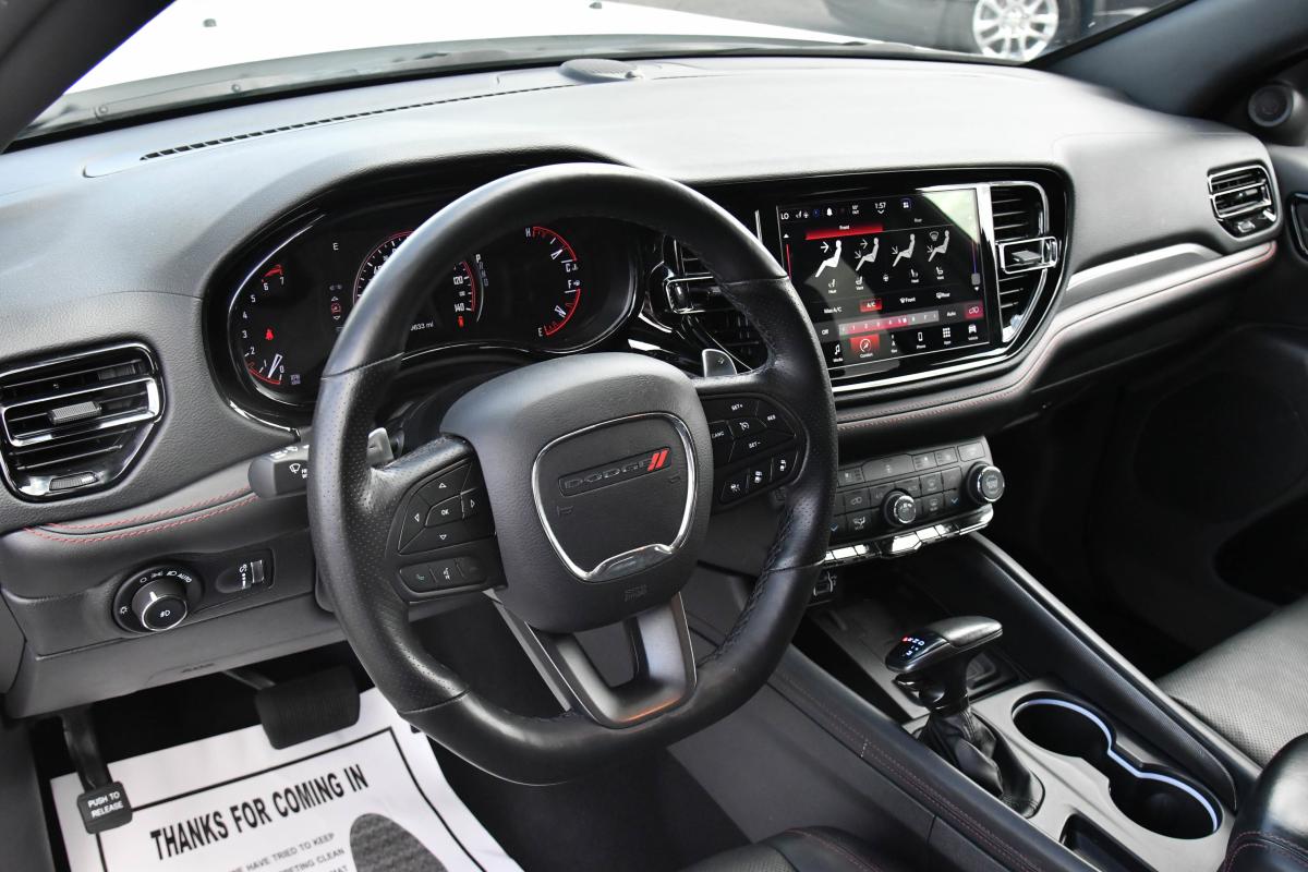 Boasts 22 Highway MPG and 14 City MPG! This Dodge Durango delivers a Regular Unleaded V-8 5.7 L/345 engine powering this Automatic transmission. WHITE KNUCKLE CLEARCOAT, WHEELS: 20 X 8.0 FINE SILVER (STD), TRANSMISSION: 8-SPEED AUTOMATIC (8HP70) (STD).*This Dodge Durango Features the Following Options *QUICK ORDER PACKAGE 22T R/T PLUS -inc: Engine: 5.7L V8 HEMI MDS VVT, Transmission: 8-Speed Automatic (8HP70), 7 & 4 Pin Wiring Harness, Integrated Roof Rail Crossbars, Power Driver/Passenger 4-Way Lumbar Adjust, LED Auxiliary Low Beam & Turn Signal, Auto Dim Exterior Driver Mirror, Dual Remote USB Port - Charge Only, Trailer Brake Control, Heated Second Row Seats, Black Roof Rails, Class IV Receiver Hitch, Floor Console w/Leather Armrest, Power 6x9 Multi-Function Foldaway Mirrors, Power Tilt & Telescopic Steering Column, Exterior Mirrors w/Supplemental Signals, Power 8-Way Driver Memory 8-Way Passenger Seats, Ventilated Front Seats, Full Speed Forward Collision Warning Plus, 115V Auxiliary Power Outlet, Exterior Mirrors w/Memory, Adaptive Cruise Control w/Stop, Leather Wrapped Door Panels, Premium LED Fog Lamps, Radio/Driver Seat/Mirrors Memory , TIRES: 265/50R20 BSW AS LRR (STD), MANUFACTURER'S STATEMENT OF ORIGIN, FRONT LICENSE PLATE BRACKET, ENGINE: 5.7L V8 HEMI MDS VVT (STD), BLACK, LEATHER TRIMMED BUCKET SEATS, Wheels: 20 x 8.0 Fine Silver, Valet Function, Urethane Gear Shifter Material, Uconnect w/Bluetooth Wireless Phone Connectivity.