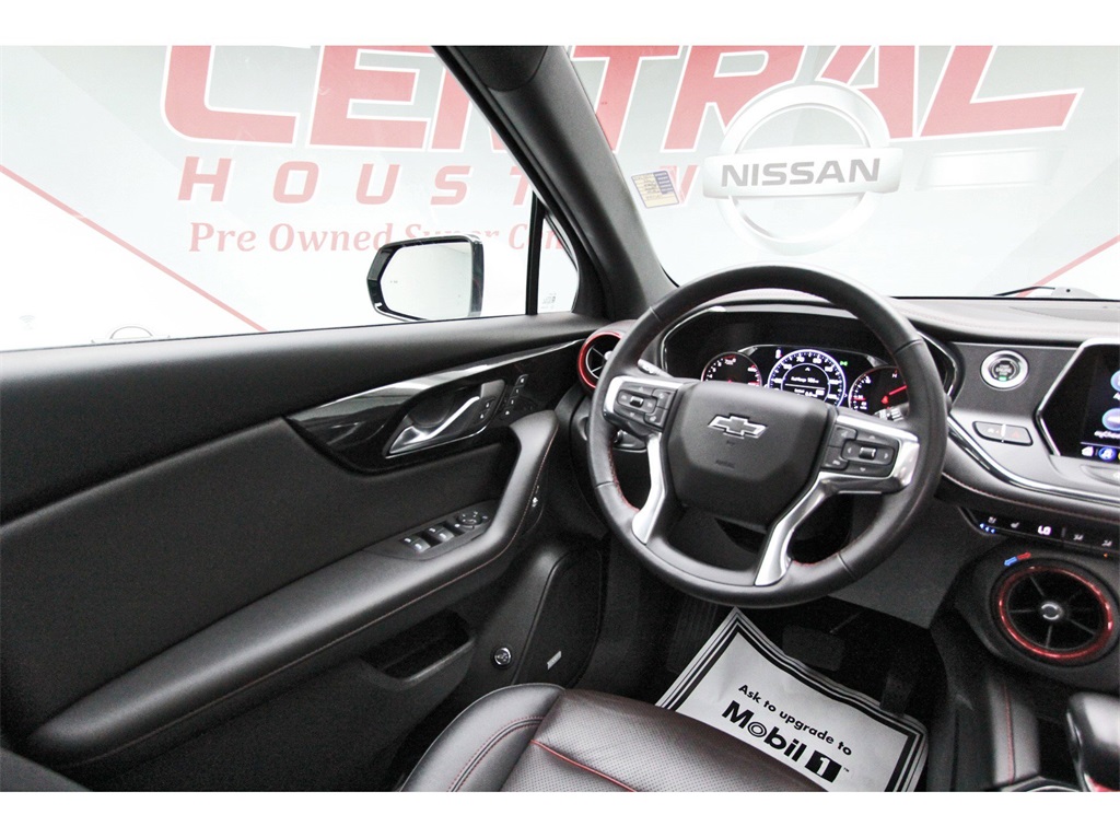 Central Houston Nissan is proud to present you with another True Market Priced Pre-Owned Vehicle. This 2022 Chevrolet Blazer RS is loaded with the following Factory Options: Enhanced Convenience Package (Heated Rear Outboard Seating Positions, Memory Settings For Driver Seat & Exterior Mirrors, Power Tilt & Telescoping Steering Column, and Ventilated Driver & Front Passenger Seats), Preferred Equipment Group 1RS (Heated Driver & Front Passenger Seats and Heated Steering Wheel), 3.49 Final Drive Axle Ratio, 4-Wheel Disc Brakes, 6 Speakers, 6-Speaker Audio System Feature, 6-Way Power Front Passenger Seat Adjuster, ABS brakes, Air Conditioning, Alloy wheels, AM/FM radio: SiriusXM with 360L, Apple CarPlay/Android Auto, Auto High-beam Headlights, Auto-dimming door mirrors, Auto-dimming Rear-View mirror, Automatic temperature control, Black 2-Tone Roof, Black Lug Nut & Wheel Lock Kit (LPO), Brake assist, Bumpers: body-color, Child-Seat-Sensing Airbag, Compass, Delay-off headlights, Driver door bin, Driver vanity mirror, Dual front impact airbags, Dual front side impact airbags, Electronic Stability Control, Emergency communication system: OnStar and Chevrolet connected services capable, Exterior Parking Camera Rear, Four wheel independent suspension, Front anti-roll bar, Front Bucket Seats, Front Center Armrest, Front dual zone A/C, Front reading lights, Fully automatic headlights, Garage door transmitter, Heated door mirrors, Heated front seats, Heated steering wheel, High-Intensity Discharge Headlights, Illuminated entry, Knee airbag, Leather Shift Knob, Low tire pressure warning, Navigation System, Not Equipped w/Driver & Fr Passenger Heated Seats, Not Equipped w/Heated Rear Outboard Seats, Not Equipped w/Heated Steering Wheel, Not Equipped w/Rear Park Assist, Occupant sensing airbag, Outside temperature display, Overhead airbag, Overhead console, Panic alarm, Passenger door bin, Passenger vanity mirror, Perforated Leather-Appointed Seat Trim, Power door mirrors, Power driver seat, Power Liftgate, Power Panoramic Tilt-Sliding Sunroof, Power passenger seat, Power steering, Power windows, Radio data system, Radio: Chevrolet Infotainment 3 Plus System, Rear anti-roll bar, Rear reading lights, Rear seat center armrest, Rear window defroster, Rear window wiper, Remote keyless entry, Ride & Handling Suspension, Security system, SiriusXM w/360L, Speed control, Speed-sensing steering, Split folding rear seat, Spoiler, Steering wheel mounted audio controls, Tachometer, Telescoping steering wheel, Tilt steering wheel, Traction control, Trip computer, Turn signal indicator mirrors, Variably intermittent wipers, Voltmeter, Wheels: 20" Dark Android Machined-Face Aluminum, and Wheels: 21" Gloss Black Aluminum!!Central Houston Nissan is more than just your typical car dealership. When our customers visit us, our goal is to provide quality vehicles, exceptional service and a friendly atmosphere. Our staff has been trained to create ease during your purchase or service experience and we are always making sure you get everything you want and deserve out of your visit. Our vision and mission is an employee-centered and customer-focused environment. Vehicles may be subject to prep package and market adjustment. When you buy from Central Houston Nissan, we'll make it the best car buying experience you've ever had. When you purchase a New Nissan or a qualifying Pre-Owned vehicle from Central Houston Nissan, you are automatically enrolled into our Central Houston Nissan Central Care Program at no cost to you. You can’t beat that! Vehicles may be subject to prep package and market adjustment. Stop by 2901 S Loop W, Houston, Texas 77054 today!!!