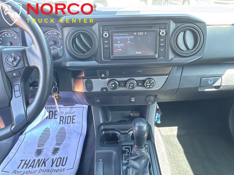 -- INSTALLED FEATURES: Air filtration, Front air conditioning, Front air conditioning zones: single, Airbag deactivation: occupant sensing passenger, Front airbags: dual, Knee airbags: dual front, Side airbags: front, Side curtain airbags: front / rear, Antenna type: mast, Auxiliary audio input: Bluetooth / iPod/iPhone / jack / USB, In-Dash CD: single disc, Radio: AM/FM / touch screen display / voice operated, Radio data system, Speed sensitive volume control, Total speakers: 6, ABS: 4-wheel, Braking assist, Electronic brakeforce distribution, Front brake type: ventilated disc, Power brakes, Rear brake type: drum, Floor material: carpet, Shift knob trim: urethane, Steering wheel trim: urethane, Adaptive cruise control, Assist handle: front / rear, Center console: front console with armrest and storage, Cupholders: front / rear, One-touch windows: 1, Overhead console: front, Power outlet(s): 12V front, Power steering: variable/speed-proportional, Power windows: lockout button, Reading lights: front / rear, Rearview mirror: manual day/night, Steering wheel: tilt and telescopic, Steering wheel mounted controls: audio / cruise control / multi-function / phone / voice control, Storage: door pockets / front seatback / sunglasses holder / under rear seats, Sun visors, Bumper detail: rear step, Door handle color: body-color, Exhaust tip color: stainless steel, Front bumper color: body-color, Grille color: black / black surround, Mirror color: body-color, Rear bumper color: body-color, Side door type: dual rear-hinged access, Skid plate(s): front, Tailgate: removable, Window trim: black, Infotainment: Entune, Infotainment screen size: 6.1 in., Clock, Digital odometer, External temperature display, Fuel economy display: MPG / range, Gauge: tachometer, Instrument cluster screen size: 4.2 in., Multi-function display, Trip odometer, Warnings and reminders: coolant temperature warning / lamp failure / low fuel level / low oil pressure / maintenance due, Daytime running lights, Headlights: auto delay off / auto high beam dimmer / halogen, Side mirror adjustments: manual folding / power, Side mirrors: heated, Battery: maintenance-free, Battery saver, Active head restraints: dual front, Automatic emergency braking: front / front pedestrian, Camera system: rearview, Child seat anchors: LATCH system, Impact sensor: fuel cut-off, Lane deviation sensors, Pre-collision warning system: audible warning / pedestrian detection / visual warning, Rearview monitor: in dash, Safety brake pedal system, Emergency locking retractors: front / rear, Front seatbelts: 3-point, Rear seatbelts: 3-point, Seatbelt force limiters: front, Seatbelt pretensioners: front, Seatbelt warning sensor: front, Driver seat manual adjustments: 4 / lumbar / reclining, Front headrests: 2 / adjustable, Front seat type: bucket, Passenger seat manual adjustments: 4 / reclining, Rear headrests: 2 / foldable, Rear seat folding: folds up, Rear seat type: jumpseats, Upholstery: cloth, Anti-theft system: vehicle immobilizer, Power door locks: auto-locking, Hill holder control, Stability control, Traction control, Front shock type: gas, Front spring type: coil, Front stabilizer bar: diameter 30 mm, Front struts, Front suspension classification: independent, Front suspension type: double wishbone, Rear shock type: gas, Rear spring type: leaf, Rear stabilizer bar, Rear suspension classification: solid live axle, Rear suspension type: multi-leaf, Electronic messaging assistance: voice operated / with read function, Hands-free phone call integration: voice operated, Wireless data link: Bluetooth, Pickup bed cargo management: tie-down anchors, Spare tire mount location: underbody, Spare tire size: full-size, Spare wheel type: steel, Tire Pressure Monitoring System, Wheels: steel, Front wipers: intermittent, Pickup sliding rear window: manual, Power windows, Rear privacy glass