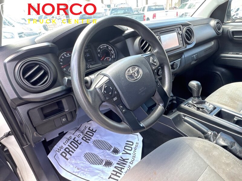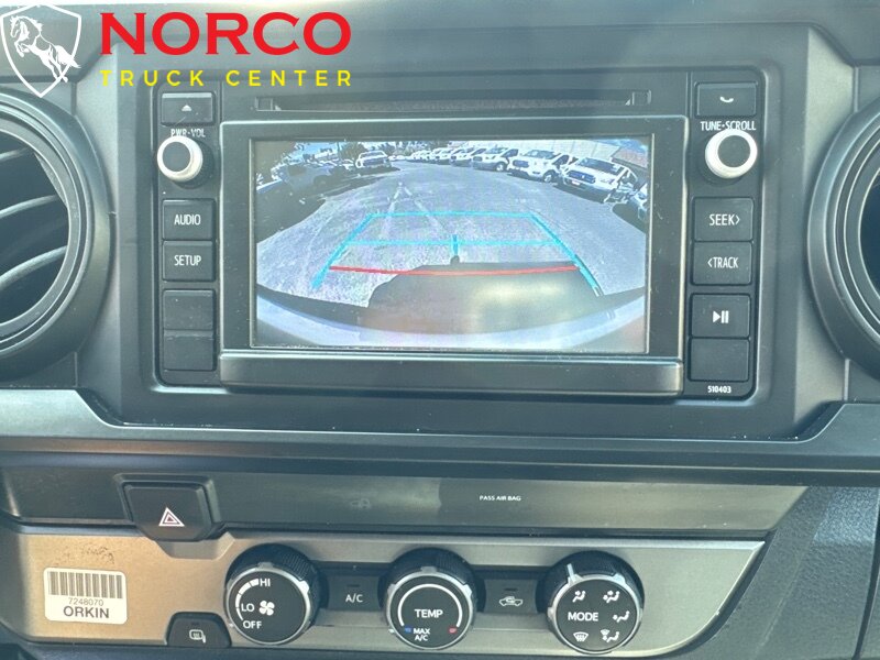 INSTALLED FEATURES: Air filtration, Front air conditioning, Front air conditioning zones: single, Airbag deactivation: occupant sensing passenger, Front airbags: dual, Knee airbags: dual front, Side airbags: front, Side curtain airbags: front / rear, Antenna type: mast, Auxiliary audio input: Bluetooth / iPod/iPhone / jack / USB, In-Dash CD: single disc, Radio: AM/FM / touch screen display / voice operated, Radio data system, Speed sensitive volume control, Total speakers: 6, ABS: 4-wheel, Braking assist, Electronic brakeforce distribution, Front brake type: ventilated disc, Power brakes, Rear brake type: drum, Floor material: carpet, Shift knob trim: urethane, Steering wheel trim: urethane, Adaptive cruise control, Assist handle: front / rear, Center console: front console with armrest and storage, Cupholders: front / rear, One-touch windows: 1, Overhead console: front, Power outlet(s): 12V front, Power steering: variable/speed-proportional, Power windows: lockout button, Reading lights: front / rear, Rearview mirror: manual day/night, Steering wheel: tilt and telescopic, Steering wheel mounted controls: audio / cruise control / multi-function / phone / voice control, Storage: door pockets / front seatback / sunglasses holder / under rear seats, Sun visors, Bumper detail: rear step, Door handle color: body-color, Exhaust tip color: stainless steel, Front bumper color: body-color, Grille color: black / black surround, Mirror color: body-color, Rear bumper color: body-color, Side door type: dual rear-hinged access, Skid plate(s): front, Tailgate: removable, Window trim: black, Infotainment: Entune, Infotainment screen size: 6.1 in., Clock, Digital odometer, External temperature display, Fuel economy display: MPG / range, Gauge: tachometer, Instrument cluster screen size: 4.2 in., Multi-function display, Trip odometer, Warnings and reminders: coolant temperature warning / lamp failure / low fuel level / low oil pressure / maintenance due, Daytime running lights, Headlights: auto delay off / auto high beam dimmer / halogen, Side mirror adjustments: manual folding / power, Side mirrors: heated, Battery: maintenance-free, Battery saver, Active head restraints: dual front, Automatic emergency braking: front / front pedestrian, Camera system: rearview, Child seat anchors: LATCH system, Impact sensor: fuel cut-off, Lane deviation sensors, Pre-collision warning system: audible warning / pedestrian detection / visual warning, Rearview monitor: in dash, Safety brake pedal system, Emergency locking retractors: front / rear, Front seatbelts: 3-point, Rear seatbelts: 3-point, Seatbelt force limiters: front, Seatbelt pretensioners: front, Seatbelt warning sensor: front, Driver seat manual adjustments: 4 / lumbar / reclining, Front headrests: 2 / adjustable, Front seat type: bucket, Passenger seat manual adjustments: 4 / reclining, Rear headrests: 2 / foldable, Rear seat folding: folds up, Rear seat type: jumpseats, Upholstery: cloth, Anti-theft system: vehicle immobilizer, Power door locks: auto-locking, Hill holder control, Stability control, Traction control, Front shock type: gas, Front spring type: coil, Front stabilizer bar: diameter 30 mm, Front struts, Front suspension classification: independent, Front suspension type: double wishbone, Rear shock type: gas, Rear spring type: leaf, Rear stabilizer bar, Rear suspension classification: solid live axle, Rear suspension type: multi-leaf, Electronic messaging assistance: voice operated / with read function, Hands-free phone call integration: voice operated, Wireless data link: Bluetooth, Pickup bed cargo management: tie-down anchors, Spare tire mount location: underbody, Spare tire size: full-size, Spare wheel type: steel, Tire Pressure Monitoring System, Wheels: steel, Front wipers: intermittent, Pickup sliding rear window: manual, Power windows, Rear privacy glass