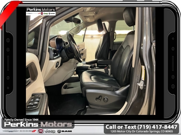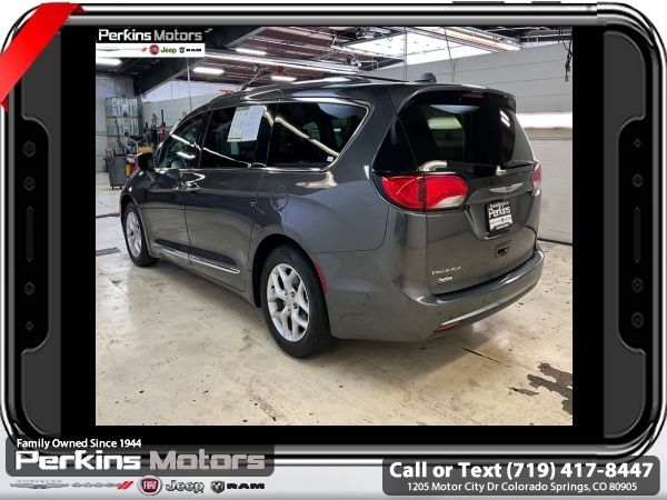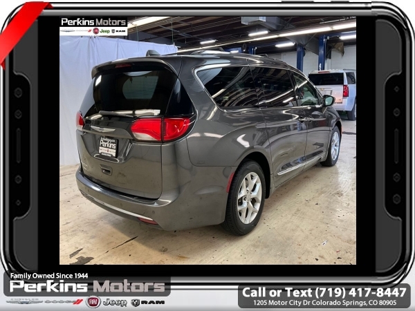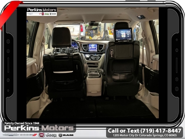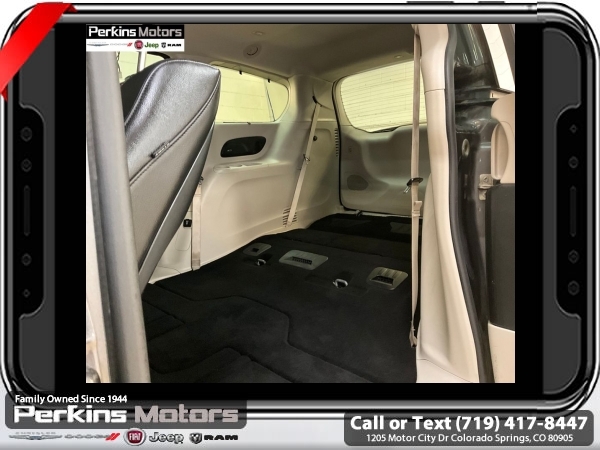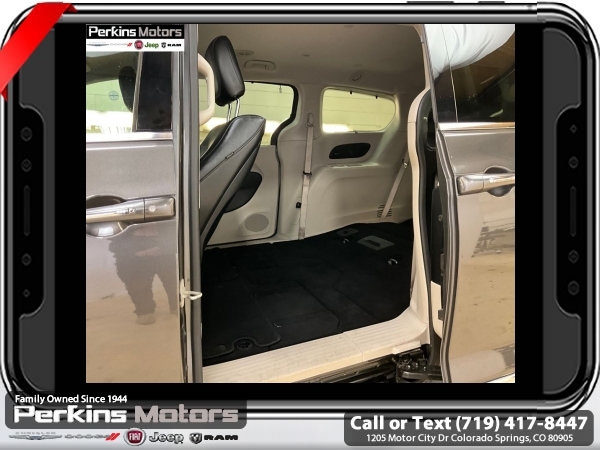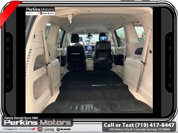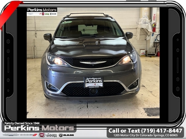 Granite Crystal Metallic Clearcoat FWD 3.6L V6 24V VVT 9-Speed 948TE Automatic<br><br>18 x 7.5 Painted Aluminum Wheels, 360 Surround View Camera System, Adaptive Cruise Control w/Stop & Go, Advanced Brake Assist, Advanced SafetyTec Group, Automatic High Beam Headlamp Control, Blind Spot & Cross Path Detection, Full Speed Forward Collision Warning Plus, Hands Free Power Liftgate, Hands Free Sliding Door & Liftgate Group, Hands Free Sliding Doors, Lane Departure Warning Plus, Michelin Brand Tires, Navigation System, Parallel & Perp Park Assist w/Stop, ParkSense Front/Rear Park Assist w/Stop, Rain Sensitive Windshield Wipers, Tire & Wheel Group.<br><br><br>Clean CARFAX.<br><br>Check us out at www.perkinsmotors.com to see our specials! Since opening our doors in 1944, we’ve been proud to serve Colorado Springs, CO, and the surrounding areas of Pueblo, Castle Rock and Denver, CO. Throughout this time of being family owned for 80 years, we’ve maintained a firm commitment to our customers: to offer a wide selection of New Chrysler, Dodge, Fiat, Jeep, and Ram vehicles and quality pre-owned vehicles, and provide a quick, no-hassle car-buying process that ensures everyone drives off the lot satisfied with their purchase.<br><br><br>Awards:<br> * 2019 KBB.com 12 Best Family Cars<br><br>Advanced SafetyTec Group (360 Surround View Camera System, Adaptive Cruise Control w/Stop & Go, Advanced Brake Assist, Automatic High Beam Headlamp Control, Blind Spot & Cross Path Detection, Full Speed Forward Collision Warning Plus, Lane Departure Warning Plus, Parallel & Perp Park Assist w/Stop, ParkSense Front/Rear Park Assist w/Stop, and Rain Sensitive Windshield Wipers), Hands Free Sliding Door & Liftgate Group (Hands Free Power Liftgate and Hands Free Sliding Doors), Tire & Wheel Group (18 x 7.5 Painted Aluminum Wheels and Michelin Brand Tires), Quick Order Package 27J, Navigation System, 13 Speakers, 17 x 7.0 Polished Aluminum Wheels, 3.25 Axle Ratio, 3rd row seats: split-bench, 4-Wheel Disc Brakes, A/V remote, ABS brakes, Air Conditioning, Alloy wheels, AM/FM radio: SiriusXM, Apple CarPlay/Android Auto, Auto-dimming Rear-View mirror, Automatic temperature control, Black Seats, Bodyside moldings, Brake assist, Bumpers: body-color, CD player, Compass, Cruise Control, Delay-off headlights, Driver door bin, Driver vanity mirror, Driver's Seat Mounted Armrest, Dual front impact airbags, Dual front side impact airbags, DVD-Audio, Electronic Stability Control, Emergency communication system: Uconnect Access, Four wheel independent suspension, Front anti-roll bar, Front Bucket Seats, Front dual zone A/C, Front fog lights, Front reading lights, Fully automatic headlights, Garage door transmitter, Headphones, Heated door mirrors, Heated front seats, Heated rear seats, Heated steering wheel, Illuminated entry, KeySense, Knee airbag, Leather steering wheel, Low tire pressure warning, Manufacturer's Statement of Origin, Occupant sensing airbag, Outside temperature display, Overhead airbag, Overhead console, Panic alarm, ParkView Rear Back-Up Camera, Passenger door bin, Passenger seat mounted armrest, Passenger vanity mirror, Perforated Leather Trim Bucket Seats, Power door mirrors, Power driver seat, Power Liftgate, Power passenger seat, Power steering, Power windows, Radio data system, Radio: Uconnect 4C Nav w/8.4 Display, Rain sensing wipers, Rear air conditioning, Rear reading lights, Rear window defroster, Rear window wiper, Reclining 3rd row seat, Remote keyless entry, Roof rack, Security system, Split folding rear seat, Spoiler, Steering wheel mounted audio controls, Tachometer, Telescoping steering wheel, Tilt steering wheel, Touring Suspension, Traction control, Trip computer, Variably intermittent wipers, and Voltmeter.