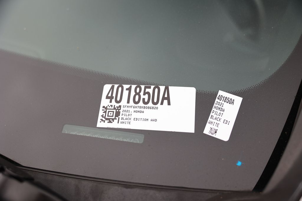 White 2021 Honda Pilot Black Edition AWD 9-Speed Automatic 3.5L V6 24V SOHC i-VTEC AWD, 3rd row seats: split-bench, Apple CarPlay/Android Auto, Blind Spot Information (BSI) System warning, Exterior Parking Camera Rear, Forward collision: Collision Mitigation Braking System (CMBS) + FCW mitigation, Heated & Ventilated Front Bucket Seats, Heated rear seats, Honda Satellite-Linked Navigation System, Lane departure: Lane Keeping Assist System (LKAS) active, Navigation system: Honda Satellite-Linked Navigation System, Power driver seat, Power Liftgate, Wheels: 20" Exclusive Black-Painted Alloy.19/26 City/Highway MPG
