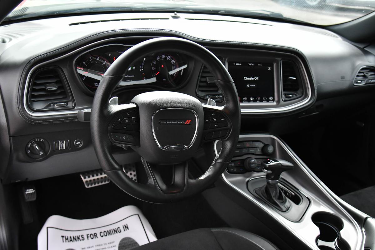 Only 25,847 Miles! Scores 25 Highway MPG and 16 City MPG! This Dodge Challenger boasts a Regular Unleaded V-8 5.7 L/345 engine powering this Automatic transmission. WHEELS: 20 X 8.0 BLACK NOISE PAINTED, TRANSMISSION: 8-SPEED AUTOMATIC (8HP70) -inc: AutoStick Automatic Transmission, Remote Start System, Tip Start, Steering Wheel Mounted Shift Control, Conventional Differential Rear Axle, Auto Leather Wrapped Shift Knob, TIRES: 245/45ZR20 BSW PERFORMANCE -inc: Goodyear Brand Tires.*This Dodge Challenger Features the Following Options *QUICK ORDER PACKAGE 28H -inc: Engine: 5.7L V8 HEMI MDS VVT, Transmission: 8-Speed Automatic (8HP70), PLUS PACKAGE -inc: Dodge Performance Pages, 276 Watt Amplifier, For Details, Visit DriveUconnect.com, Radio: Uconnect 4C w/8.4 Display, Shark Fin Antenna, 4G LTE Wi-Fi Hot Spot, Door Trim Panel w/Ambient Lighting, Wheels: 20 x 8.0 Machined w/Granite Pocket, Heated Steering Wheel, 8.4 Touchscreen Display, Power Tilt/Telescope Steering Column, SiriusXM Satellite Radio, SiriusXM Radio Service, For More Info, Call 800-643-2112, HD Radio, Line Lock, 1-Yr SiriusXM Guardian Trial, Premium-Stitched Dash Panel, 6 Premium Alpine Speakers, Rhombi 2-Pc Wheel Center Cap, BLACKTOP PACKAGE -inc: Black Fuel Filler Door, Gloss Black I/P Cluster Trim Rings, Rear Black Spoiler, HEMI Blacktop Fender Badge, Satin Black Dodge Tail Lamp Badge, Blacktop R/T Badge, Wheels: 20 x 8.0 Black Noise Painted, Black Grille w/Bezel, Challenger Blacktop Grille Badge , SIRIUSXM SATELLITE RADIO -inc: SiriusXM Radio Service, For More Info, Call 800-643-2112, RADIO: UCONNECT 4C NAV W/8.4 DISPLAY -inc: SiriusXM Traffic Plus, 5-Year SiriusXM Travel Link Service, GPS Navigation, 5-Year SiriusXM Traffic Service, SiriusXM Travel Link, All Radio Equipped Vehicles, PITCH BLACK CLEARCOAT, ENGINE: 5.7L V8 HEMI MDS VVT, DRIVER CONVENIENCE GROUP -inc: Locking Lug Nuts, Exterior Mirrors w/Heating Element, Blind Spot & Cross Path Detection, Body Color Exterior Mirrors, Power Multi-Function Foldaway Mirrors, Deluxe Security Alarm, High Intensity Discharge Headlamps, Rhombi Illum Air Catcher Headlamp, COMPACT SPARE TIRE, BLACK, NAPPA/ALCANTARA PERFORMANCE SEATS -inc: Ventilated Front Seats, Heated Front Seats, Radio/Driver Seat/Mirrors Memory.