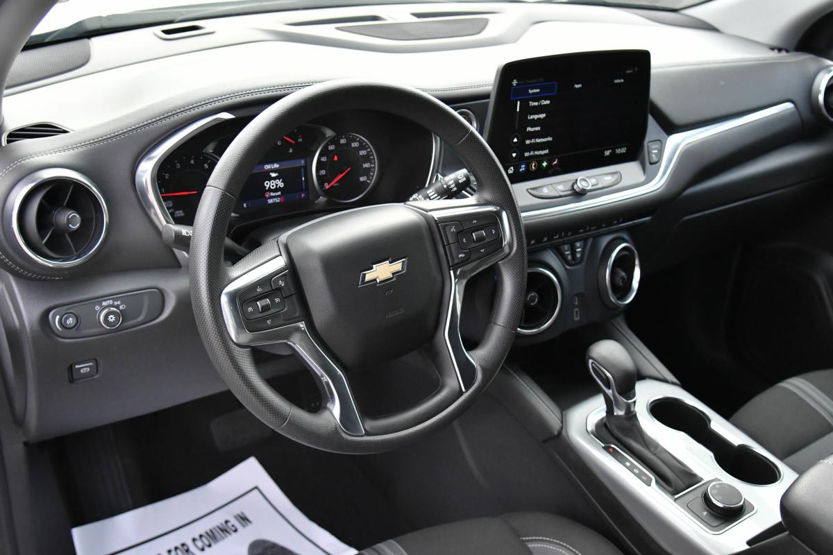 Boasts 27 Highway MPG and 22 City MPG! This Chevrolet Blazer boasts a Turbocharged Gas I4 2.0L/ engine powering this Automatic transmission. WHEELS, 18 (45.7 CM) GRAZEN METALLIC ALUMINUM (STD), TRANSMISSION, 9-SPEED AUTOMATIC, ELECTRONICALLY-CONTROLLED with overdrive, includes Driver Shift Control (STD), TIRES, P235/65R18 ALL-SEASON BLACKWALL (STD).*This Chevrolet Blazer Features the Following Options *SUMMIT WHITE, SEATS, FRONT BUCKET (STD), LT PREFERRED EQUIPMENT GROUP Includes Standard Equipment, JET BLACK, PREMIUM CLOTH SEAT TRIM, ENGINE, 2.0L TURBO, 4-CYLINDER, SIDI DOHC WITH VARIABLE VALVE TIMING (VVT) with Stop/Start (228 hp (170 kW) at 5000 rpm, 258 lb-ft of torque [350 N-m]) @ 1500-4000 rpm) (STD), AXLE, 3.47 FINAL DRIVE RATIO, AUDIO SYSTEM, CHEVROLET INFOTAINMENT 3 PLUS SYSTEM 10.2 diagonal HD color touchscreen, AM/FM stereo, Bluetooth audio streaming for 2 active devices, Apple CarPlay and Android Auto capable, enhanced voice recognition, in-vehicle apps, cloud connected personalization for select infotainment and vehicle settings. Subscription required for enhanced and connected services after trial period. (STD), Wireless Apple CarPlay/Wireless Android Auto, Wipers, front variable-speed, intermittent with washers, Wiper, rear intermittent with washer.