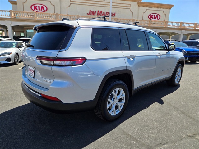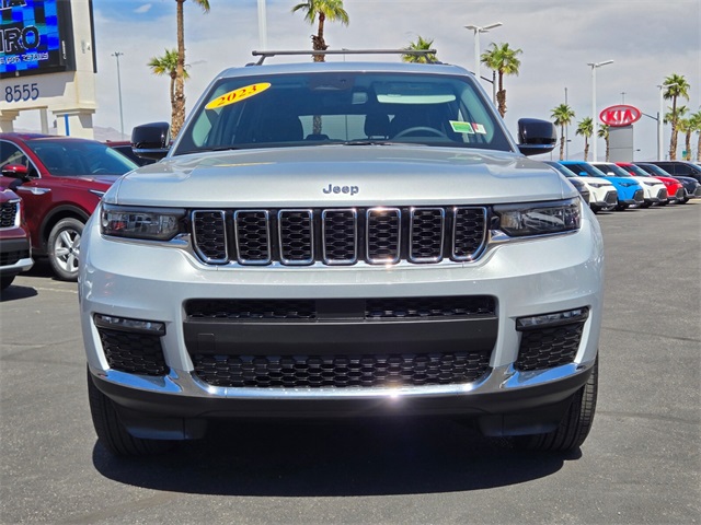 CARFAX One-Owner.Priced below KBB Fair Purchase Price!Odometer is 6353 miles below market average!19/26 City/Highway MPGSilver Zynith 2023 Jeep Grand Cherokee L Limited RWD 8-Speed Automatic 3.6L V6 24V VVTIf you don't drive here, you can't save here!Price may not include recon fee. Quick Order Package 23E, 3.45 Rear Axle Ratio, 3rd row seats: split-bench, 4-Wheel Disc Brakes, 6 Speakers, ABS brakes, Active Noise Control System, Air Conditioning, Alloy wheels, AM/FM radio: SiriusXM with 360L, Anti-whiplash front head restraints, Audio memory, Auto High-beam Headlights, Automatic temperature control, Brake assist, Bumpers: body-color, Capri Leatherette Seats, Compass, Delay-off headlights, Driver door bin, Driver vanity mirror, Dual front impact airbags, Dual front side impact airbags, Electronic Stability Control, Emergency communication system, Four wheel independent suspension, Front anti-roll bar, Front Bucket Seats, Front Center Armrest w/Storage, Front dual zone A/C, Front fog lights, Front License Plate Bracket, Front reading lights, Fully automatic headlights, Garage door transmitter, Heated door mirrors, Heated front seats, Heated rear seats, Heated steering wheel, Illuminated entry, Knee airbag, Low tire pressure warning, Manual Fold Seatbacks, Memory seat, Molded In Color Black/Gloss Black Roof Rails, Navigation System, Normal Duty Suspension, Occupant sensing airbag, Outside temperature display, Overhead airbag, Overhead console, Panic alarm, ParkView Rear Back-Up Camera, Passenger door bin, Passenger vanity mirror, Power door mirrors, Power driver seat, Power Liftgate, Power passenger seat, Power steering, Power windows, Radio data system, Radio: Uconnect 5 Nav w/10.1" Display, Rear air conditioning, Rear anti-roll bar, Rear reading lights, Rear window defroster, Rear window wiper, Reclining 3rd row seat, Remote keyless entry, Security system, Speed control, Speed-Sensitive Wipers, Split folding rear seat, Spoiler, Steering wheel mounted audio controls, Tachometer, Telescoping steering wheel, Tilt steering wheel, Traction control, Trip computer, Turn signal indicator mirrors, Variably intermittent wipers, Voltmeter, and Wheels: 18" x 8.0" Fully Painted Aluminum.