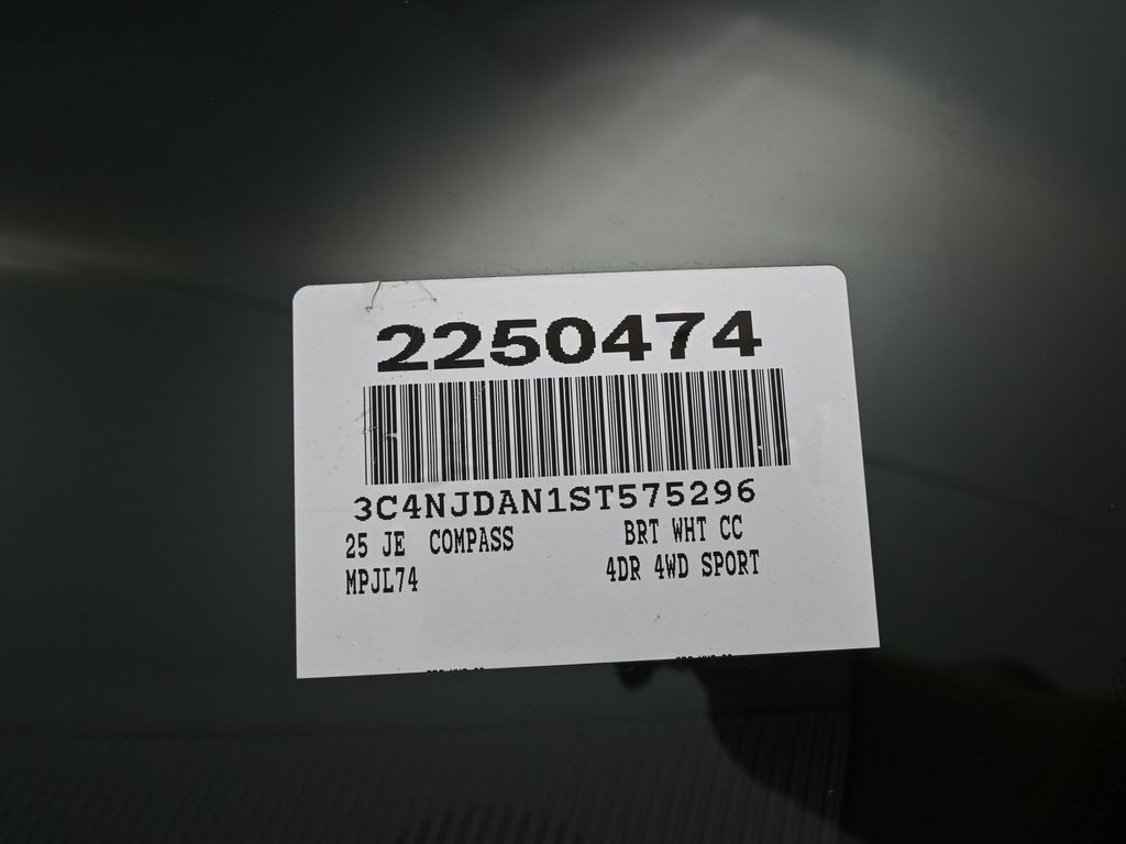 2025 Jeep Compass Sport Bright White ClearcoatFactory MSRP: $28,895 Dealer Discount of $2,750 off MSRPPriced below KBB Fair Purchase Price!MOPAR Carpet Cargo Mat, MOPAR Interior Premium Package, MOPAR Pedal Kit, MOPAR Premium Carpet Floor Mats, Quick Order Package 29A. 24/32 City/Highway MPG 4WD 8-Speed Automatic 2.0L I4 DOHC24/32 City/Highway MPG