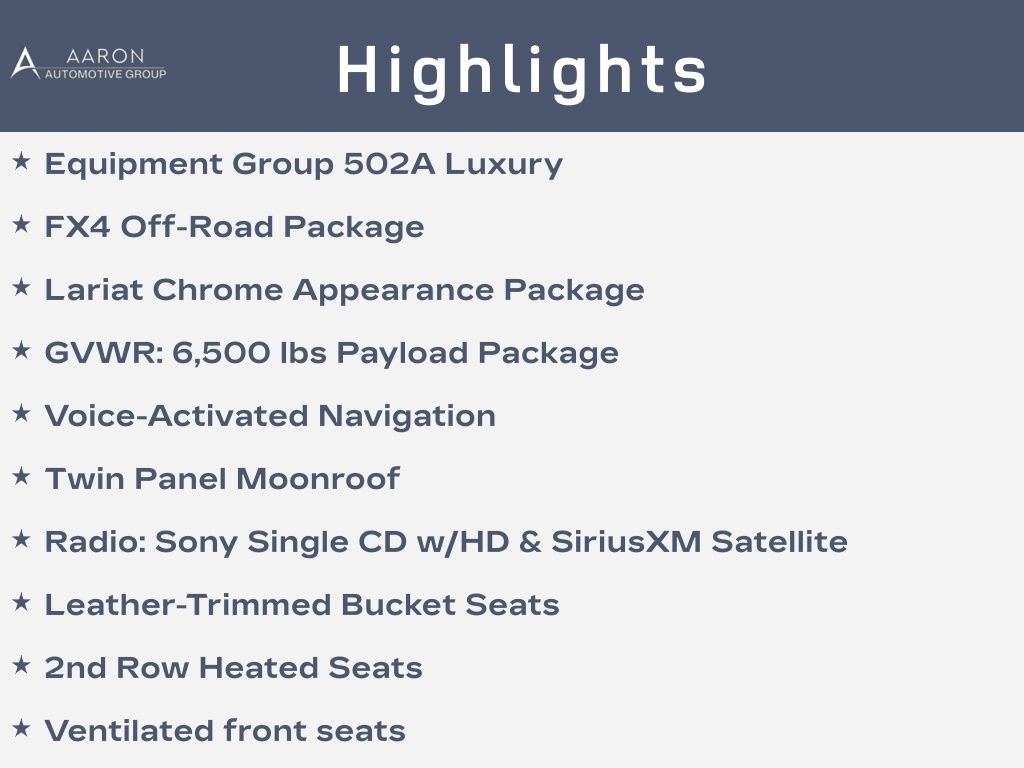 Shadow Black 2016 Ford F-150 Lariat 4WD 6-Speed Automatic Electronic 3.5L V6 4WD, 110V/400W Outlet, 2nd Row Heated Seats, 4x4 FX4 Off-Road Bodyside Decal, Auto High Beam w/Rain-Sensing Windshield Wipers, BLIS Blind Spot Information System, Chrome 3-Bar Style Grille w/Chrome Surround, Chrome Angular Step Bars, Chrome Door & Tailgate Handles w/Body-Color Bezel, Chrome Skull Caps on Exterior Mirrors, Equipment Group 502A Luxury, Exterior Parking Camera Rear, Front & Rear Off-Road Tuned Shock Absorbers, FX4 Off-Road Package, GVWR: 6,500 lbs Payload Package, Heated front seats, Heated Steering Wheel, Hill Descent Control, Lariat Chrome Appearance Package, Leather-Trimmed Bucket Seats, LED Side-Mirror Spotlights, Power Glass Sideview Mirr w/Chrome Skull Caps, Power Tilt/Telescoping Steering Column w/Memory, Quad Beam LED Headlamps & Taillamps, Radio: Sony Single CD w/HD & SiriusXM Satellite, Remote keyless entry, Remote Start System w/Remote Tailgate Release, Reverse Sensing System, Single-Tip Chrome Exhaust, SYNC 3, Twin Panel Moonroof, Universal Garage Door Opener, Ventilated front seats, Voice-Activated Navigation, Wheels: 18" Chrome-Like PVD.Recent Arrival! Odometer is 34327 miles below market average!Awards: * 2016 KBB.com Brand Image Awards