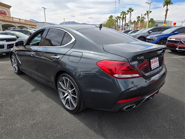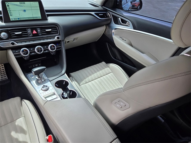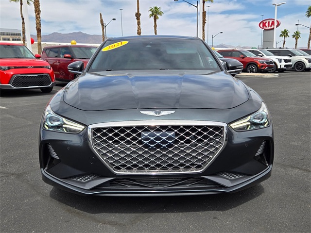 CARFAX One-Owner.Priced below KBB Fair Purchase Price!2021 Genesis G70 3.3T 8-Speed Automatic V6If you don't drive here, you can't save here!Price may not include recon fee. 15 Speakers, 4-Wheel Disc Brakes, ABS brakes, Air Conditioning, Alloy wheels, AM/FM radio: SiriusXM, Android Auto & Apple CarPlay, Anti-whiplash front head restraints, Auto High-beam Headlights, Auto-dimming door mirrors, Auto-dimming Rear-View mirror, Automatic temperature control, Brake assist, Bumpers: body-color, Delay-off headlights, Driver door bin, Driver vanity mirror, Dual front impact airbags, Dual front side impact airbags, Electronic Stability Control, Emergency communication system: Genesis Connected Services, Exterior Parking Camera Rear, Four wheel independent suspension, Front anti-roll bar, Front Bucket Seats, Front Center Armrest, Front dual zone A/C, Front Passenger Seat Walk-In Device, Front reading lights, Fully automatic headlights, Garage door transmitter: HomeLink, Heated & Ventilated Multi-Adj Front Bucket Seats, Heated door mirrors, Heated front seats, Heated steering wheel, Illuminated entry, Integrated Memory System (IMS), Knee airbag, Leather Seating Surfaces, Low tire pressure warning, Memory seat, Navigation System, Occupant sensing airbag, Outside temperature display, Overhead airbag, Overhead console, Panic alarm, Passenger door bin, Passenger vanity mirror, Power door mirrors, Power driver seat, Power moonroof, Power passenger seat, Power steering, Power windows, Radio: AM/FM/SiriusXM/HD Lexicon Audio System, Rain sensing wipers, Rear anti-roll bar, Rear reading lights, Rear seat center armrest, Rear window defroster, Remote keyless entry, Security system, Speed control, Speed-Sensitive Wipers, Split folding rear seat, Steering wheel memory, Steering wheel mounted audio controls, Tachometer, Telescoping steering wheel, Tilt steering wheel, Traction control, Trip computer, Turn signal indicator mirrors, Variably intermittent wipers, Ventilated front seats, and Wheels: 19" x 8.0J Fr & 19" x 8.5J Rr Alloy.