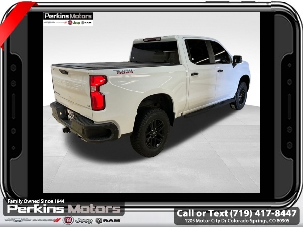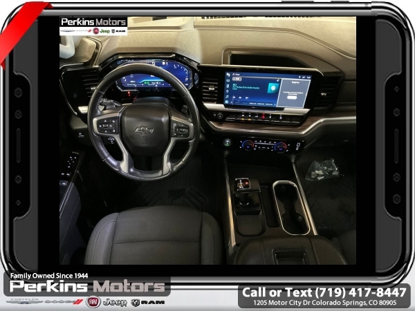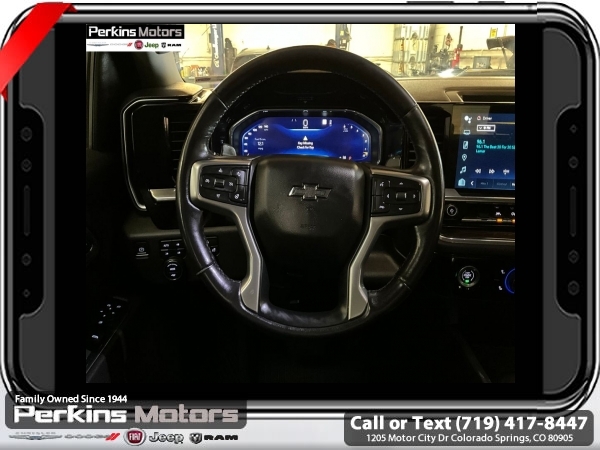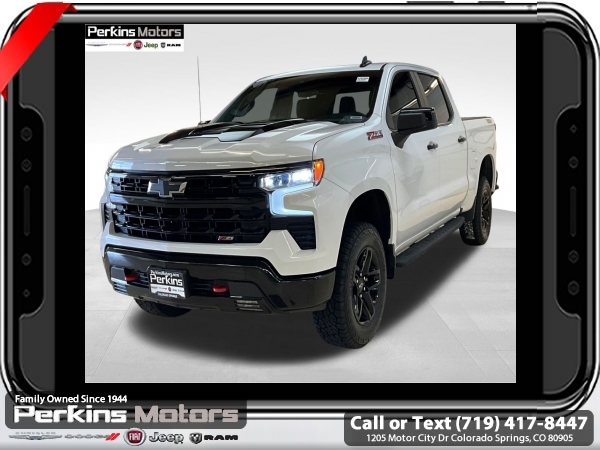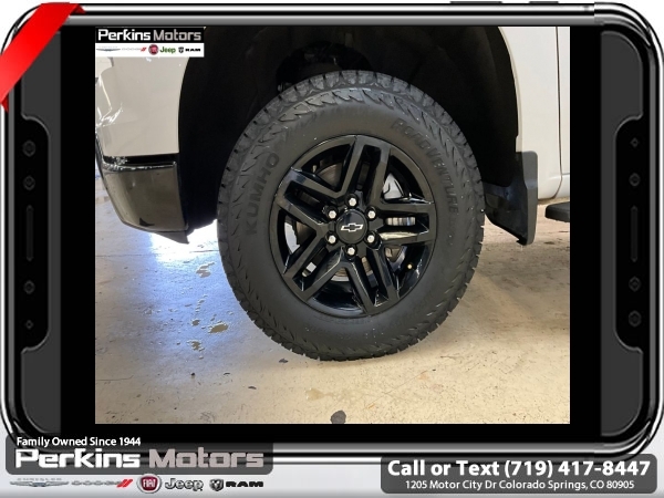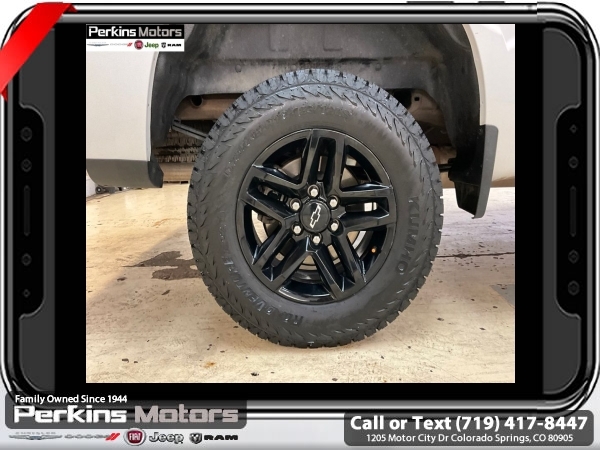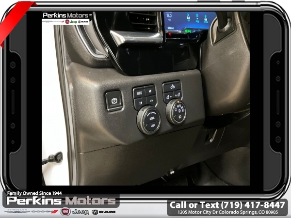 Summit White 4WD EcoTec3 5.3L V8 10-Speed Automatic<br><br>10-Speed Automatic, 4WD, Black Cloth, 10-Way Power Driver Seat w/Lumbar, 12.3 Multicolor Reconfigurable Digital Display, 120-Volt Bed Mounted Power Outlet, 120-Volt Instrument Panel Power Outlet, 6-Speaker Audio System, All-Weather Floor Liner (LPO) (AAK), Auto-Locking Rear Differential, Bluetooth® For Phone, Chevrolet Connected Access Capable, Color-Keyed Carpeting Floor Covering, Compass, Convenience Package, Deep-Tinted Glass, Dual Rear USB Ports (Charge Only), Dual-Zone Automatic Climate Control, Electric Rear-Window Defogger, Electrical Steering Column Lock, Electronic Cruise Control, EZ Lift Power Lock & Release Tailgate, Front LED Fog Lamps, HD Rear Vision Camera, Heated Driver & Front Outboard Passenger Seats, Heated Power-Adjustable Outside Mirrors, Heated Steering Wheel, Heavy-Duty Air Filter, High Gloss Black Mirror Caps, Hill Descent Control, Hitch Guidance, Inside Rear-View Mirror w/Tilt, Keyless Open & Start, Leather Wrapped Steering Wheel, LED Cargo Area Lighting, Manual Tilt/Telescoping Steering Column, OnStar & Chevrolet Connected Services Capable, Performance Red Recovery Hooks, Power Front Windows w/Driver Express Up/Down, Power Front Windows w/Passenger Express Down, Power Rear Windows w/Express Down, Preferred Equipment Group 2LT, Rear 60/40 Folding Bench Seat (Folds Up), Remote Vehicle Starter System, SiriusXM w/360L, Standard Tailgate, Steering Wheel Audio Controls, Suspension Package, Theft Deterrent System (Unauthorized Entry), Trailering Package, Wi-Fi Hot Spot Capable, Wireless Phone Projection.<br><br><br>Clean CARFAX.<br><br>Check us out at www.perkinsmotors.com to see our specials! Since opening our doors in 1944, we’ve been proud to serve Colorado Springs, CO, and the surrounding areas of Pueblo, Castle Rock and Denver, CO. Throughout this time of being family owned for 80 years, we’ve maintained a firm commitment to our customers: to offer a wide selection of New Chrysler, Dodge, Fiat, Jeep, and Ram vehicles and quality pre-owned vehicles, and provide a quick, no-hassle car-buying process that ensures everyone drives off the lot satisfied with their purchase.<br><br><br>Convenience Package (10-Way Power Driver Seat w/Lumbar, 120-Volt Bed Mounted Power Outlet, 120-Volt Instrument Panel Power Outlet, Dual Rear USB Ports (Charge Only), Dual-Zone Automatic Climate Control, Electric Rear-Window Defogger, Heated Driver & Front Outboard Passenger Seats, Heated Steering Wheel, Keyless Open & Start, Leather Wrapped Steering Wheel, Manual Tilt/Telescoping Steering Column, Remote Vehicle Starter System, and Theft Deterrent System (Unauthorized Entry)), Preferred Equipment Group 2LT (12.3 Multicolor Reconfigurable Digital Display, 6-Speaker Audio System, All-Weather Floor Liner (LPO) (AAK), Auto-Locking Rear Differential, Bluetooth® For Phone, Chevrolet Connected Access Capable, Color-Keyed Carpeting Floor Covering, Compass, Deep-Tinted Glass, Electrical Steering Column Lock, Electronic Cruise Control, EZ Lift Power Lock & Release Tailgate, Front LED Fog Lamps, HD Rear Vision Camera, Heated Power-Adjustable Outside Mirrors, High Gloss Black Mirror Caps, Inside Rear-View Mirror w/Tilt, LED Cargo Area Lighting, OnStar & Chevrolet Connected Services Capable, Performance Red Recovery Hooks, Power Front Windows w/Driver Express Up/Down, Power Front Windows w/Passenger Express Down, Power Rear Windows w/Express Down, Rear 60/40 Folding Bench Seat (Folds Up), SiriusXM w/360L, Standard Tailgate, Steering Wheel Audio Controls, Wi-Fi Hot Spot Capable, and Wireless Phone Projection), Suspension Package (Heavy-Duty Air Filter and Hill Descent Control), Trailering Package (Hitch Guidance), 10-Speed Automatic, 4WD, Black Cloth, 170 Amp Alternator, 2 USB Data Ports, 220 Amp Alternator, 3.23 Rear Axle Ratio, 3.42 Rear Axle Ratio, 4-Wheel Disc Brakes, 40/20/40 Front Split-Bench Seat, 6 Speakers, ABS brakes, Air Conditioning, Alloy wheels, AM/FM radio: Sirius