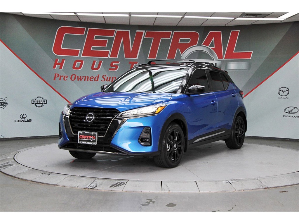 Central Houston Nissan is proud to present you with another True Market Priced Pre-Owned Vehicle. This 2023 Nissan Kicks SR Nissan Certified is loaded with the following Factory Options: Nissan Certified Certified SR Premium Package (Bose Personal Plus Audio System, Heated Front Seats, Heated Steering Wheel, Prima-Tex Appointed Seat Trim, Security System, and Tonneau Cover), Technology Package (NissanConnect Services), Nissan Certified Certified, 17" Alloy Wheels, 3.93 Axle Ratio, 4-Wheel Disc Brakes, 6 Speakers, ABS brakes, Air Conditioning, Alloy wheels, AM/FM radio: SiriusXM, Apple CarPlay/Android Auto, Auto High-beam Headlights, Automatic temperature control, Blind Spot Warning, Brake assist, Bumpers: body-color, Carpeted Floor Mats w/Cargo Mat, Cloth Seat Trim, Delay-off headlights, Driver door bin, Driver vanity mirror, Dual front impact airbags, Dual front side impact airbags, Electronic Stability Control, Exterior Parking Camera Rear, Front anti-roll bar, Front Bucket Seats, Front Center Armrest, Front fog lights, Front reading lights, Front wheel independent suspension, Fully automatic headlights, Heated door mirrors, Illuminated entry, Knee airbag, Low tire pressure warning, Occupant sensing airbag, Outside temperature display, Overhead airbag, Panic alarm, Passenger door bin, Passenger vanity mirror, Power door mirrors, Power steering, Power windows, Radio data system, Radio: AM/FM Audio System, Rear Parking Sensors, Rear reading lights, Rear side impact airbag, Rear window defroster, Rear window wiper, Remote keyless entry, Roof rack: rails only, Special Paint - Electric Blue/Super Black, Speed control, Splash Guards Grain (4 Piece), Split folding rear seat, Sport steering wheel, Steering wheel mounted audio controls, Tachometer, Telescoping steering wheel, Tilt steering wheel, Traction control, Trip computer, Turn signal indicator mirrors, Variably intermittent wipers, and Wheels: 17" Black Alloy!!Central Houston Nissan is more than just your typical car dealership. When our customers visit us, our goal is to provide quality vehicles, exceptional service and a friendly atmosphere. Our staff has been trained to create ease during your purchase or service experience and we are always making sure you get everything you want and deserve out of your visit. Our vision and mission is an employee-centered and customer-focused environment. Vehicles may be subject to prep package and market adjustment. When you buy from Central Houston Nissan, we'll make it the best car buying experience you've ever had. When you purchase a New Nissan or a qualifying Pre-Owned vehicle from Central Houston Nissan, you are automatically enrolled into our Central Houston Nissan Central Care Program at no cost to you. You can’t beat that! Vehicles may be subject to prep package and market adjustment. Stop by 2901 S Loop W, Houston, Texas 77054 today!!!