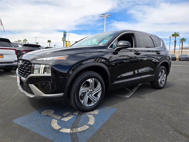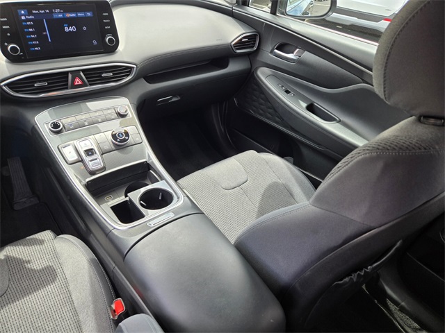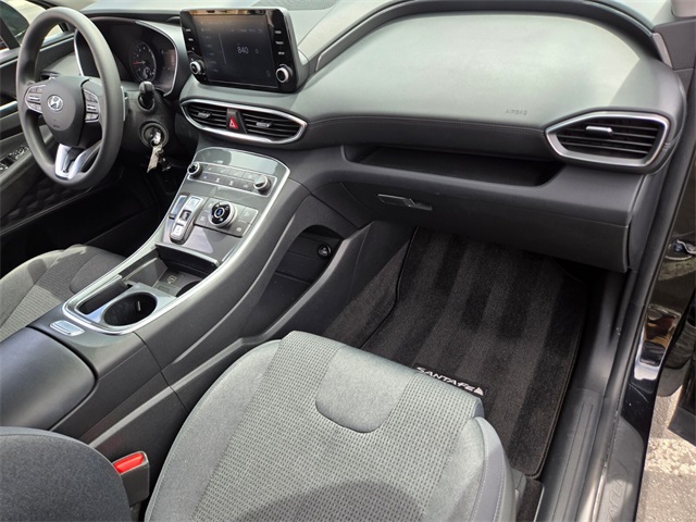 CARFAX One-Owner.Priced below KBB Fair Purchase Price!Twilight Black 2022 Hyundai Santa Fe SE AWD 8-Speed Automatic with SHIFTRONIC 2.5L I4 AWD, Black Cloth.If you don't drive here, you can't save here!Price may not include recon fee. Option Group 01, AWD, Black Cloth, 18" x 7.5J Alloy Wheels, 4-Wheel Disc Brakes, 6 Speakers, ABS brakes, Air Conditioning, Alloy wheels, AM/FM radio, Apple CarPlay & Android Auto, Auto High-beam Headlights, Axle Ratio: 4.081, Brake assist, Bumpers: body-color, Carpeted Floor Mats, Delay-off headlights, Driver door bin, Driver vanity mirror, Dual front impact airbags, Dual front side impact airbags, Electronic Stability Control, Exterior Parking Camera Rear, Four wheel independent suspension, Front anti-roll bar, Front Bucket Seats, Front Center Armrest, Front reading lights, Fully automatic headlights, Illuminated entry, Low tire pressure warning, Occupant sensing airbag, Outside temperature display, Overhead airbag, Overhead console, Panic alarm, Passenger door bin, Passenger vanity mirror, Power door mirrors, Power steering, Power windows, Radio: AM/FM Display Audio, Rear anti-roll bar, Rear seat center armrest, Rear window defroster, Rear window wiper, Remote keyless entry, Security system, Speed control, Speed-sensing steering, Split folding rear seat, Spoiler, Steering wheel mounted audio controls, Tachometer, Telescoping steering wheel, Tilt steering wheel, Traction control, Trip computer, Variably intermittent wipers, and YES Essentials Stain-Resistant Cloth Seat Trim.