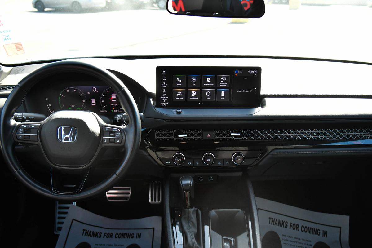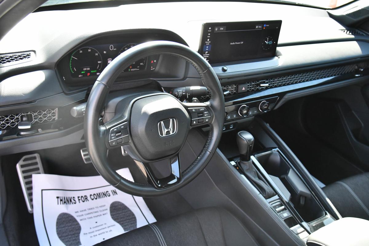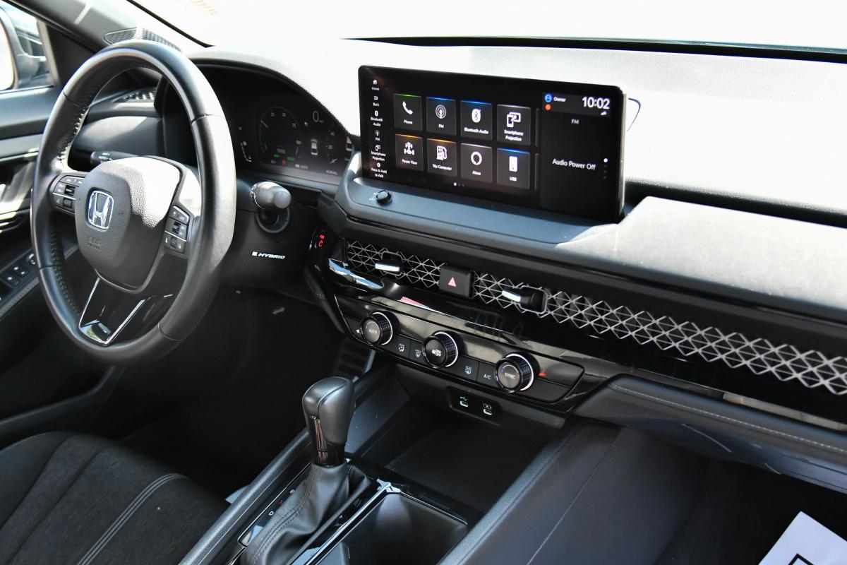 Scores 41 Highway MPG and 46 City MPG! This Honda Accord Hybrid boasts a Gas/Electric I-4 2.0 L/122 engine powering this Variable transmission. Wheels: 19 x 8.5J Berlina Black -inc: machined face, Vehicle Stability Assist (VSA) Electronic Stability Control (ESC), Valet Function.*This Honda Accord Hybrid Comes Equipped with These Options *Trunk Rear Cargo Access, Trip Computer, Transmission: Electronic Continuously Variable -inc: econ, normal, sport and individual modes, Traffic Jam Assist, Tires: 235/40R19 96V AS, Tire Specific Low Tire Pressure Warning, Tire mobility kit, Strut Front Suspension w/Coil Springs, Speed Sensitive Variable Intermittent Wipers, Smart Device Remote Engine Start.