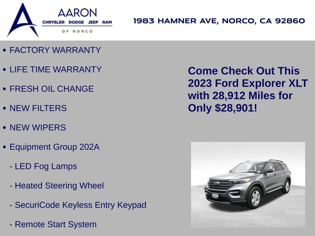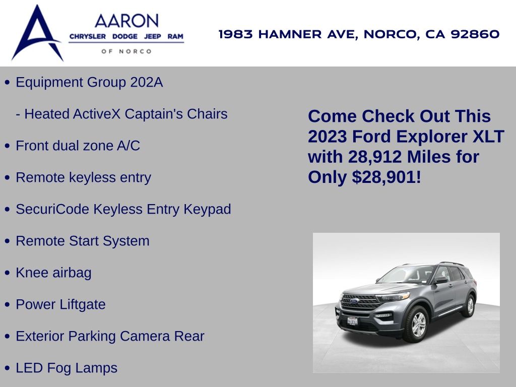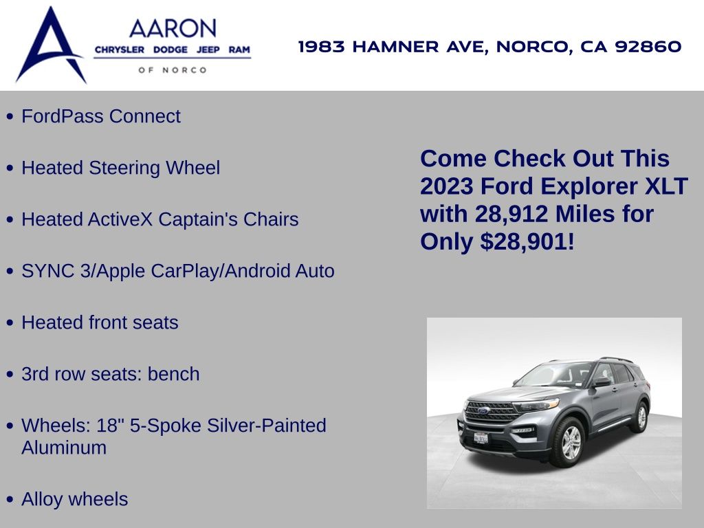 Priced below KBB Fair Purchase Price!FACTORY WARRANTY, LIFE TIME WARRANTY, FRESH OIL CHANGE, NEW FILTERS, NEW WIPERS, Explorer XLT, 4D Sport Utility, 2.3L EcoBoost I-4, 10-Speed Automatic, RWD, 3rd row seats: bench, 4G LTE Wi-Fi Hotspot Credit, Alloy wheels, Equipment Group 202A, Exterior Parking Camera Rear, FordPass Connect, Front dual zone A/C, Heated ActiveX Captain's Chairs, Heated front seats, Heated Steering Wheel, Knee airbag, LED Fog Lamps, Power Liftgate, Remote keyless entry, Remote Start System, SecuriCode Keyless Entry Keypad, SYNC 3/Apple CarPlay/Android Auto, Wheels: 18" 5-Spoke Silver-Painted Aluminum.Clean CARFAX.CARFAX One-Owner.