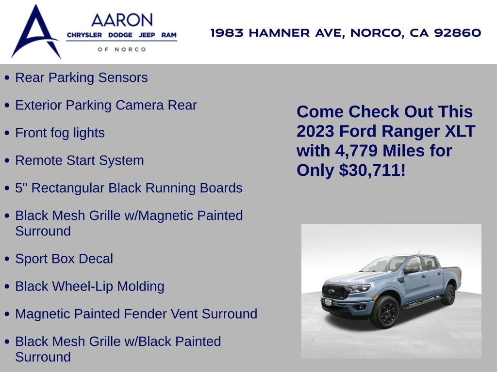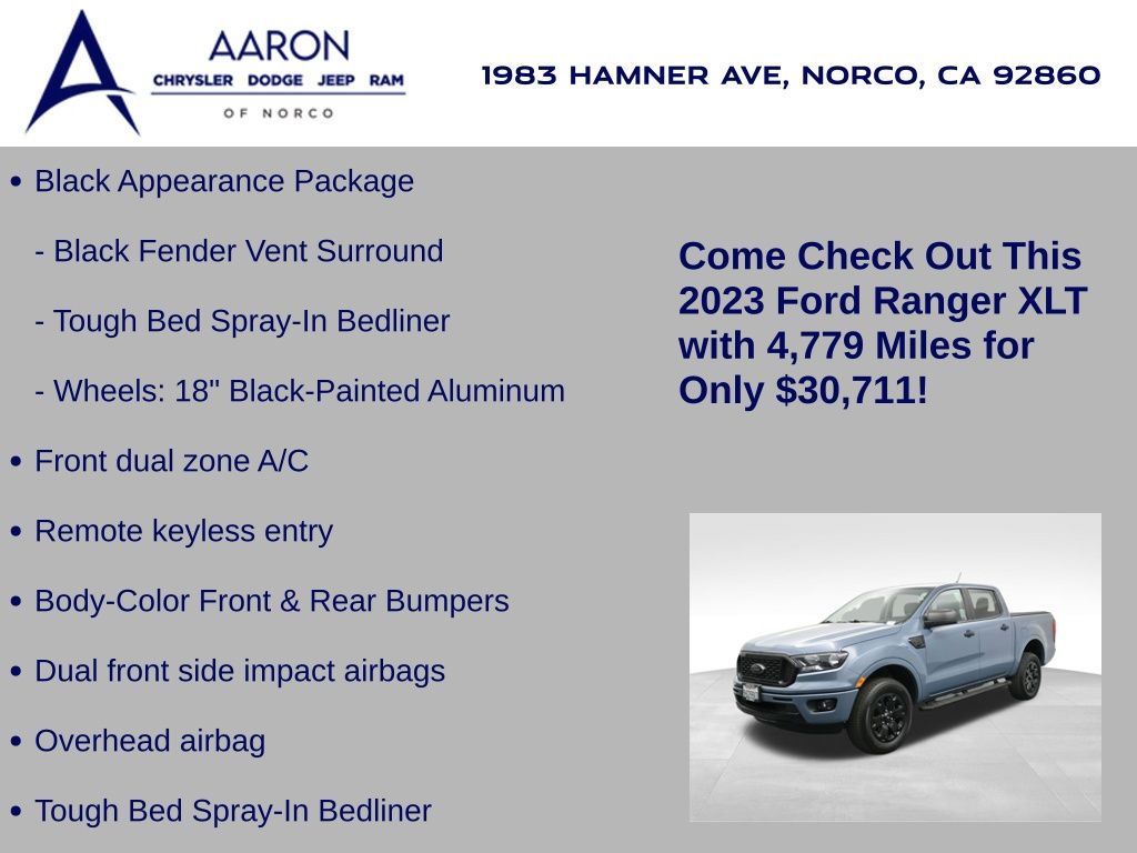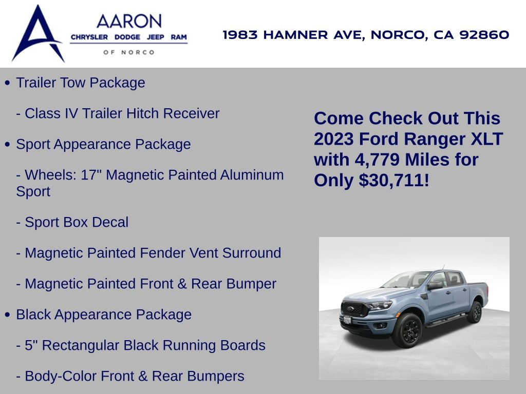 Priced below KBB Fair Purchase Price!NEW FILTERS, NEW WIPERS, Ranger XLT, 4D Crew Cab, 10-Speed Automatic, RWD, 110V AC Power Outlet, 5" Rectangular Black Running Boards, Alloy wheels, Auto-Dimming Rear-View Mirror, Black Appearance Package, Black Fender Vent Surround, Black Mesh Grille w/Black Painted Surround, Black Mesh Grille w/Magnetic Painted Surround, Black Wheel-Lip Molding, Body-Color Front & Rear Bumpers, Class IV Trailer Hitch Receiver, Compass, Dual front side impact airbags, Equipment Group 301A Mid, Exterior Parking Camera Rear, Front dual zone A/C, Front fog lights, Leather-Wrapped Shifter, Leather-Wrapped Steering Wheel, Magnetic Painted Fender Vent Surround, Magnetic Painted Front & Rear Bumper, Overhead airbag, Rear Parking Sensors, Remote keyless entry, Remote Start System, Sport Appearance Package, Sport Box Decal, SYNC 3/Apple CarPlay/Android Auto, Tough Bed Spray-In Bedliner, Trailer Tow Package, Wheels: 18" Black-Painted Aluminum.Clean CARFAX.CARFAX One-Owner.