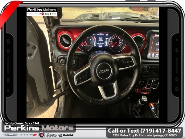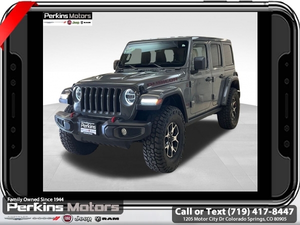 Sting-Gray Clearcoat 4WD 2.0L I4 DOHC 8-Speed Automatic<br><br>1-Year SiriusXM Guardian Trial, 4G LTE Wi-Fi Hot Spot, 5-Year SiriusXM Traffic Service, 5-Year SiriusXM Travel Link Service, 8.4 Radio & Premium Audio Group, 8.4 Touchscreen Display, Alpine Premium Audio System, Auto-Dimming Rear-View Mirror, Cold Weather Group, Daytime Running Lamps LED Accents, Emergency/Assistance Call, For Details, Visit DriveUconnect.com, Front LED Fog Lamps, GPS Navigation, HD Radio, Heated Front Seats, Heated Steering Wheel, LED Lighting Group, LED Premium Reflector Headlamps, LED Taillamps, Off-Road Info Pages, Radio: Uconnect 4C Nav w/8.4 Display, SiriusXM Traffic Plus, SiriusXM Travel Link.<br><br>Certified. FCA US LLC Certified Pre-Owned Details:<br><br> * Warranty Deductible: $100<br> * Includes First Day Rental, Car Rental Allowance, and Trip Interruption Benefits. SiriusXM 3 month trial subscription<br> * Vehicle History<br> * Roadside Assistance<br> * 125 Point Inspection<br> * Transferable Warranty<br> * Powertrain Limited Warranty: 84 Month/100,000 Mile (whichever comes first) from original in-service date<br> * Limited Warranty: 3 Month/3,000 Mile (whichever comes first) after new car warranty expires or from certified purchase date<br><br><br>CARFAX One-Owner. Clean CARFAX.<br><br>Check us out at www.perkinsmotors.com to see our specials! Since opening our doors in 1944, we’ve been proud to serve Colorado Springs, CO, and the surrounding areas of Pueblo, Castle Rock and Denver, CO. Throughout this time of being family owned for 80 years, we’ve maintained a firm commitment to our customers: to offer a wide selection of New Chrysler, Dodge, Fiat, Jeep, and Ram vehicles and quality pre-owned vehicles, and provide a quick, no-hassle car-buying process that ensures everyone drives off the lot satisfied with their purchase.<br><br><br>8.4 Radio & Premium Audio Group (1-Year SiriusXM Guardian Trial, 4G LTE Wi-Fi Hot Spot, 5-Year SiriusXM Traffic Service, 5-Year SiriusXM Travel Link Service, 8.4 Touchscreen Display, Alpine Premium Audio System, Auto-Dimming Rear-View Mirror, Emergency/Assistance Call, For Details, Visit DriveUconnect.com, GPS Navigation, HD Radio, Off-Road Info Pages, Radio: Uconnect 4C Nav w/8.4 Display, SiriusXM Traffic Plus, and SiriusXM Travel Link), Cold Weather Group (Heated Front Seats and Heated Steering Wheel), LED Lighting Group (Daytime Running Lamps LED Accents, Front LED Fog Lamps, LED Premium Reflector Headlamps, and LED Taillamps), Quick Order Package 22R, FCA US LLC Certified Pre-Owned Certified, 4-Wheel Disc Brakes, 4.10 Rear Axle Ratio, 8 Speakers, ABS brakes, Air Conditioning, Alloy wheels, AM/FM radio: SiriusXM, Apple CarPlay/Android Auto, Automatic temperature control, Aux Battery, Body Color 3-Piece Hard Top, Body Color Fender Flares, Brake assist, Compass, Cruise Control, Delay-off headlights, Driver door bin, Driver vanity mirror, Dual front impact airbags, Dual front side impact airbags, Electronic Stability Control, Front anti-roll bar, Front Bucket Seats, Front Center Armrest w/Storage, Front dual zone A/C, Front fog lights, Front License Plate Bracket, Front reading lights, Fully automatic headlights, Garage door transmitter, Heated door mirrors, Illuminated entry, Integrated roll-over protection, Leather steering wheel, Low tire pressure warning, Manufacturer's Statement of Origin, MOPAR All-Weather Floor Mats (DISC), Non-Lock Fuel Cap w/o Discriminator, Occupant sensing airbag, Outside temperature display, Panic alarm, ParkView Rear Back-Up Camera, Passenger door bin, Passenger vanity mirror, Performance Suspension, Power door mirrors, Power steering, Power windows, Premium Cloth Low-Back Bucket Seats, Radio data system, Radio: Uconnect 4 w/7 Display, Rear anti-roll bar, Rear reading lights, Remote keyless entry, Remote Proximity Keyless Entry, Remote Start System, Security system, Split folding rear seat, Steering wheel mounted audio controls, Stop-Start Dual Battery Syst