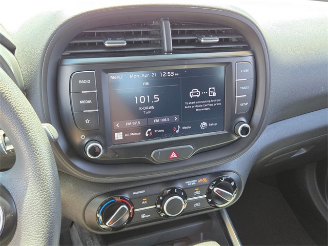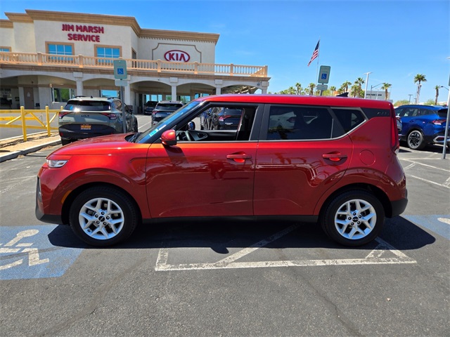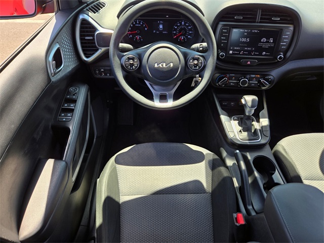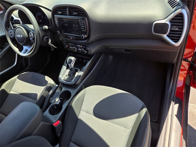 CARFAX One-Owner.29/35 City/Highway MPGMars Orange 2022 Kia Soul LX FWD CVT 2.0L I4 DOHCIf you don't drive here, you can't save here!Price may not include recon fee. Technology Package (16" x 6.5" Alloy Wheels, Blind Spot Collision Warning, Driver Attention Warning, Forward Collision Avoidance Assist, Lane Change Assist, Lane Keeping Assist, and Rear Cross-Traffic Collision Avoidance Assist), 16" x 6.5" Steel Wheels, 4-Wheel Disc Brakes, 6 Speakers, ABS brakes, Air Conditioning, AM/FM radio, Apple CarPlay & Android Auto, Brake assist, Bumpers: body-color, Cargo Net, Carpeted Floor Mats, Delay-off headlights, Driver door bin, Driver vanity mirror, Dual front impact airbags, Dual front side impact airbags, Electronic Stability Control, Exterior Parking Camera Rear, Front anti-roll bar, Front Bucket Seats, Front Center Armrest, Front reading lights, Front wheel independent suspension, Fully automatic headlights, Illuminated entry, Low tire pressure warning, Occupant sensing airbag, Outside temperature display, Overhead airbag, Overhead console, Panic alarm, Passenger door bin, Passenger vanity mirror, Power door mirrors, Power steering, Power windows, Radio: AM/FM/MP3 Audio System, Rear window defroster, Rear window wiper, Remote keyless entry, Speed control, Speed-sensing steering, Split folding rear seat, Steering wheel mounted audio controls, Tachometer, Telescoping steering wheel, Tilt steering wheel, Traction control, Trip computer, Variably intermittent wipers, and Woven & Tricot Cloth Seat Trim.