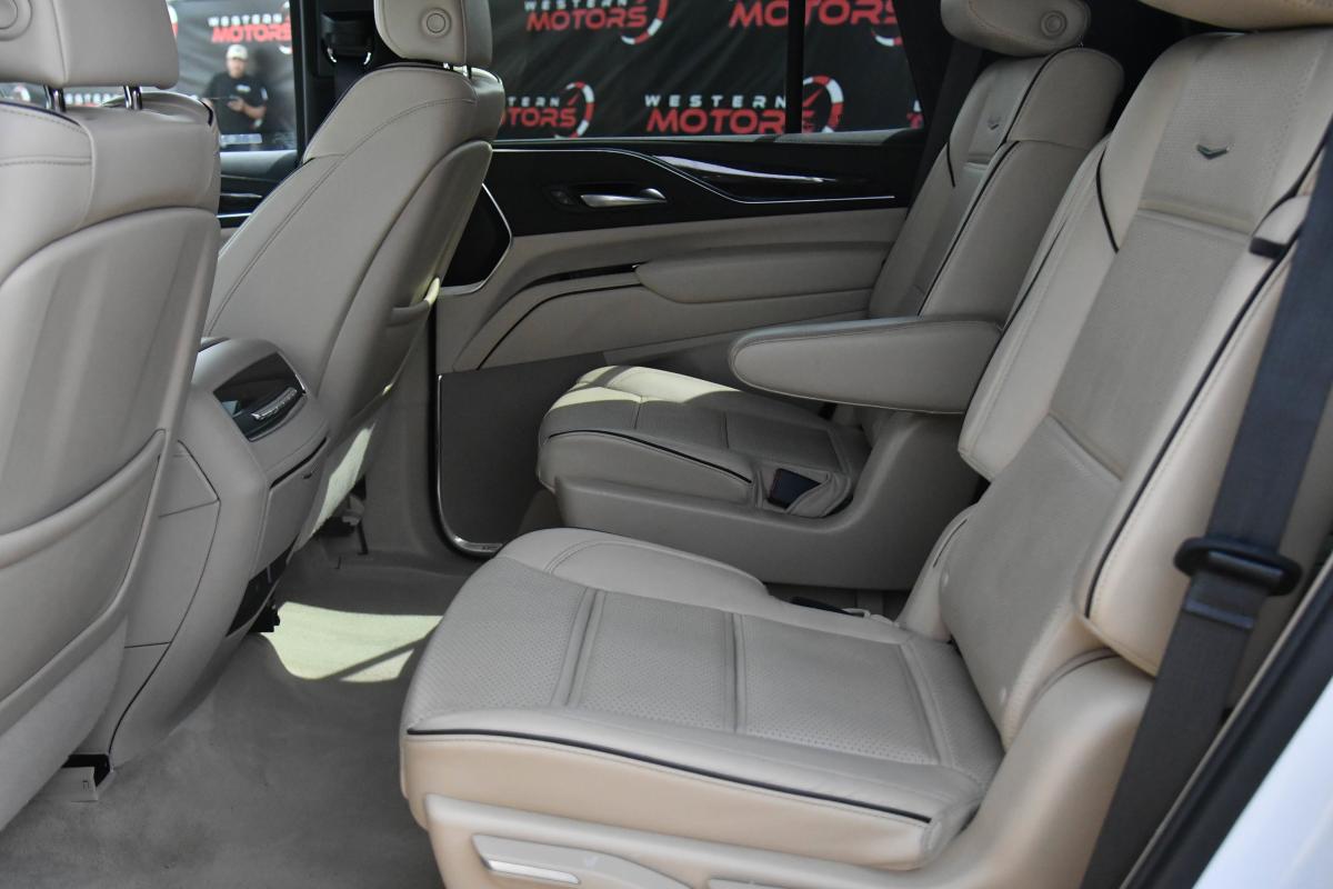 Boasts 18 Highway MPG and 14 City MPG! This Cadillac Escalade boasts a Gas V8 6.2L/375 engine powering this Automatic transmission. WINDOW CONTROL, ALL WINDOWS, EXPRESS-UP/DOWN (auto Express-Up/Down via key fob) (Beginning with start of production, vehicles will be forced to include (00N) Not Equipped with 2nd Row Express-Up Window Control, which removes only 2nd Row Express-Up Window Control functionality. See dealer for details or the window label for the features on a specific vehicle.), WHEELS, 22 (55.9 CM) 14-SPOKE ALLOY WITH POLISHED FINISH (STD), TRANSMISSION, 10-SPEED AUTOMATIC electronically controlled with overdrive, tow/haul mode and tap up/tap down shifting (STD).*This Cadillac Escalade Comes Equipped with These Options *PERFORMANCE PACKAGE includes (UKV) Trailer Side Blind Zone Alert, (G96) electronic limited-slip differential, (JL1) integrated trailer brake controller, (Z95) Magnetic Ride Control, (PZ8) Hitch Guidance with Hitch View and (UET) Smart Trailer Integration Indicator , TRAILER SIDE BLIND ZONE ALERT, TRAILER BRAKE CONTROLLER, INTEGRATED, SUSPENSION, MAGNETIC RIDE CONTROL, SUPER CRUISE a hands-free driver assistance system for use on compatible roads (Beginning with start of production through October 2, 2022, vehicles will be forced to include either (00U) Not Equipped with Super Cruise and/or (02O) Not Equipped with Super Cruise, which will remove Super Cruise and its content. See dealer for details or the window label for the features on a specific vehicle. Always pay attention while driving and when using Super Cruise. Do not use a hand-held device. Visit cadillac.com/supercruise for compatible roads and full details.), SMART TRAILER INTEGRATION INDICATOR, SEATS, SECOND ROW BUCKET, POWER RELEASE (STD), SEATS, FRONT BUCKET (Includes 12-way driver and front passenger adjustments. Beginning with start of production, vehicles will be forced to include (R6S) Not Equipped with 4-Way Driver and Front Passenger Power Lumbar, which removes 4-way driver and front passenger power lumbar. Vehicles will be equipped with 2-way driver and front passenger power lumbar. See dealer for details.) (STD), SEAT ADJUSTER, FRONT PASSENGER 2-WAY POWER LUMBAR (Beginning with start of production through December 31, 2022, vehicles will be forced to include (R6S) Not Equipped with 4-Way Driver and Front Passenger Power Lumbar, which removes 4-way driver and front passenger power lumbar. Vehicles will be equipped with 2-way driver and front passenger power lumbar. See dealer for details or the window label for the features on a specific vehicle.), SEAT ADJUSTER, DRIVER 2-WAY POWER LUMBAR (Beginning with start of production through December 31, 2022, vehicles will be forced to include (R6S) Not Equipped with 4-Way Driver and Front Passenger Power Lumbar, which removes 4-way driver and front passenger power lumbar. Vehicles will be equipped with 2-way driver and front passenger power lumbar. See dealer for details or the window label for the features on a specific vehicle.).