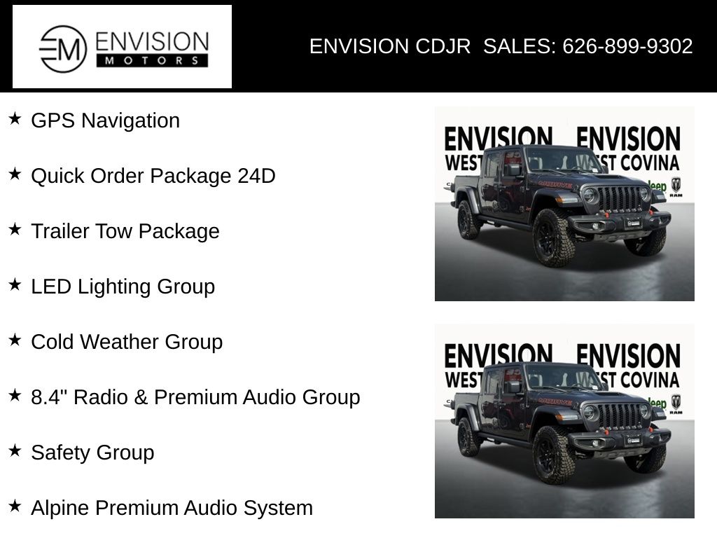 WE SPECIALIZE IN ALL CREDIT PROFILES! See what we can do for you! Call to find out (626) 899-9302.Certified. CARFAX One-Owner.Odometer is 4107 miles below market average! 1-Year SiriusXM Guardian Trial, 240 Amp Alternator, 5-Year SiriusXM Traffic Service, 5-Year SiriusXM Travel Link Service, 8.4" Radio & Premium Audio Group, 8.4" Touchscreen Display, Alpine Premium Audio System, Auto-Dimming Rear-View Mirror, Black 3-Piece Hard Top, Blind Spot & Cross Path Detection, Class IV Hitch Receiver, Cold Weather Group, Daytime Running Lamps LED Accents, Emergency/Assistance Call, For Details, Visit DriveUconnect.com, Freedom Panel Storage Bag, Front LED Fog Lamps, GPS Navigation, HD Radio, Heated Front Seats, Heated Steering Wheel, Heavy-Duty Engine Cooling, LED Lighting Group, LED Park Turn Lamps, LED Premium Reflector Headlamps, LED Taillamps, ParkSense Rear Park Assist System, Quick Order Package 24D, Radio: Uconnect 4C Nav w/8.4" Display, Rear Sliding Window, Rear Window Defroster, Safety Group, SiriusXM Traffic Plus, SiriusXM Travel Link, Trailer Hitch Zoom, Trailer Tow Package.Granite Crystal Metallic Clearcoat2021 Jeep Gladiator Mojave 4WD 8-Speed Automatic 3.6L V6 24V VVTFCA US LLC Certified Pre-Owned Details: * Warranty Deductible: $100 * Vehicles Up to 75,000 Miles and/or 5 Model Years. 24-Hour Towing & Roadside Assistance, Car Rental Allowance, CARFAX® Vehicle History ReportTM and an Introductory 3-month Subscription to SiriusXM® Satellite Radio & Certified Warranty Upgrades * Powertrain Limited Warranty: 84 Month/100,000 Mile (whichever comes first) from original in-service date * Transferable Warranty * Limited Warranty: 3 Month/3,000 Mile (whichever comes first) after new car warranty expires or from certified purchase date * Roadside Assistance * Vehicle History * 125 Point Inspection**********All Pricing and Advertised Prices for any/all vehicles offered for sale does not include dealer installed accessories which can be purchased for an additional cost.********** The Factory Rebates may not be available on this vehicle if you elect to take advantage of a Special Alternative APR or Special Lease program. Some Factory Rebates are California Resident specific and may vary for residents of other states. NO sales to Dealers, Brokers or Exporters. For out of state purchase, customers must be present to purchase. If shipping is required, dealership must facilitate; no exceptions. Please contact us for special Multi-Vehicle or Fleet pricing. Prices are plus government fees and taxes, any finance charges, $85 documentary fee, $29 electronic registration fee, any emission testing charge and $1.75 per new tire state tire fee. *** We make every effort to provide accurate information, but please verify before purchasing. Leasing & financing available on approved credit. Trade-ins accepted. Subject to prior sale.Awards: * JD Power Initial Quality Study (IQS)