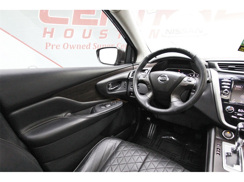 Central Houston Nissan is proud to present you with another True Market Priced Pre-Owned Vehicle. This 2019 Nissan Murano Platinum Nissan Certified is loaded with the following Factory Options: Nissan Certified Certified and CVT with Xtronic Nissan Certified Certified, CVT with Xtronic, 11 Speakers, 4-Wheel Disc Brakes, 4.667 Axle Ratio, ABS brakes, Accessory Illuminated Kick Plates, Air Conditioning, Alloy wheels, AM/FM radio: SiriusXM, AM/FM/CD/MP3/WMA Audio System, Auto High-beam Headlights, Auto tilt-away steering wheel, Auto-dimming Rear-View mirror, Automatic temperature control, Blind Spot Warning, Brake assist, Bumpers: body-color, Carpeted Floor Mats & Carpeted Cargo Mat, CD player, Child-Seat-Sensing Airbag, Climate-Controlled Front Bucket Seats, Compass, Delay-off headlights, Driver door bin, Driver vanity mirror, Dual front impact airbags, Dual front side impact airbags, Electronic Stability Control, Emergency communication system: NissanConnect Services, Four wheel independent suspension, Front anti-roll bar, Front Bucket Seats, Front Center Armrest, Front dual zone A/C, Front fog lights, Front reading lights, Fully automatic headlights, Garage door transmitter: HomeLink, Heated door mirrors, Heated front seats, Heated rear seats, Heated steering wheel, Illuminated entry, Illuminated Kick Plate, Knee airbag, Low tire pressure warning, Memory seat, Navigation System, NissanConnect featuring Apple CarPlay and Android Auto, NissanConnect Services Powered By SiriusXM, Occupant sensing airbag, Outside temperature display, Overhead airbag, Overhead console, Panic alarm, Passenger door bin, Passenger vanity mirror, Power door mirrors, Power driver seat, Power Liftgate, Power moonroof, Power passenger seat, Power steering, Power windows, Radio data system, Rear anti-roll bar, Rear Bumper Protector, Rear reading lights, Rear seat center armrest, Rear side impact airbag, Rear window defroster, Rear window wiper, Remote keyless entry, Roof rack: rails only, Security system, Semi-Aniline Leather-Appointed Seat Trim, Speed control, Speed-sensing steering, Speed-Sensitive Wipers, Splash Guards, Split folding rear seat, Spoiler, Steering wheel memory, Steering wheel mounted audio controls, Tachometer, Telescoping steering wheel, Tilt steering wheel, Traction control, Trip computer, Turn signal indicator mirrors, Variably intermittent wipers, Ventilated front seats, and Wheels: 20" Dark Hyper Silver!!Central Houston Nissan is more than just your typical car dealership. When our customers visit us, our goal is to provide quality vehicles, exceptional service and a friendly atmosphere. Our staff has been trained to create ease during your purchase or service experience and we are always making sure you get everything you want and deserve out of your visit. Our vision and mission is an employee-centered and customer-focused environment. Vehicles may be subject to prep package and market adjustment. When you buy from Central Houston Nissan, we'll make it the best car buying experience you've ever had. When you purchase a New Nissan or a qualifying Pre-Owned vehicle from Central Houston Nissan, you are automatically enrolled into our Central Houston Nissan Central Care Program at no cost to you. You can’t beat that! Vehicles may be subject to prep package and market adjustment. Stop by 2901 S Loop W, Houston, Texas 77054 today!!!