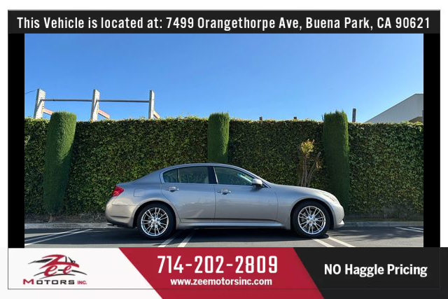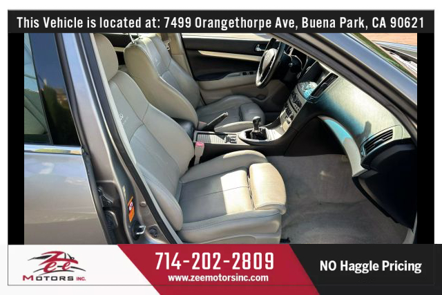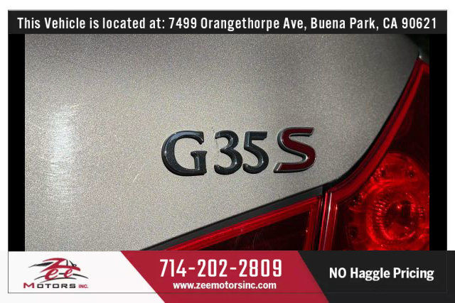 THIS VEHICLE IS LOCATED AT OUR BUENA PARK LOCATION: 7479 ORANGETHORPE AVE, BUENA PARK CA 90621. Please Call us at 657-255-4555 or 714-202-2809 or email us at BUENAPARK@ZEEMOTORSINC.COM To Check Availability. **** G35 SPORT 6-SPEED MANUAL TRANSMISSION ***** 1-OWNER* Clean Title. * Clean Carfax. * No Accidents.* Very Well Maintained Vehicle, Service records available on CARFAX. * Very Clean Inside and Outside.* Passed Safety inspection and Smog Check.Attention to all buyers: All special prices are cash price and it does not include sales tax, license and registration fee, documentation fee, smog fee or any dealer add-ons / accessories. Additional financing charges may apply on approved credit. While great effort is made to ensure the accuracy of the information provided on this site, errors do occur so please verify information with a team member. This is easily done by contacting us via phone or email (Call or Text 657-346-8544)
