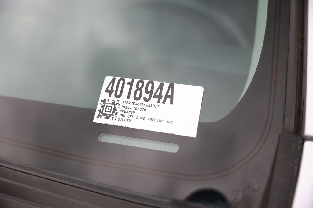 Silver 2024 Toyota 4Runner TRD Off-Road Premium 4WD 5-Speed with ECT 4.0L V6 DOHC 24V 4WD, Wheels: 17" Cast Pro Matte Black (SEMA) (PPO) (TMS).