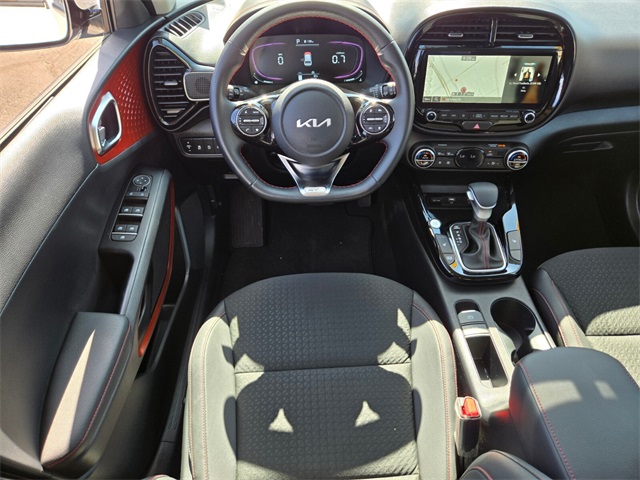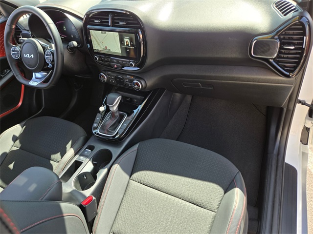 Recent Arrival!CARFAX One-Owner.Priced below KBB Fair Purchase Price!Odometer is 5010 miles below market average!27/33 City/Highway MPGSnow White Pearl 2024 Kia Soul GT-Line FWD CVT 2.0L I4 DOHCIf you don't drive here, you can't save here!Price may not include recon fee. GT-Line Technology Package (Cargo Cover, Dual Level Cargo Board, Electronic Parking Brake, Forward Collision Avoidance-Assist, Heated Front Seats, Highway Driving Assist, LED Fog Lights, LED Headlights, Positioning Lights & Tail Lights, Navigation-Based Smart Cruise Control (NSCC-C), Radio: harman/kardon Premium Audio System, and Speaker Lights), 4-Wheel Disc Brakes, 6 Speakers, 7.5J x 18" Alloy Wheels, ABS brakes, Air Conditioning, Alloy wheels, AM/FM radio: SiriusXM, Apple CarPlay & Android Auto, Auto High-beam Headlights, Automatic temperature control, Brake assist, Bumpers: body-color, Carpeted Floor Mats, Combination Cloth/Artificial Leather Seat Trim, Compass, Delay-off headlights, Driver door bin, Driver vanity mirror, Dual front impact airbags, Dual front side impact airbags, Dual Load Floor Cargo Tray, Electronic Stability Control, Emergency communication system, Exterior Parking Camera Rear, Front anti-roll bar, Front Bucket Seats, Front Center Armrest, Front dual zone A/C, Front reading lights, Front wheel independent suspension, Fully automatic headlights, Heated door mirrors, Illuminated entry, Leather Shift Knob, Leather steering wheel, Low tire pressure warning, Navigation System, Occupant sensing airbag, Outside temperature display, Overhead airbag, Overhead console, Panic alarm, Passenger door bin, Passenger vanity mirror, Power door mirrors, Power moonroof, Power steering, Power windows, Radio data system, Radio: AM/FM/MP3/HD Audio System, Rear seat center armrest, Rear window defroster, Rear window wiper, Remote keyless entry, Speed control, Speed-sensing steering, Split folding rear seat, Sport steering wheel, Steering wheel mounted audio controls, Tachometer, Telescoping steering wheel, Tilt steering wheel, Traction control, Trip computer, Turn signal indicator mirrors, and Variably intermittent wipers.