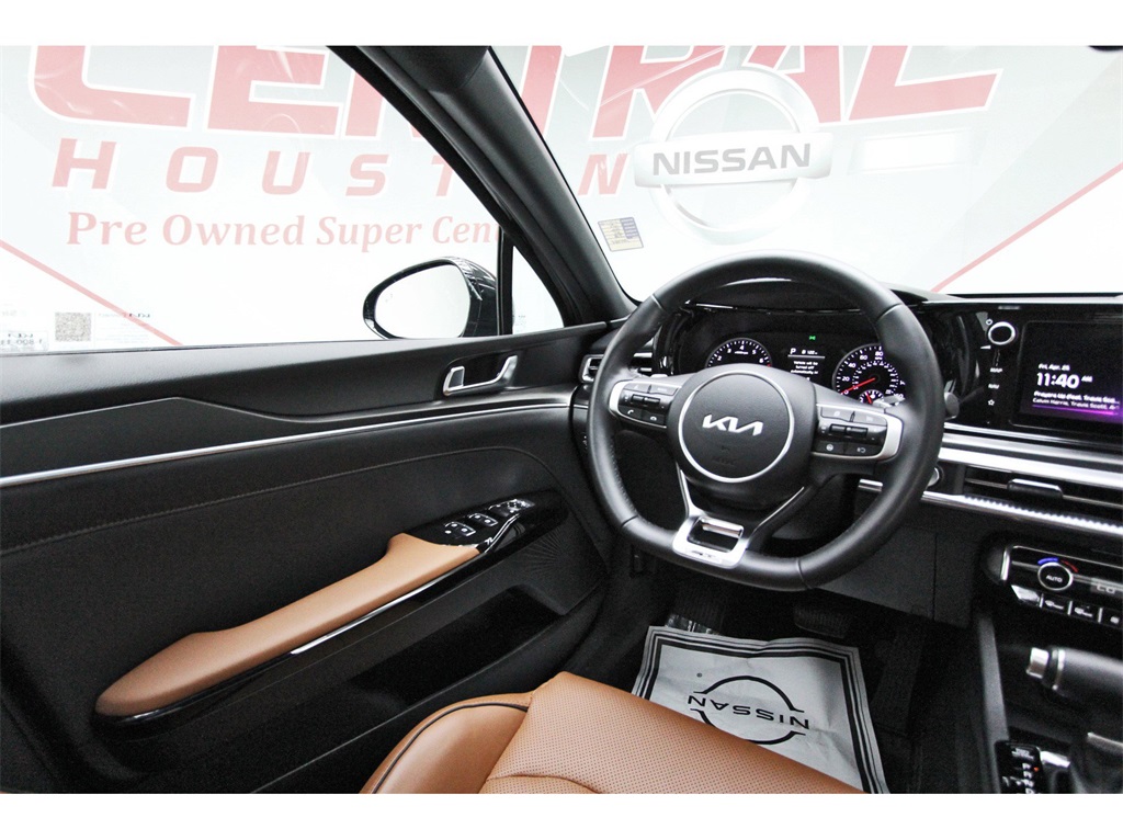 Central Houston Nissan is proud to present you with another True Market Priced Pre-Owned Vehicle. This 2024 Kia K5 GT is loaded with the following Factory Options: GT Brown Interior Color Package, 4-Wheel Disc Brakes, 6 Speakers, ABS brakes, Air Conditioning, Alloy wheels, AM/FM radio: SiriusXM, Apple CarPlay & Android Auto, Auto High-beam Headlights, Automatic temperature control, Brake assist, Bumpers: body-color, Cargo Net, Carpeted Floor Mats, Delay-off headlights, Driver door bin, Driver vanity mirror, Dual front impact airbags, Dual front side impact airbags, Electronic Stability Control, Emergency communication system, Four wheel independent suspension, Front anti-roll bar, Front Bucket Seats, Front Center Armrest, Front dual zone A/C, Front fog lights, Front reading lights, Fully automatic headlights, Heated door mirrors, Heated front seats, Heated Sport Bucket Seats, Illuminated entry, Knee airbag, Leather steering wheel, Low tire pressure warning, Navigation System, Occupant sensing airbag, Outside temperature display, Overhead airbag, Overhead console, Panic alarm, Passenger door bin, Passenger vanity mirror, Power door mirrors, Power driver seat, Power moonroof, Power steering, Power windows, Radio data system, Radio: AM/FM/MP3 Audio System, Rear anti-roll bar, Rear reading lights, Rear seat center armrest, Rear side impact airbag, Rear window defroster, Remote keyless entry, Security system, Smart Key w/ Push Button and Remote Start, Speed control, Speed-sensing steering, Split folding rear seat, Spoiler, Sport steering wheel, Steering wheel mounted audio controls, SynTex Seat Trim, Tachometer, Telescoping steering wheel, Tilt steering wheel, Traction control, Trip computer, Turn signal indicator mirrors, Variably intermittent wipers, and Wheels: 19" Gloss Black Machined Finish Alloy!!Central Houston Nissan is more than just your typical car dealership. When our customers visit us, our goal is to provide quality vehicles, exceptional service and a friendly atmosphere. Our staff has been trained to create ease during your purchase or service experience and we are always making sure you get everything you want and deserve out of your visit. Our vision and mission is an employee-centered and customer-focused environment. Vehicles may be subject to prep package and market adjustment. When you buy from Central Houston Nissan, we'll make it the best car buying experience you've ever had. When you purchase a New Nissan or a qualifying Pre-Owned vehicle from Central Houston Nissan, you are automatically enrolled into our Central Houston Nissan Central Care Program at no cost to you. You can’t beat that! Vehicles may be subject to prep package and market adjustment. Stop by 2901 S Loop W, Houston, Texas 77054 today!!!