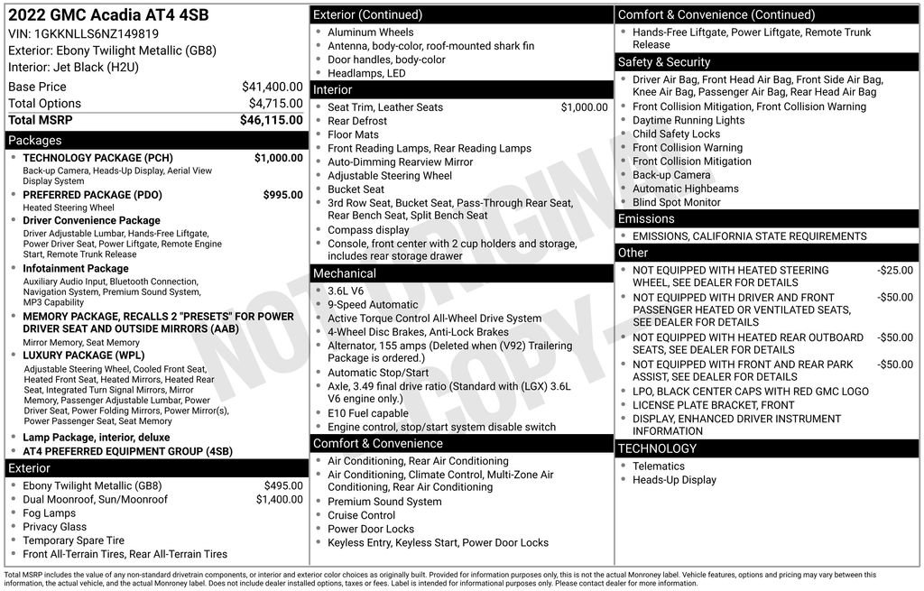 Ebony Twilight Metallic 2022 GMC Acadia AT4 AWD 9-Speed Automatic 3.6L V6 SIDI AWD, Jet Black Leather, 7-Passenger (2-3-2 Seating Configuration).Odometer is 8164 miles below market average! 19/26 City/Highway MPG
