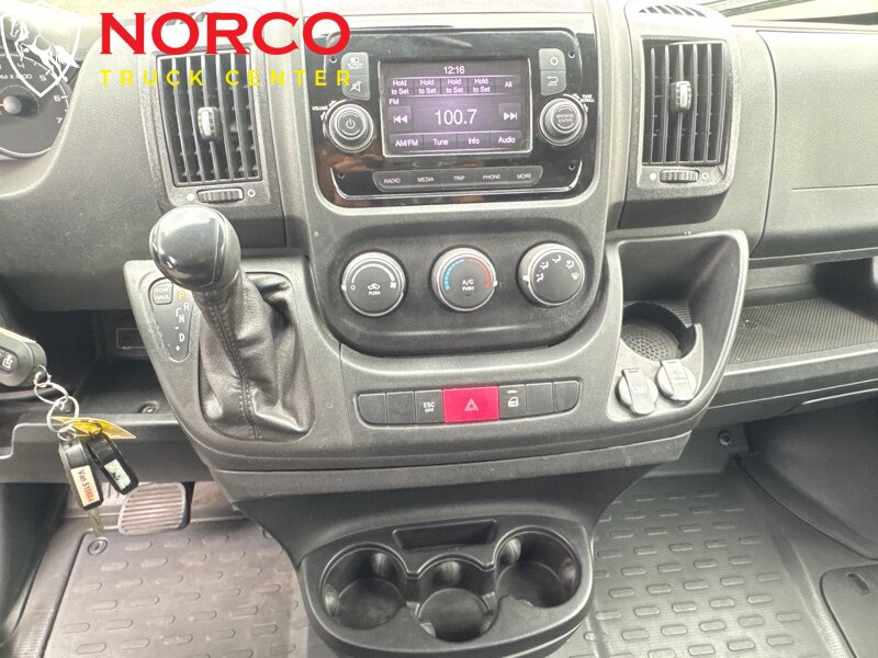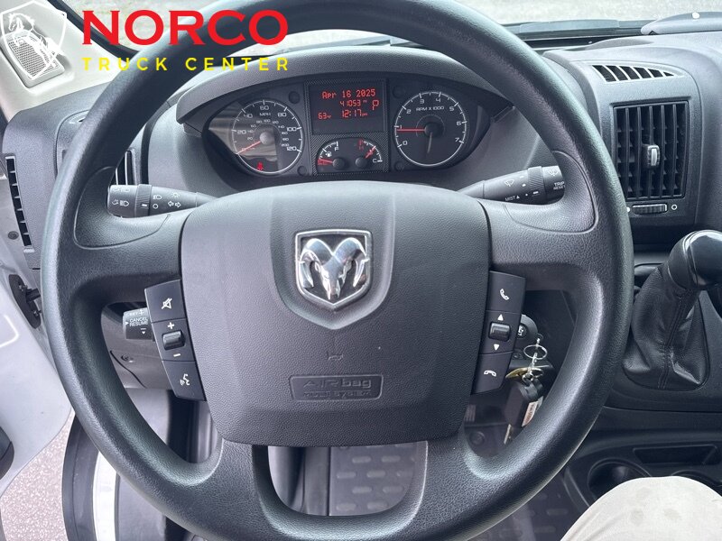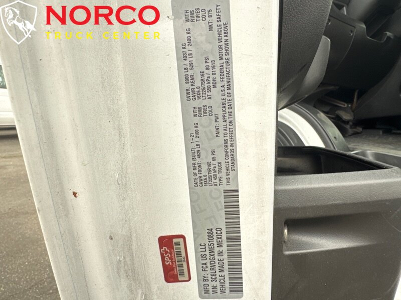 INSTALLED FEATURES: Air filtration, Front air conditioning, Front air conditioning zones: single, Airbag deactivation: occupant sensing passenger, Front airbags: dual, Side airbags: front, Side curtain airbags: front, Antenna type: mast, Auxiliary audio input: Bluetooth / jack / USB, Radio: AM/FM / touch screen display / voice operated, Total speakers: 4, ABS: 4-wheel, Braking assist, Electronic brakeforce distribution, Front brake type: ventilated disc, Power brakes, Rear brake type: ventilated disc, Armrests: drivers seat, Floor material: rubber/vinyl, Shift knob trim: urethane, Steering wheel trim: urethane, Assist handle: front, Cargo area light, Cupholders: front, Multi-function remote: keyless entry / trunk release, One-touch windows: 2, Power outlet(s): 12V front / USB front, Power steering, Reading lights: front, Rearview mirror: manual day/night, Steering wheel: telescopic, Steering wheel mounted controls: audio / phone, Storage: cargo tie-down anchors and hooks / door pockets / in dash, Sun visors, Body side moldings: black, Bumper detail: rear step, Door handle color: black, Front bumper color: black, Grille color: black / chrome surround, Mirror color: black, Rear bumper color: black, Rear trunk/liftgate: barn, Side door type: passenger-side manual sliding, Window trim: black, Infotainment: Uconnect, Infotainment screen size: 5 in., Clock, Digital odometer, External temperature display, Fuel economy display: MPG / range, Gauge: tachometer, Trip odometer, Warnings and reminders: low battery / low fuel level / low oil level / maintenance due, Clearance lights, Headlights: auto delay off / halogen, Side mirror adjustments: manual / manual folding, Side mirrors: integrated turn signals, Alternator: 180 amps, Auxiliary oil cooler, Auxiliary transmission fluid cooler, Battery rating: 800 CCA, Battery saver, Emissions: 50 state, OEM roof height: high, Camera system: rearview, Crumple zones: front, Rearview monitor: in dash, Emergency locking retractors: front, Front seatbelts: 3-point, Seatbelt force limiters: front, Seatbelt pretensioners: front, Seatbelt warning sensor: front, Driver seat manual adjustments: 4 / reclining, Front headrests: 2 / adjustable, Front seat type: bucket, Passenger seat manual adjustments: 4 / reclining, Upholstery: cloth, Anti-theft system: vehicle immobilizer, Power door locks: auto-locking, Crosswind stabilization, Hill holder control, Roll stability control, Stability control, Traction control, Trailer stability control, Front shock type: gas, Front spring type: coil, Front stabilizer bar, Front struts: MacPherson, Front suspension classification: independent, Front suspension type: lower control arms, Rear shock type: gas, Rear spring type: leaf, Rear suspension classification: solid axle, Rear suspension type: multi-leaf, Driver assistance app: roadside assistance, Hands-free phone call integration: voice operated, Wireless data link: Bluetooth, Spare tire mount location: underbody, Spare tire size: full-size, Spare wheel type: steel, Tire Pressure Monitoring System, Wheel covers: partial, Wheels: steel, Front wipers: variable intermittent, Power windows, Solar-tinted glass