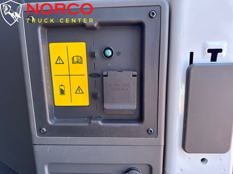 INSTALLED FEATURES: Front air conditioning: automatic climate control, Front air conditioning zones: single, Airbag deactivation: passenger switch, Front airbags: dual, Side airbags: front, Side curtain airbags: front, Antenna type: mast, Auxiliary audio input: Bluetooth / USB, Radio: AM/FM / touch screen display / voice operated, Total speakers: 4, ABS: 4-wheel, Braking assist, Cornering brake control, Electronic brakeforce distribution, Electronic parking brake: auto off, Emergency braking preparation, Front brake type: ventilated disc, Power brakes, Rear brake type: ventilated disc, Regenerative braking system, Armrests: dual front, Floor material: rubber/vinyl, Steering wheel trim: urethane, Assist handle: front / rear, Cargo area light, Center console: front console with storage, Cupholders: front, Multi-function remote: keyless entry / panic alarm / trunk release, One-touch windows: 1, Power outlet(s): 12V front / USB front, Power steering: variable/speed-proportional, Reading lights: front, Steering wheel: tilt and telescopic, Steering wheel mounted controls: audio / multi-function / phone, Storage: door pockets, Sun visors, Body side moldings: black, Door handle color: black, Front bumper color: black, Grille color: accent / chrome surround, Mirror color: black, Rear bumper color: black, Rear trunk/liftgate: barn, Side door type: passenger-side manual sliding, Window trim: black, Infotainment: SYNC, Infotainment screen size: 12 in., Clock, Compass, Digital odometer, External temperature display, Fuel economy display: range, Trip odometer, Warnings and reminders: coolant temperature warning / low battery, Headlights: auto delay off / auto high beam dimmer / auto on/off / halogen, Side mirror adjustments: manual folding / power, Battery: AGM, Electric charge cord: 120 volt / 240 volt / auto switching 110V/240V, Electric motor battery type: lithium ion, Electric motor charger connector: SAE J1772, Electric motor miles per charge: 116, EV battery capacity: 68 kWh, OEM roof height: medium, Automatic emergency braking: front / front pedestrian, Automatic hazard warning lights, Camera system: rearview, Driver attention alert system, Impact sensor: door unlock / post-collision safety system, Lane deviation sensors, Pedestrian safety sound generation, Pre-collision warning system: audible warning / pedestrian detection / visual warning, Rearview monitor: in dash, Front seatbelts: 3-point, Seatbelt warning sensor: front, Driver seat manual adjustments: 2 / reclining, Front headrests: 2 / adjustable, Front seat type: bucket, Passenger seat manual adjustments: 2 / reclining, Upholstery: vinyl, Anti-theft system: vehicle immobilizer, Power door locks: auto-locking, Crosswind stabilization, Hill holder control, Roll stability control, Stability control, Traction control, Trailer stability control, Front shock type: gas, Front spring type: coil, Front stabilizer bar, Front struts: MacPherson, Front suspension classification: independent, Front suspension type: lower control arms, Rear shock type: gas, Rear spring type: coil, Rear suspension classification: independent, Rear suspension type: multi-link, Hands-free phone call integration: voice operated, Navigation data: real time traffic, Navigation system: touch screen display / voice operated, Smart device app compatibility: FordPass Connect, Smart device app function: lock operation / maintenance status / vehicle location, Wi-Fi: hotspot, Wireless data link: Bluetooth, Spare tire mount location: underbody, Spare tire size: full-size, Spare wheel type: steel, Tire Pressure Monitoring System, Wheel covers: full, Wheels: painted steel, Front wipers: rain sensing / variable intermittent, Power windows: safety reverse, Solar-tinted glass