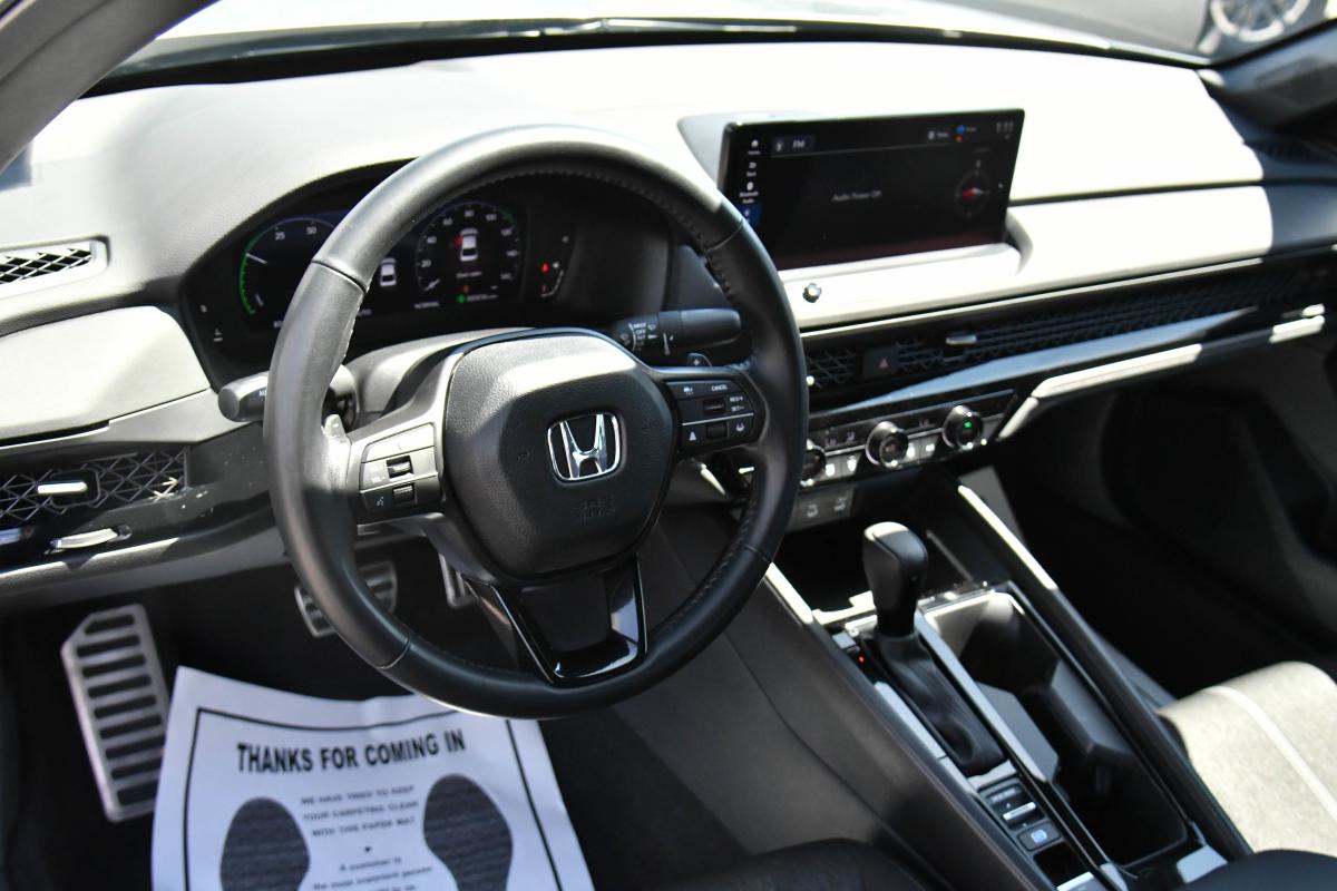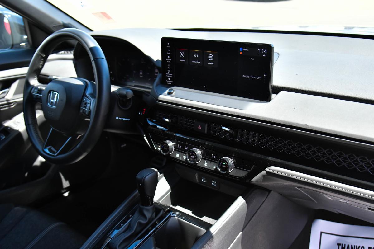 Boasts 41 Highway MPG and 46 City MPG! This Honda Accord Hybrid boasts a Gas/Electric I-4 2.0 L/122 engine powering this Variable transmission. Wheels: 19 x 8.5J Berlina Black -inc: machined face, Vehicle Stability Assist (VSA) Electronic Stability Control (ESC), Valet Function.*This Honda Accord Hybrid Comes Equipped with These Options *Trunk Rear Cargo Access, Trip Computer, Transmission: Electronic Continuously Variable -inc: econ, normal, sport and individual modes, Traffic Jam Assist, Tires: 235/40R19 96V AS, Tire Specific Low Tire Pressure Warning, Tire mobility kit, Strut Front Suspension w/Coil Springs, Speed Sensitive Variable Intermittent Wipers, Smart Device Remote Engine Start.