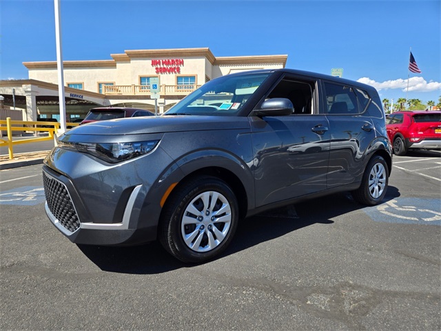 CARFAX One-Owner.Priced below KBB Fair Purchase Price!Odometer is 27239 miles below market average!29/35 City/Highway MPGGrey 2023 Kia Soul LX FWD CVT 2.0L I4 DOHCIf you don't drive here, you can't save here!Price may not include recon fee. 16" Steel Wheels, 4-Wheel Disc Brakes, 6 Speakers, ABS brakes, Air Conditioning, AM/FM radio, Apple CarPlay & Android Auto, Auto High-beam Headlights, Brake assist, Bumpers: body-color, Carpeted Floor Mats, Compass, Delay-off headlights, Driver door bin, Driver vanity mirror, Dual front impact airbags, Dual front side impact airbags, Electronic Stability Control, Exterior Parking Camera Rear, Front anti-roll bar, Front Bucket Seats, Front Center Armrest, Front reading lights, Front wheel independent suspension, Fully automatic headlights, Illuminated entry, Low tire pressure warning, Occupant sensing airbag, Outside temperature display, Overhead airbag, Overhead console, Panic alarm, Passenger door bin, Passenger vanity mirror, Power door mirrors, Power steering, Power windows, Radio data system, Radio: AM/FM/MP3/HD Audio System, Rear window defroster, Rear window wiper, Remote keyless entry, Speed control, Speed-sensing steering, Split folding rear seat, Steering wheel mounted audio controls, Tachometer, Telescoping steering wheel, Tilt steering wheel, Traction control, Trip computer, Variably intermittent wipers, and Woven & Tricot Cloth Seat Trim.