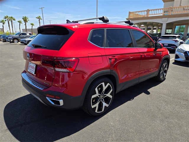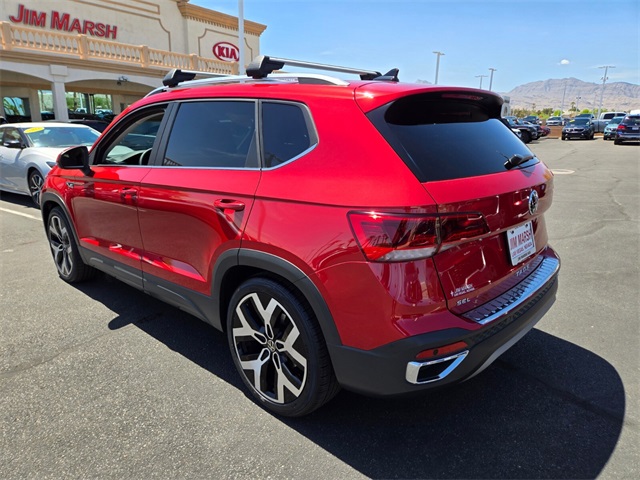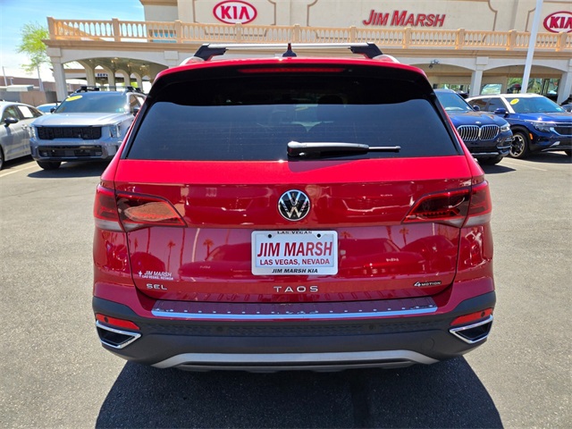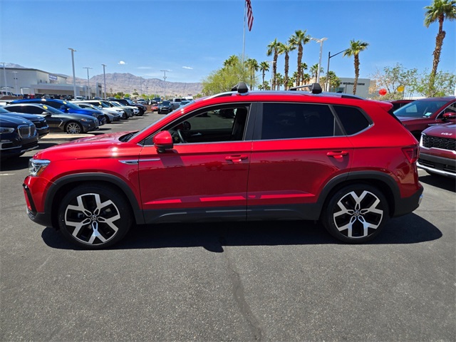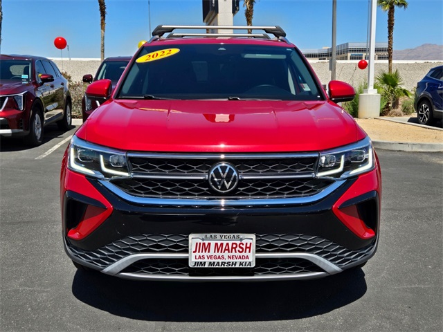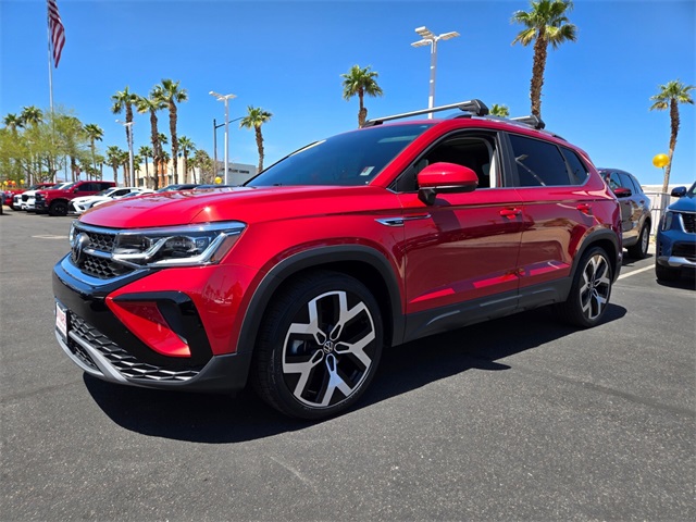Priced below KBB Fair Purchase Price!Odometer is 4979 miles below market average!25/32 City/Highway MPGRed Metallic 2022 Volkswagen Taos 1.5T SEL AWD 7-Speed DSG Automatic with Tiptronic 1.5L I4 Turbocharged DOHC 16V LEV3-SULEV30 158hpIf you don't drive here, you can't save here!Price may not include recon fee. Panoramic Sunroof Package, 4-Wheel Disc Brakes, 5.20 Axle Ratio, 9 Speakers, ABS brakes, Active Blind Spot Monitor, Air Conditioning, Alloy wheels, AM/FM radio: SiriusXM with 360L, Auto High-beam Headlights, Auto-dimming Rear-View mirror, Automatic temperature control, Brake assist, Bumpers: body-color, Cargo Area Retractable Privacy Cover (DISC), Chrome Bumperdillo Protection Plate for Rear Bumper, Compass, Delay-off headlights, Driver door bin, Driver vanity mirror, Dual front impact airbags, Dual front side impact airbags, Electronic Stability Control, Emergency communication system: Car-Net, Exterior Parking Camera Rear, First Aid Kit, Four wheel independent suspension, Front anti-roll bar, Front Bucket Seats, Front Center Armrest, Front dual zone A/C, Front reading lights, Front Strut Rear Multi-Link Suspension, Fully automatic headlights, Heated & Ventilated Front Comfort Sport Seats, Heated door mirrors, Heated front seats, Heated steering wheel, Illuminated entry, Leather Shift Knob, Low tire pressure warning, Navigation system: VW Car-Net Guide & Inform, Occupant sensing airbag, Outside temperature display, Overhead airbag, Overhead console, Panic alarm, Passenger door bin, Passenger vanity mirror, Perforated Vienna Leather Seating Surfaces, Power door mirrors, Power driver seat, Power steering, Power windows, Radio data system, Radio: MIB3 Discover Media AM/FM/HD, Rain sensing wipers, Rear anti-roll bar, Rear Parking Sensors, Rear seat center armrest, Rear window defroster, Rear window wiper, Remote keyless entry, Roadside Assistance Kit, Roof rack: rails only, Rubber Mats Kit (SNM) (DISC), Security system, Speed control, Speed-sensing steering, Split folding rear seat, Spoiler, Steering wheel mounted audio controls, Tachometer, Telescoping steering wheel, Tilt steering wheel, Traction control, Trip computer, Variably intermittent wipers, Ventilated front seats, VW Car-Net Safe & Secure 3-Yr Prepaid Subscription, VW Care, and Wheels: 19" 2-Tone Machined Alloy.