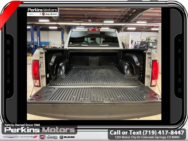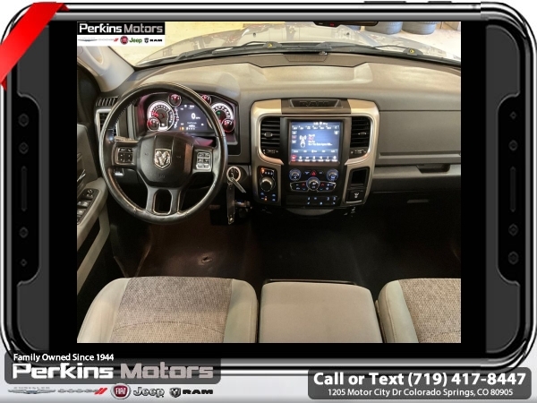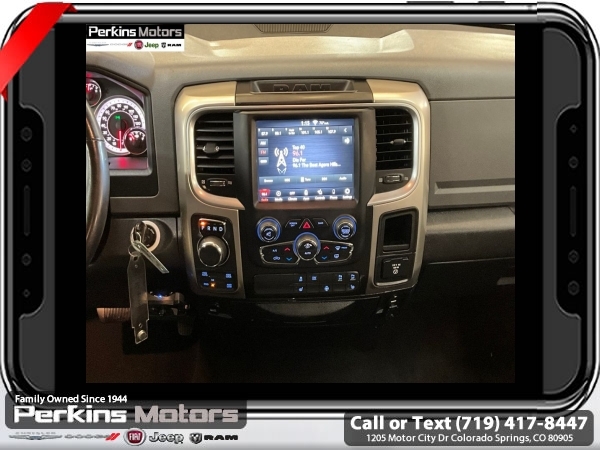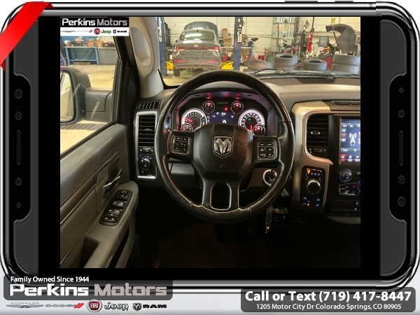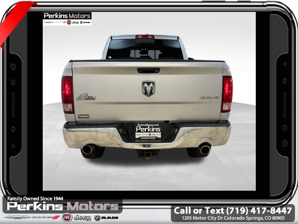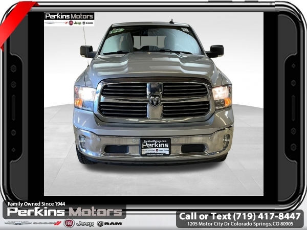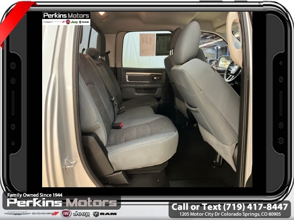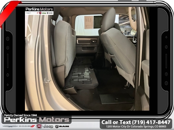 Bright Silver Metallic Clearcoat 4WD HEMI 5.7L V8 Multi Displacement VVT 8-Speed Automatic<br><br>Heated Front Seats, Heated Seats & Wheel Group, Heated Steering Wheel, Humidity Sensor, Protection Group, Tow Hooks.<br><br><br>Check us out at www.perkinsmotors.com to see our specials! Since opening our doors in 1944, we’ve been proud to serve Colorado Springs, CO, and the surrounding areas of Pueblo, Castle Rock and Denver, CO. Throughout this time of being family owned for 80 years, we’ve maintained a firm commitment to our customers: to offer a wide selection of New Chrysler, Dodge, Fiat, Jeep, and Ram vehicles and quality pre-owned vehicles, and provide a quick, no-hassle car-buying process that ensures everyone drives off the lot satisfied with their purchase.<br><br><br>Heated Seats & Wheel Group (Heated Front Seats, Heated Steering Wheel, and Humidity Sensor), Protection Group (Tow Hooks), Quick Order Package 26S Big Horn (DISC) (40/20/40 Split Bench Seat, Audio Jack Input for Mobile Devices, Charge Only Remote USB Port, Electroluminescent Instrument Cluster, Exterior Mirrors w/Supplemental Signals, Front Armrest w/3 Cupholders, GPS Antenna Input, Integrated Voice Command w/Bluetooth, Overhead Console w/Garage Door Opener, Rear Dome w/On/Off Switch Lamp, Remote USB Port, Steering Wheel Mounted Audio Controls, Storage Tray, and Wheels: 20 x 8 Aluminum Chrome Clad), 3.21 Rear Axle Ratio, 4-Wheel Disc Brakes, 6 Speakers, ABS brakes, Active Grille Shutters, Air Conditioning, Alloy wheels, AM/FM radio: SiriusXM, Anti-Spin Differential Rear Axle, Black Exterior Mirrors, Brake assist, Bumpers: chrome, Center Hub, Compass, Cruise Control, Delay-off headlights, Driver door bin, Dual front impact airbags, Dual front side impact airbags, Electronic Shift, Electronic Stability Control, Exterior Mirrors w/Heating Element, Front anti-roll bar, Front Center Armrest w/Storage, Front reading lights, Front wheel independent suspension, Fully automatic headlights, Heated door mirrors, Illuminated entry, Low tire pressure warning, Manufacturer's Statement of Origin, Occupant sensing airbag, Outside temperature display, Overhead airbag, Overhead console, Panic alarm, ParkView Rear Back-Up Camera, Passenger door bin, Passenger vanity mirror, Power door mirrors, Power steering, Power windows, Radio data system, Rear anti-roll bar, Rear seat center armrest, Rear step bumper, Remote keyless entry, Single Disc Remote CD Player, Tachometer, Tilt steering wheel, Tip Start, Traction control, Trip computer, Variably intermittent wipers, and Voltmeter.