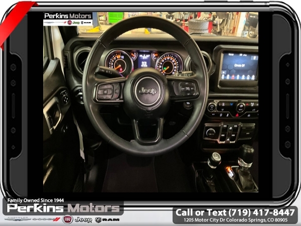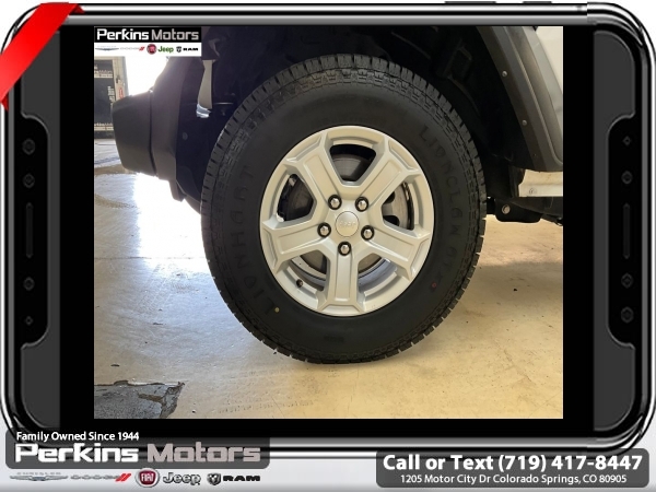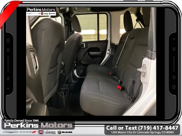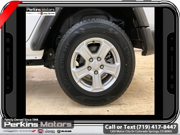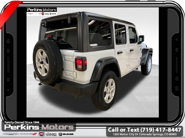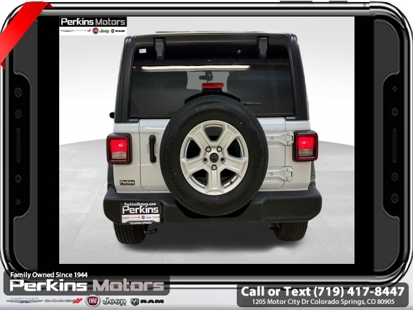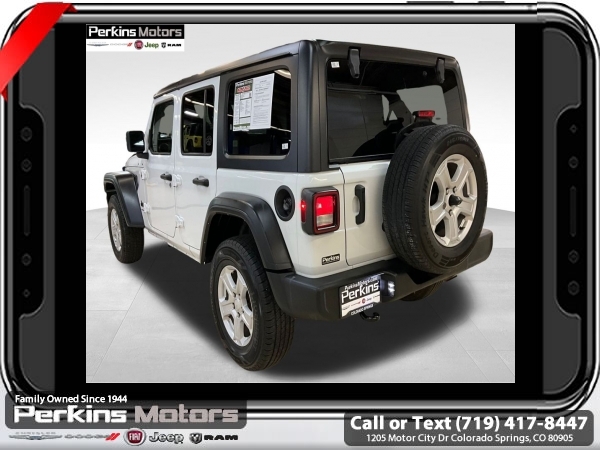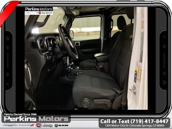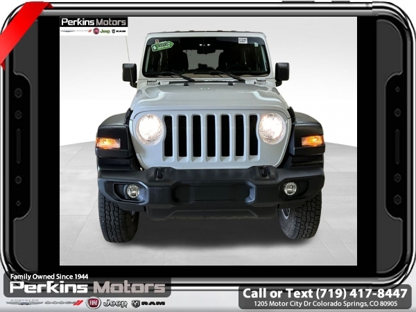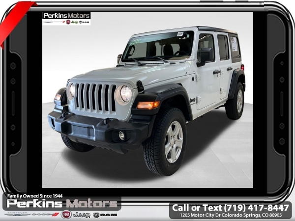 Bright White Clearcoat 4WD 2.0L I4 DOHC 8-Speed Automatic<br><br><br>Certified. FCA US LLC Certified Pre-Owned Details:<br><br> * Warranty Deductible: $100<br> * Powertrain Limited Warranty: 84 Month/100,000 Mile (whichever comes first) from original in-service date<br> * Transferable Warranty<br> * 125 Point Inspection<br> * Roadside Assistance<br> * Vehicles Up to 75,000 Miles and/or 5 Model Years. 24-Hour Towing & Roadside Assistance, Car Rental Allowance, CARFAX® Vehicle History ReportTM and an Introductory 3-month Subscription to SiriusXM® Satellite Radio & Certified Warranty Upgrades<br> * Vehicle History<br> * Limited Warranty: 3 Month/3,000 Mile (whichever comes first) after new car warranty expires or from certified purchase date<br><br><br>Clean CARFAX.<br><br>Check us out at www.perkinsmotors.com to see our specials! Since opening our doors in 1944, we’ve been proud to serve Colorado Springs, CO, and the surrounding areas of Pueblo, Castle Rock and Denver, CO. Throughout this time of being family owned for 80 years, we’ve maintained a firm commitment to our customers: to offer a wide selection of New Chrysler, Dodge, Fiat, Jeep, and Ram vehicles and quality pre-owned vehicles, and provide a quick, no-hassle car-buying process that ensures everyone drives off the lot satisfied with their purchase.<br><br><br>Quick Order Package 22S Sport S, FCA US LLC Certified Pre-Owned Certified, 3.45 Overall Top Gear Ratio, 4-Wheel Disc Brakes, 8 Speakers, ABS brakes, Air Conditioning, AM/FM radio, Apple CarPlay, Apple CarPlay/Android Auto, Aux Battery, Black 3-Piece Hard Top, Brake assist, Cloth Low-Back Bucket Seats, Compass, Cruise Control, Delay-off headlights, Driver door bin, Driver vanity mirror, Dual front impact airbags, Dual front side impact airbags, Electronic Stability Control, Emergency communication system: SiriusXM Guardian, Engine Oil Cooler, Front anti-roll bar, Front Bucket Seats, Front Center Armrest w/Storage, Front fog lights, Front reading lights, Google Android Auto, GPS Antenna Input, Integrated Center Stack Radio, Integrated roll-over protection, Integrated Voice Command w/Bluetooth, Low tire pressure warning, Non-Lock Fuel Cap w/o Discriminator, Normal Duty Suspension, Occupant sensing airbag, Outside temperature display, ParkView Rear Back-Up Camera, Passenger door bin, Passenger vanity mirror, Power steering, Radio data system, Radio: Uconnect 4 w/7 Display, Rear anti-roll bar, Rear reading lights, Rear Window Defroster, Split folding rear seat, Steering wheel mounted audio controls, Stop-Start Dual Battery System, Tachometer, Telescoping steering wheel, Tilt steering wheel, Traction control, Trip computer, USB Host Flip, Variably intermittent wipers, Wheels: 17 x 7.5 Black Steel Styled, and Wheels: 17 x 7.5 Tech Silver Aluminum (DISC)