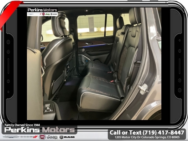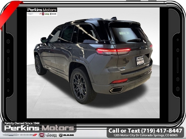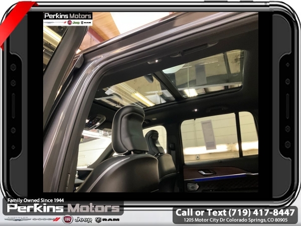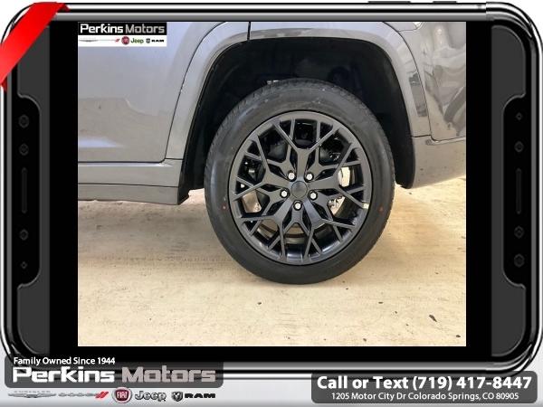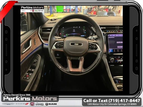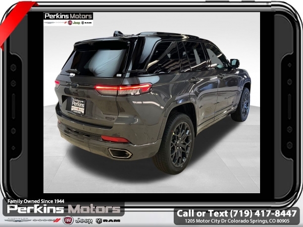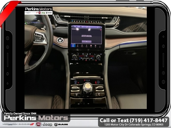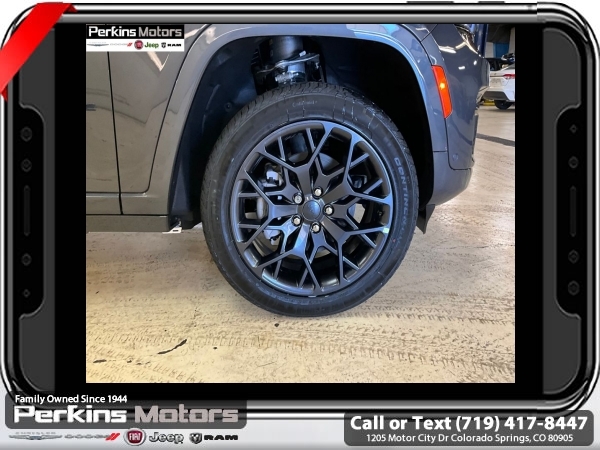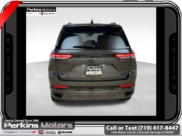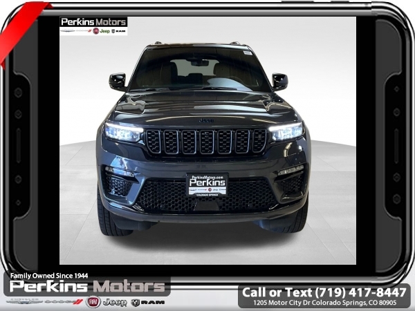 Factory MSRP: $84,650 $8,087 off MSRP! Baltic Gray Metallic Clearcoat 2025 Jeep Grand Cherokee 4WD 8-Speed Automatic 2.0L I4 DOHC<br>2.0L I4 DOHC, 4WD.<br>Check us out at www.perkinsmotors.com to see our specials! Since opening our doors in 1944, we’ve been proud to serve Colorado Springs, CO, and the surrounding areas of Pueblo, Castle Rock and Denver, CO. Throughout this time of being family owned for 80 years, we’ve maintained a firm commitment to our customers: to offer a wide selection of New Chrysler, Dodge, Fiat, Jeep, and Ram vehicles and quality pre-owned vehicles, and provide a quick, no-hassle car-buying process that ensures everyone drives off the lot satisfied with their purchase.<br><br>Advanced Protech Group IV (Heads-Up Display, Night Vision/Pedestrian-Animal Detection, Rearview Autodim Digital Display Mirror, and Windshield Wiper De-Icer), High Altitude Package (Gloss Black Exterior Accents, Neutral Gray Exterior Accents, Painted Door Cladding, and Wheels: 21 x 9.0 Black Painted Aluminum), Luxury Tech Group V (2nd-Row Manual Window Shades and Wireless Charging Pad), Quick Order Package 27T, Two Tone Paint Group, 2.0L I4 DOHC, 4WD, 19 Speakers, 3.70 Rear Axle Ratio, 4-Wheel Disc Brakes, ABS brakes, Adaptive suspension, Air Conditioning, Alloy wheels, AM/FM radio: SiriusXM with 360L, Anti-whiplash front head restraints, Audio memory, Auto High-beam Headlights, Auto-dimming door mirrors, Auto-dimming Rear-View mirror, Auto-leveling suspension, Automatic temperature control, Brake assist, Bumpers: body-color, Compass, Cruise Control, Delay-off headlights, Driver door bin, Driver vanity mirror, Dual front impact airbags, Dual front side impact airbags, Electronic Stability Control, Four wheel independent suspension, Front anti-roll bar, Front Bucket Seats, Front Center Armrest w/Storage, Front dual zone A/C, Front fog lights, Front License Plate Bracket, Front Passenger Interactive Display, Front reading lights, Fully automatic headlights, Garage door transmitter, Genuine wood dashboard insert, Genuine wood door panel insert, Heated door mirrors, Heated front seats, Heated rear seats, Heated steering wheel, Heavy Duty Suspension, Illuminated entry, Knee airbag, Leather steering wheel, Low tire pressure warning, Memory seat, Model Year Tracking, Nappa Leather Seats, Navigation System, Occupant sensing airbag, Outside temperature display, Overhead airbag, Overhead console, Panic alarm, Passenger door bin, Passenger vanity mirror, Power door mirrors, Power driver seat, Power Liftgate, Power moonroof, Power passenger seat, Power steering, Power windows, Radio data system, Radio: Uconnect 5 Nav w/10.1 Display, Rain sensing wipers, Rear air conditioning, Rear anti-roll bar, Rear dual zone A/C, Rear reading lights, Rear seat center armrest, Rear window defroster, Rear window wiper, Remote keyless entry, Security system, Speed-Sensitive Wipers, Split folding rear seat, Spoiler, Steering wheel memory, Steering wheel mounted audio controls, Tachometer, Telescoping steering wheel, Tilt steering wheel, Traction control, Trip computer, Turn signal indicator mirrors, Variably intermittent wipers, Ventilated front seats, Voltmeter, and Wheels: 20 x 8.5 Fully Painted Aluminum Silver. Sale price includes all manufacture's incentives and dealer discounts. Sale price not available on lease or compatible with special APR. $2000 - 2025 National Retail Consumer Cash. Exp. 06/02/2025