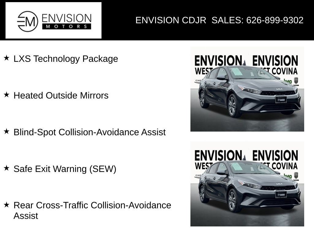 WE SPECIALIZE IN ALL CREDIT PROFILES! See what we can do for you! Call to find out (626) 899-9302.Clean CARFAX.Odometer is 11845 miles below market average! 28/39 City/Highway MPG Blind-Spot Collision-Avoidance Assist, Heated Outside Mirrors, LXS Technology Package, Rear Cross-Traffic Collision-Avoidance Assist, Safe Exit Warning (SEW).Gravity Gray2024 Kia Forte LXS FWD CVT 2.0L I4 MPI**********All Pricing and Advertised Prices for any/all vehicles offered for sale does not include dealer installed accessories which can be purchased for an additional cost.********** The Factory Rebates may not be available on this vehicle if you elect to take advantage of a Special Alternative APR or Special Lease program. Some Factory Rebates are California Resident specific and may vary for residents of other states. NO sales to Dealers, Brokers or Exporters. For out of state purchase, customers must be present to purchase. If shipping is required, dealership must facilitate; no exceptions. Please contact us for special Multi-Vehicle or Fleet pricing. Prices are plus government fees and taxes, any finance charges, $85 documentary fee, $29 electronic registration fee, any emission testing charge and $1.75 per new tire state tire fee. *** We make every effort to provide accurate information, but please verify before purchasing. Leasing & financing available on approved credit. Trade-ins accepted. Subject to prior sale.