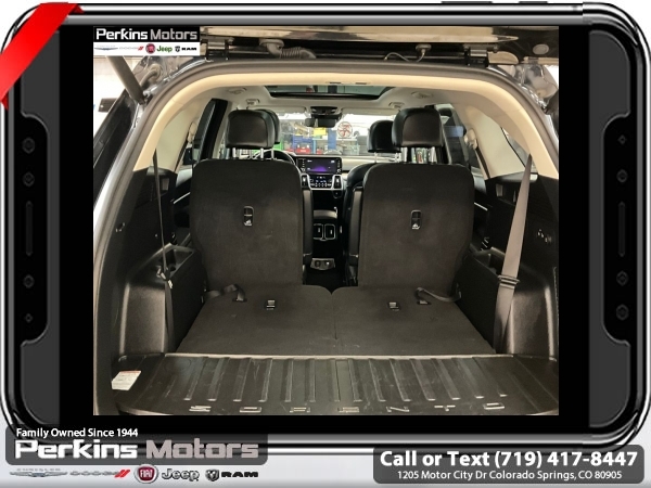 Aurora Black AWD 1.6L I4 DGI Hybrid Turbocharged DOHC 16V LEV3-ULEV70 6-Speed Automatic<br><br>1.6L I4 DGI Hybrid Turbocharged DOHC 16V LEV3-ULEV70, LED Interior Lighting, Navigation System, Panoramic Sunroof Package, Power Sunroof w/Power Sunshade.<br><br><br>Check us out at www.perkinsmotors.com to see our specials! Since opening our doors in 1944, we’ve been proud to serve Colorado Springs, CO, and the surrounding areas of Pueblo, Castle Rock and Denver, CO. Throughout this time of being family owned for 80 years, we’ve maintained a firm commitment to our customers: to offer a wide selection of New Chrysler, Dodge, Fiat, Jeep, and Ram vehicles and quality pre-owned vehicles, and provide a quick, no-hassle car-buying process that ensures everyone drives off the lot satisfied with their purchase.<br><br><br>Panoramic Sunroof Package (LED Interior Lighting and Power Sunroof w/Power Sunshade), 1.6L I4 DGI Hybrid Turbocharged DOHC 16V LEV3-ULEV70, Navigation System, 3rd row seats: split-bench, 4-Wheel Disc Brakes, 6 Speakers, ABS brakes, Air Conditioning, Alloy wheels, AM/FM radio: SiriusXM, Apple CarPlay & Android Auto, Auto High-beam Headlights, Automatic temperature control, Axle Ratio: 3.510, Brake assist, Bumpers: body-color, Cargo Net, Carpeted Floor Mats, Cruise Control, Delay-off headlights, Driver door bin, Driver vanity mirror, Dual front impact airbags, Dual front side impact airbags, Electronic Stability Control, Emergency communication system: UVO Link, Exterior Parking Camera Rear, Folding Cargo Tray, Four wheel independent suspension, Front anti-roll bar, Front Bucket Seats, Front Center Armrest, Front dual zone A/C, Front fog lights, Front reading lights, Fully automatic headlights, Heated door mirrors, Heated Front Bucket Seats, Heated front seats, Illuminated entry, Knee airbag, Leather steering wheel, Low tire pressure warning, Occupant sensing airbag, Outside temperature display, Overhead airbag, Overhead console, Panic alarm, Passenger door bin, Passenger vanity mirror, Power door mirrors, Power driver seat, Power Liftgate, Power steering, Power windows, Radio data system, Radio: AM/FM Audio System, Rear air conditioning, Rear anti-roll bar, Rear reading lights, Rear window defroster, Rear window wiper, Remote keyless entry, Roof rack: rails only, Security system, Smart Key w/ Push Button and Remote Start, Speed-sensing steering, Split folding rear seat, Spoiler, Steering wheel mounted audio controls, SynTex Artificial Leather Seat Trim, Tachometer, Telescoping steering wheel, Tilt steering wheel, Traction control, Trip computer, Turn signal indicator mirrors, Variably intermittent wipers, Wheel Locks, and Wheels: 19 Machine-Finished Alloy.