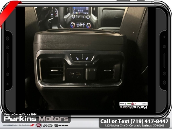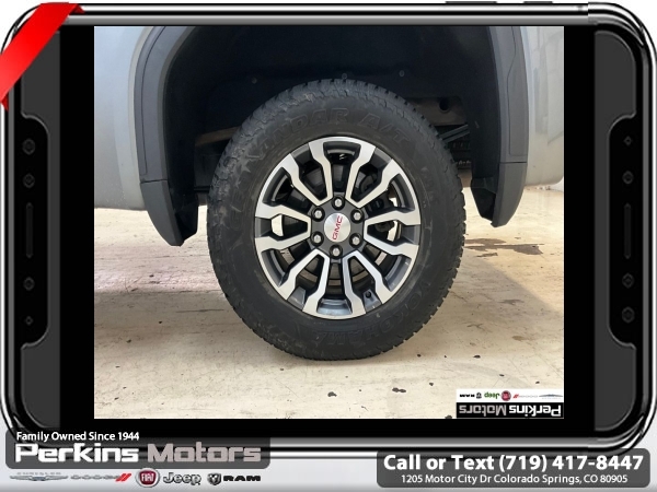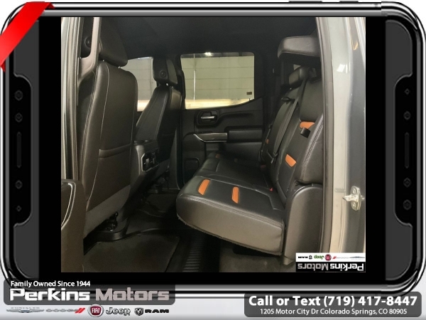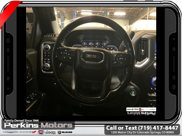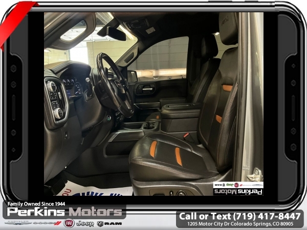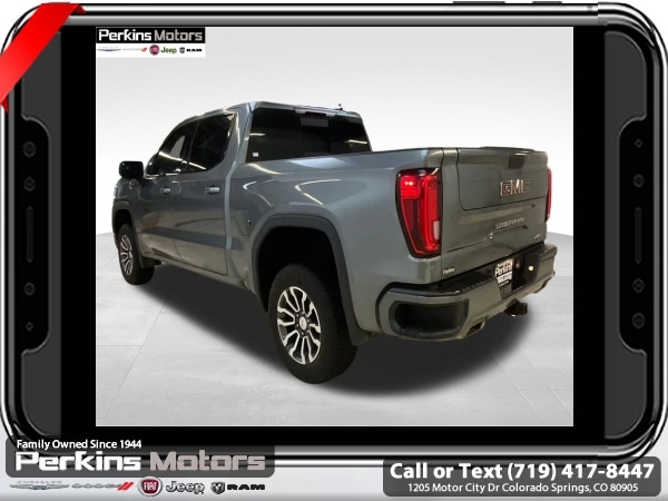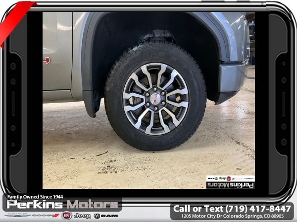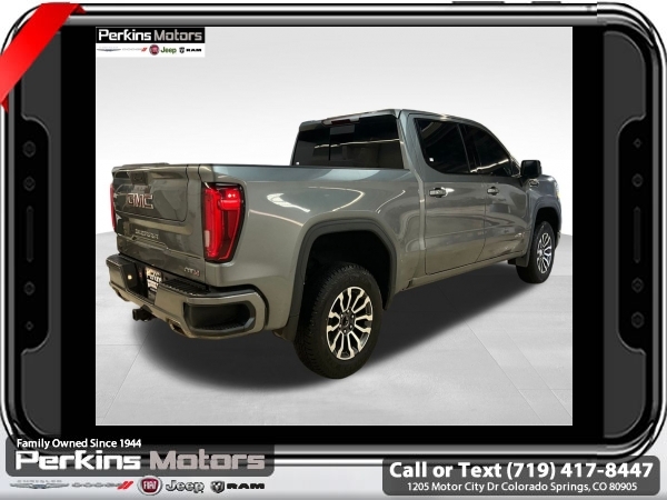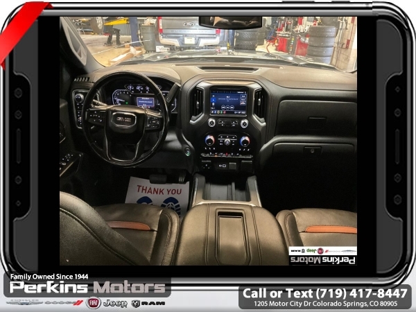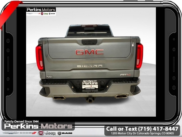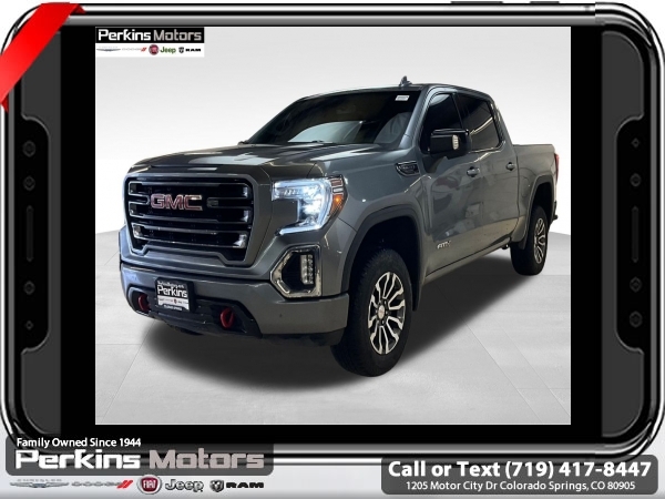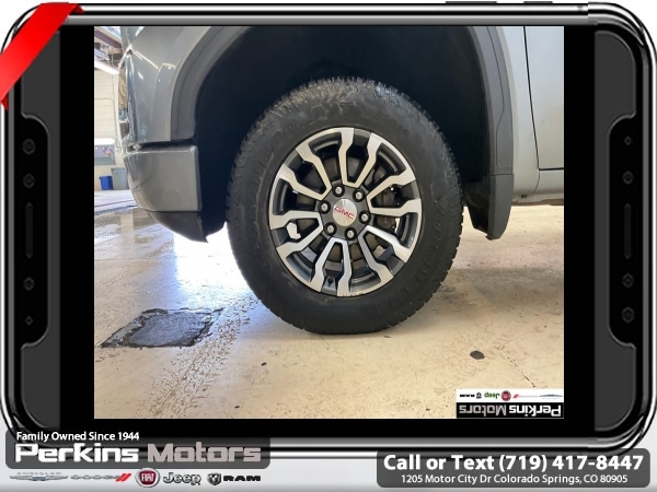 Satin Steel Metallic 4WD EcoTec3 5.3L V8 10-Speed Automatic<br><br>10-Speed Automatic, 4WD, Jet Black With Kalahari Accents Leather, 12-Volt Rear Auxiliary Power Outlet, 120-Volt Bed Mounted Power Outlet, 120-Volt Instrument Panel Power Outlet, 170 Amp Alternator, 2 USB Ports, 2 USB Ports (1st Row), 4.2 Diagonal Color Display Driver Info Center, 4G LTE Wi-Fi Hotspot Capable, AT4 Preferred Package, Auto-Locking Rear Differential, Auxiliary External Transmission Oil Cooler, Body-Color Surround Grille, Color-Keyed Carpeting Floor Covering, Compass, Deep-Tinted Glass, Electric Rear-Window Defogger, Electrical Lock Control Steering Column, Floor-Mounted Center Console, Front Prem Floor Liners w/Removable Carpet Insert, GMC Connected Access Capable, HD Rear Vision Camera, Heated Driver & Front Outboard Passenger Seating, Heavy-Duty Air Filter, Hill Descent Control, Hitch Guidance, Hitch Guidance w/Hitch View, In-Vehicle Trailering App, Integrated Trailer Brake Controller, Keyless Open & Start, LED Cargo Area Lighting, Manual Tilt-Wheel & Telescoping Steering Column, OnStar & GMC Connected Services Capable, Power Door Locks, Power Front Passenger Windows w/Express Up/Down, Power Front Windows w/Driver Express Up/Down, Power Rear Windows w/Express Down, Power Sliding Rear Window w/Rear Defogger, Preferred Equipment Group 4SB, Premium Bose 7-Speaker Sound System, ProGrade Trailering System, Radio: Premium GMC Infotainment Sys w/Navigation, Rear Dual USB Charging-Only Ports, Rear Prem Floor Liners w/Removable Carpet Insert, Rear Wheelhouse Liners, Red Recovery Hooks, Remote Vehicle Starter System, SiriusXM w/360L, Spray-On Pickup Bed Liner w/AT4 Logo, Steering Wheel Audio Controls, Theft Deterrent System (Unauthorized Entry), Trailering Package, Universal Home Remote, Ventilated Driver & Front Passenger Seats, Wireless Charging.<br><br><br>Clean CARFAX.<br><br>Check us out at www.perkinsmotors.com to see our specials! Since opening our doors in 1944, we’ve been proud to serve Colorado Springs, CO, and the surrounding areas of Pueblo, Castle Rock and Denver, CO. Throughout this time of being family owned for 80 years, we’ve maintained a firm commitment to our customers: to offer a wide selection of New Chrysler, Dodge, Fiat, Jeep, and Ram vehicles and quality pre-owned vehicles, and provide a quick, no-hassle car-buying process that ensures everyone drives off the lot satisfied with their purchase.<br><br><br>AT4 Preferred Package (Power Sliding Rear Window w/Rear Defogger, Premium Bose 7-Speaker Sound System, Radio: Premium GMC Infotainment Sys w/Navigation, SiriusXM w/360L, Universal Home Remote, and Wireless Charging), Preferred Equipment Group 4SB (12-Volt Rear Auxiliary Power Outlet, 120-Volt Bed Mounted Power Outlet, 120-Volt Instrument Panel Power Outlet, 170 Amp Alternator, 2 USB Ports, 2 USB Ports (1st Row), 4.2 Diagonal Color Display Driver Info Center, 4G LTE Wi-Fi Hotspot Capable, Auto-Locking Rear Differential, Auxiliary External Transmission Oil Cooler, Body-Color Surround Grille, Color-Keyed Carpeting Floor Covering, Compass, Deep-Tinted Glass, Electric Rear-Window Defogger, Electrical Lock Control Steering Column, Floor-Mounted Center Console, Front Prem Floor Liners w/Removable Carpet Insert, GMC Connected Access Capable, HD Rear Vision Camera, Heated Driver & Front Outboard Passenger Seating, Heavy-Duty Air Filter, Hill Descent Control, Hitch Guidance w/Hitch View, In-Vehicle Trailering App, Integrated Trailer Brake Controller, Keyless Open & Start, LED Cargo Area Lighting, Manual Tilt-Wheel & Telescoping Steering Column, OnStar & GMC Connected Services Capable, Power Door Locks, Power Front Passenger Windows w/Express Up/Down, Power Front Windows w/Driver Express Up/Down, Power Rear Windows w/Express Down, ProGrade Trailering System, Rear Dual USB Charging-Only Ports, Rear Prem Floor Liners w/Removable Carpet Insert, Rear Wheelhouse Liners, Red Recovery Hooks, Remote Vehicle Starter System, Spray-On Pickup Bed Li