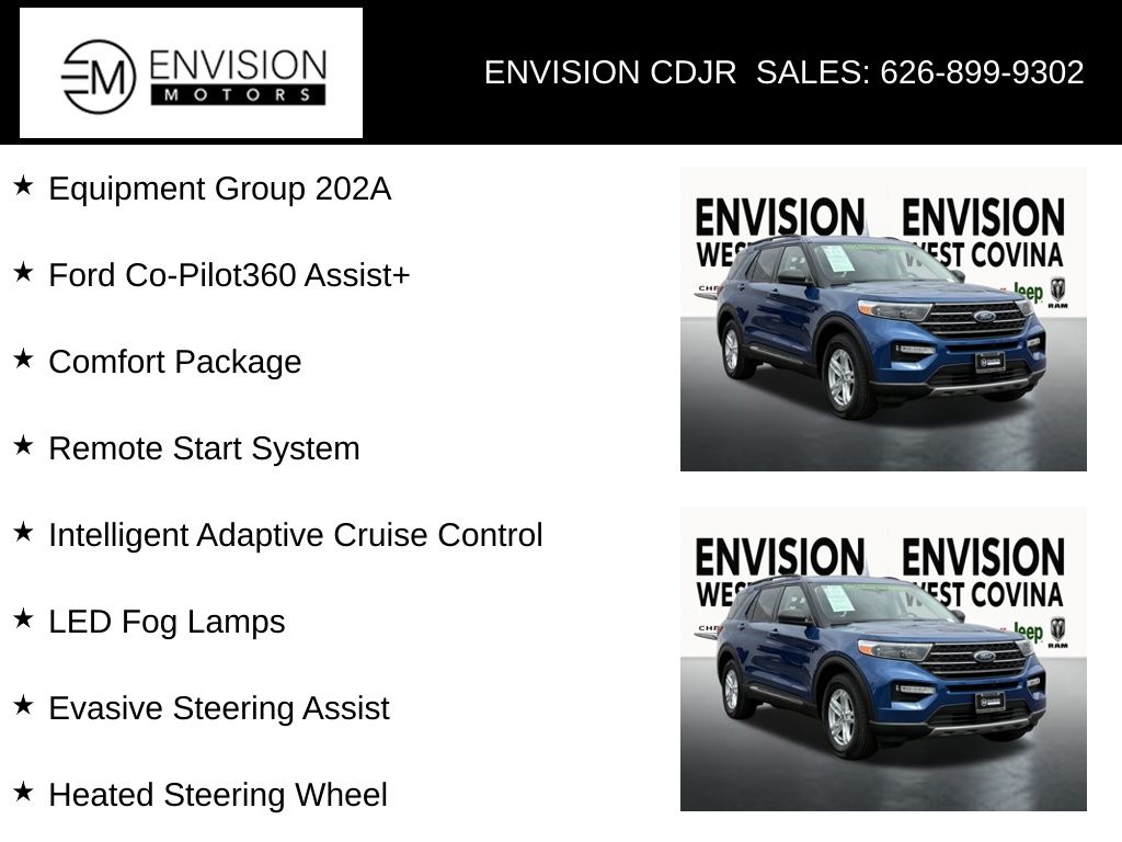WE SPECIALIZE IN ALL CREDIT PROFILES! See what we can do for you! Call to find out (626) 899-9302.CARFAX One-Owner.Odometer is 18973 miles below market average! 20/27 City/Highway MPG 4WD, 1st & 2nd Row Heated Seats, ActiveX Captain's Chairs, Comfort Package, Equipment Group 202A, Evasive Steering Assist, Ford Co-Pilot360 Assist+, Heated Steering Wheel, Intelligent Adaptive Cruise Control, LED Fog Lamps, Remote Start System, Voice-Activated Touchscreen Navigation System.Atlas Blue Metallic2020 Ford Explorer XLT 4WD 10-Speed Automatic 2.3L EcoBoost I-4**********All Pricing and Advertised Prices for any/all vehicles offered for sale does not include dealer installed accessories which can be purchased for an additional cost.********** The Factory Rebates may not be available on this vehicle if you elect to take advantage of a Special Alternative APR or Special Lease program. Some Factory Rebates are California Resident specific and may vary for residents of other states. NO sales to Dealers, Brokers or Exporters. For out of state purchase, customers must be present to purchase. If shipping is required, dealership must facilitate; no exceptions. Please contact us for special Multi-Vehicle or Fleet pricing. Prices are plus government fees and taxes, any finance charges, $85 documentary fee, $29 electronic registration fee, any emission testing charge and $1.75 per new tire state tire fee. *** We make every effort to provide accurate information, but please verify before purchasing. Leasing & financing available on approved credit. Trade-ins accepted. Subject to prior sale.Awards: * 2020 KBB.com 10 Favorite New-for-2020 Cars * 2020 KBB.com 10 Best SUVs Worth Waiting For