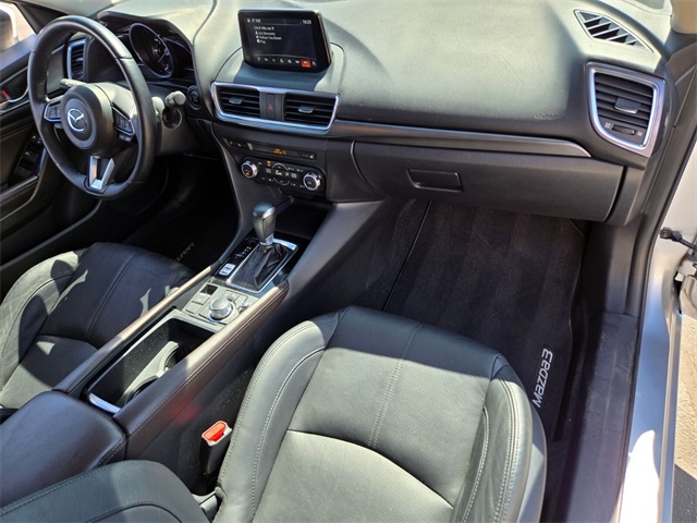 CARFAX One-Owner.Odometer is 24766 miles below market average!27/36 City/Highway MPGSonic Silver Metallic 2018 Mazda Mazda3 Grand Touring FWD 6-Speed Automatic SKYACTIV® 2.5L 4-Cylinder DOHC 16VIf you don't drive here, you can't save here!Awards: * 2018 KBB.com Brand Image AwardsPrice may not include recon fee. Premium Equipment Package (Auto-Dimming Interior Mirror w/HomeLink, Heated Steering Wheel, High Beam Control, Lane Departure Warning System, Lane Keep Assist, Mazda Navigation System, Mazda Radar Cruise Control, Pivoting Adaptive Front-Lighting System, Smart Brake Support, and Traffic Sign Recognition), 4-Wheel Disc Brakes, 9 Speakers, ABS brakes, Air Conditioning, Alloy wheels, AM/FM radio: SiriusXM, Automatic temperature control, Bose 9 Speaker Surround Sound Audio System, Brake assist, Bumpers: body-color, Driver door bin, Driver vanity mirror, Dual front impact airbags, Dual front side impact airbags, Electronic Stability Control, Emergency communication system: MAZDA CONNECT, Exterior Parking Camera Rear, Four wheel independent suspension, Front anti-roll bar, Front Bucket Seats, Front Center Armrest, Front dual zone A/C, Front fog lights, Front reading lights, Fully automatic headlights, Heated door mirrors, Heated front seats, Illuminated entry, Leather Shift Knob, Low tire pressure warning, Occupant sensing airbag, Outside temperature display, Overhead airbag, Overhead console, Panic alarm, Passenger door bin, Passenger vanity mirror, Perforated Leather Seat Trim, Power door mirrors, Power driver seat, Power moonroof, Power steering, Power windows, Radio data system, Radio: AM/FM/HD Audio System, Rain sensing wipers, Rear anti-roll bar, Rear seat center armrest, Rear window defroster, Rear window wiper, Remote keyless entry, Speed control, Speed-sensing steering, Split folding rear seat, Spoiler, Steering wheel mounted audio controls, Tachometer, Telescoping steering wheel, Tilt steering wheel, Traction control, Trip computer, Turn signal indicator mirrors, Variable Heated Reclining Front Bucket Seats, Variably intermittent wipers, and Wheels: 18" x 7.0J" Dark Silver Finish Alloy.