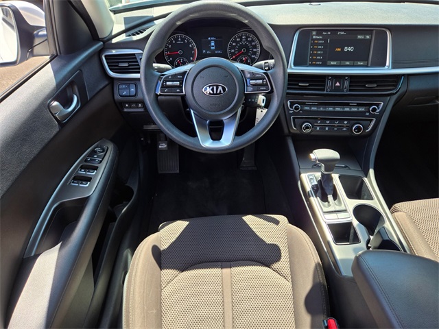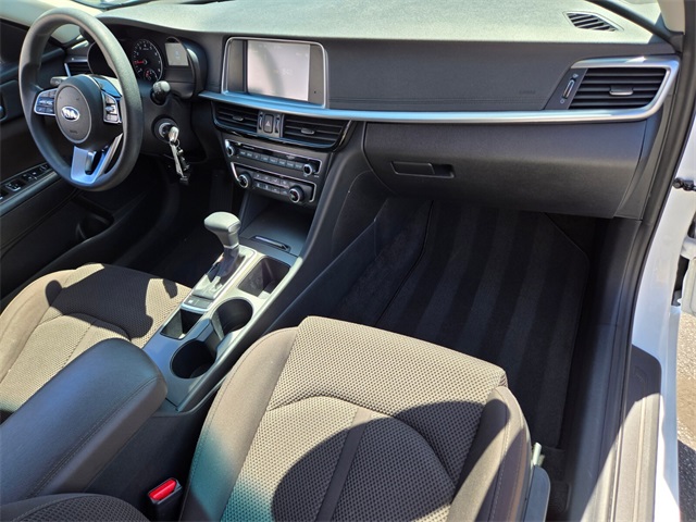 Recent Arrival!CARFAX One-Owner.Odometer is 25224 miles below market average!24/33 City/Highway MPGSnow White Pearl 2019 Kia Optima LX FWD 6-Speed Automatic with Sportmatic 2.4L I4 DGI DOHC Black Cloth.If you don't drive here, you can't save here!Awards: * 2019 KBB.com 10 Best Sedans Under $30,000 * 2019 KBB.com 10 Most Comfortable Cars Under $30,000Price may not include recon fee. LX Brown Interior Color Package, Black Cloth, 4-Wheel Disc Brakes, 6 Speakers, 6.5J x 16" Silver Alloy Wheels, ABS brakes, Air Conditioning, Alloy wheels, AM/FM radio, Anti-whiplash front head restraints, Apple CarPlay & Android Auto, Auto High-beam Headlights, Brake assist, Bumpers: body-color, Cargo Net, Carpet Floor Mats, Cloth Seat Trim, Delay-off headlights, Driver door bin, Driver vanity mirror, Dual front impact airbags, Dual front side impact airbags, Electronic Stability Control, Four wheel independent suspension, Front anti-roll bar, Front Bucket Seats, Front Center Armrest, Front reading lights, Fully automatic headlights, Heated door mirrors, Illuminated entry, Knee airbag, Low tire pressure warning, Occupant sensing airbag, Outside temperature display, Overhead airbag, Overhead console, Panic alarm, Passenger door bin, Passenger vanity mirror, Power door mirrors, Power steering, Power windows, Radio data system, Radio: AM/FM/MP3 Audio System, Rear anti-roll bar, Rear seat center armrest, Rear window defroster, Remote keyless entry, Security system, Speed control, Speed-sensing steering, Split folding rear seat, Steering wheel mounted audio controls, Tachometer, Telescoping steering wheel, Tilt steering wheel, Traction control, Trip computer, Turn signal indicator mirrors, Variably intermittent wipers, and Wheel Locks.