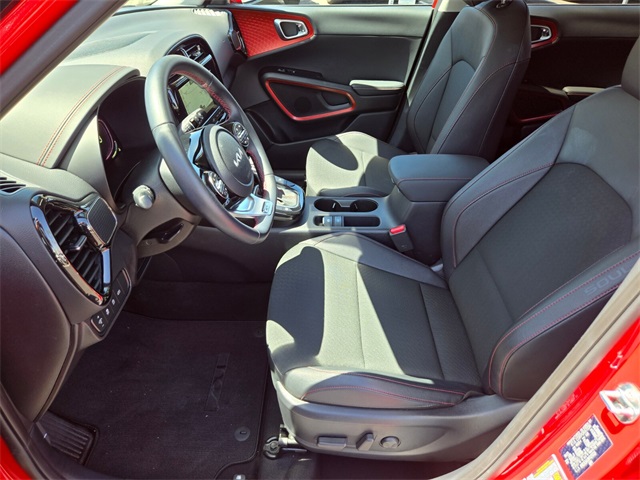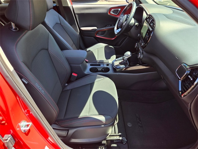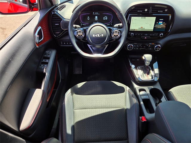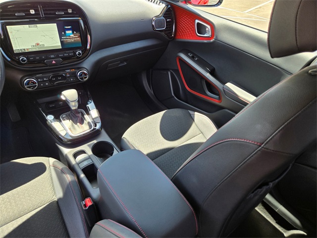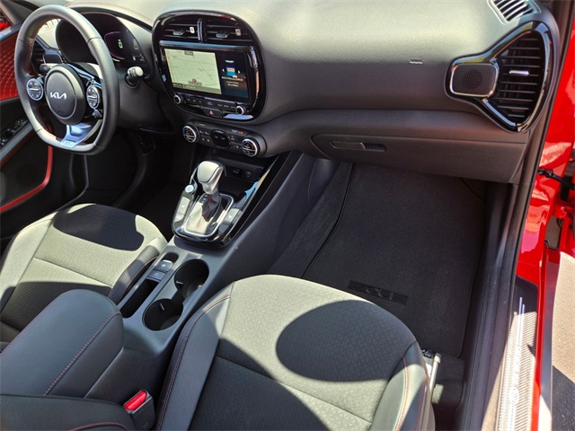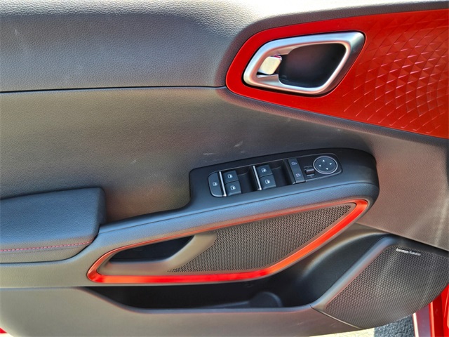 CARFAX One-Owner.Priced below KBB Fair Purchase Price!Odometer is 22008 miles below market average!28/33 City/Highway MPGInferno Red 2023 Kia Soul GT-Line FWD CVT 2.0L I4 DOHCIf you don't drive here, you can't save here!Price may not include recon fee. GT-Line Technology Package (10-Way Power Driver's Seat w/Lumbar Support, Cargo Cover, Dual Level Cargo Board, Electronic Parking Brake, Forward Collision Avoidance-Assist - Cyclist, harman/kardon Premium Audio, Heated Front Seats, Intelligent Speed Limit Assist (ISLA), LED Fog Lights, LED Headlights, Positioning Lights & Tail Lights, Navigation-Based Smart Cruise Control (NSCC-C), and Speaker Lights), 18" Alloy Wheels, 4-Wheel Disc Brakes, 6 Speakers, ABS brakes, Air Conditioning, Alloy wheels, AM/FM radio: SiriusXM, Apple CarPlay & Android Auto, Auto High-beam Headlights, Automatic temperature control, Brake assist, Bumpers: body-color, Carpeted Floor Mats, Combination Cloth/Artificial Leather Seat Trim, Compass, Delay-off headlights, Driver door bin, Driver vanity mirror, Dual front impact airbags, Dual front side impact airbags, Dual Load Floor Cargo Tray, Electronic Stability Control, Emergency communication system, Exterior Parking Camera Rear, Front anti-roll bar, Front Bucket Seats, Front Center Armrest, Front dual zone A/C, Front reading lights, Front wheel independent suspension, Fully automatic headlights, Heated door mirrors, Illuminated entry, Leather Shift Knob, Leather steering wheel, Low tire pressure warning, Navigation System, Occupant sensing airbag, Outside temperature display, Overhead airbag, Overhead console, Panic alarm, Passenger door bin, Passenger vanity mirror, Power door mirrors, Power moonroof, Power steering, Power windows, Radio data system, Radio: AM/FM/MP3/HD Audio System, Rear seat center armrest, Rear window defroster, Rear window wiper, Remote keyless entry, Speed control, Speed-sensing steering, Split folding rear seat, Sport steering wheel, Steering wheel mounted audio controls, Tachometer, Telescoping steering wheel, Tilt steering wheel, Traction control, Trip computer, Turn signal indicator mirrors, and Variably intermittent wipers.