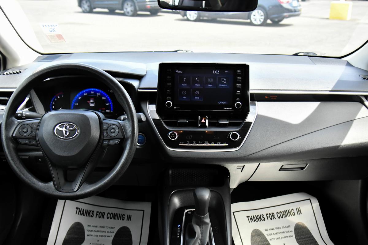 Scores 52 Highway MPG and 53 City MPG! This Toyota Corolla boasts a Gas/Electric I-4 1.8 L/110 engine powering this Variable transmission. Wheels: 15 Alloy w/Cover, Wheels w/Full Wheel Covers, Variable Intermittent Wipers.*This Toyota Corolla Comes Equipped with These Options *Urethane Gear Shifter Material, Trunk Rear Cargo Access, Trip Computer, Transmission: CVTi, Transmission w/Driver Selectable Mode, Tires: P195/65R15 All-Season, Tire mobility kit, Strut Front Suspension w/Coil Springs, Sliding Front Center Armrest and Rear Center Armrest, Single Stainless Steel Exhaust.