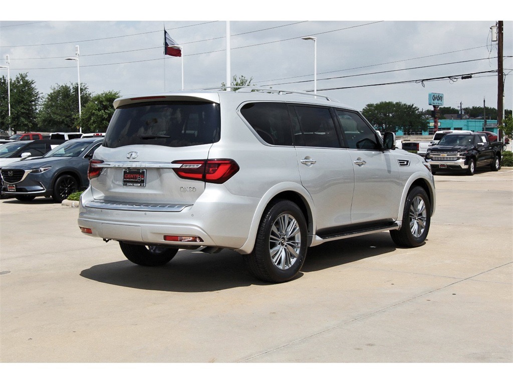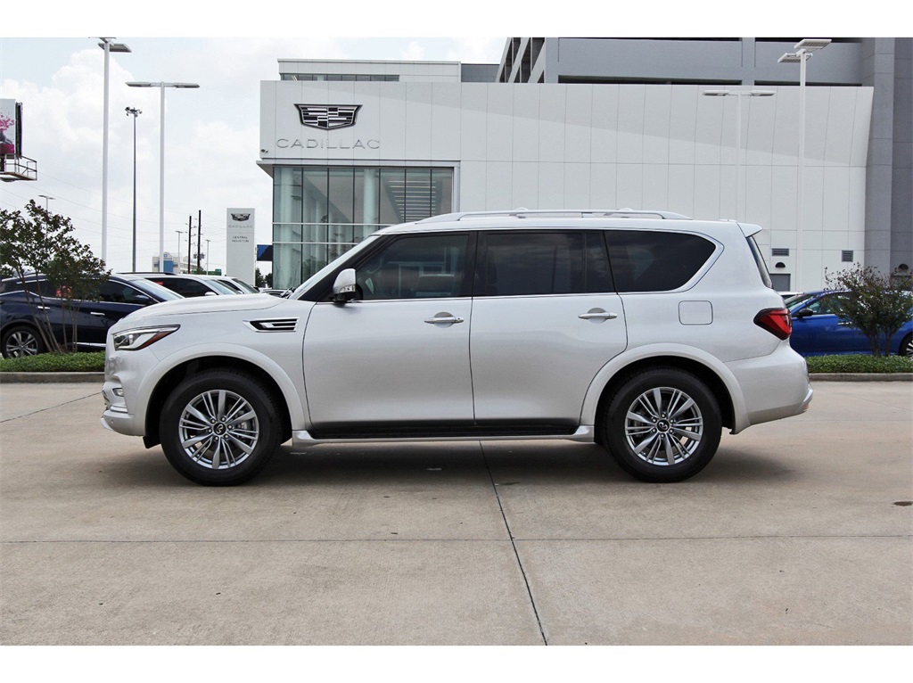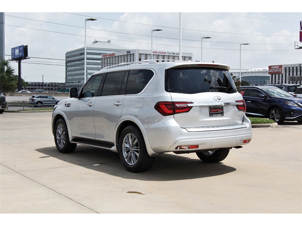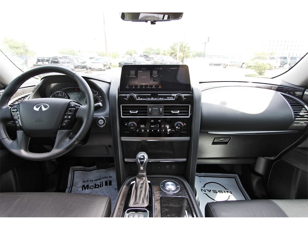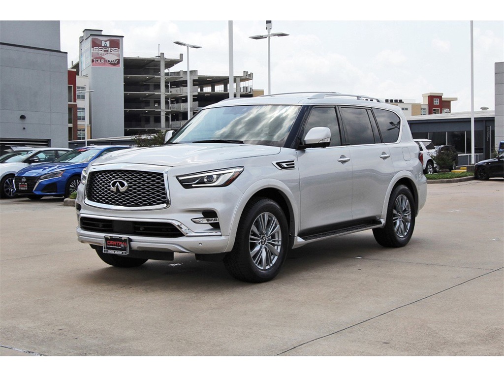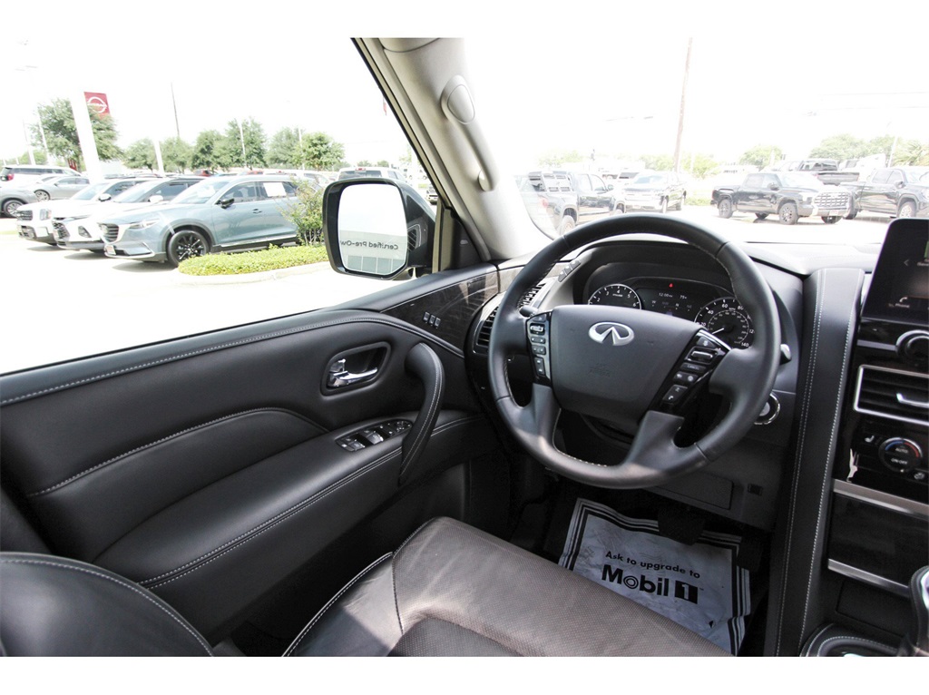 Central Houston Nissan is proud to present you with another True Market Priced Pre-Owned Vehicle. This 2022 INFINITI QX80 LUXE is loaded with the following Factory Options: Cargo Package (Console Net, First-Aid Kit, High-Density Non-Slip Rear Cargo Carpet, and Nylon-Cord Cargo Net), 13 Speakers, 2.937 Axle Ratio, 3rd row seats: split-bench, 4-Wheel Disc Brakes, ABS brakes, Air Conditioning, Alloy wheels, AM/FM radio: SiriusXM, Anti-whiplash front head restraints, Auto High-beam Headlights, Auto tilt-away steering wheel, Auto-dimming door mirrors, Auto-dimming Rear-View mirror, Auto-leveling suspension, Automatic temperature control, Brake assist, Bumpers: body-color, Compass, Delay-off headlights, Driver door bin, Driver vanity mirror, Dual front impact airbags, Dual front side impact airbags, Electronic Stability Control, Emergency communication system: INFINITI InTouch w/1-year trial, Four wheel independent suspension, Front anti-roll bar, Front Bucket Seats, Front Center Armrest, Front dual zone A/C, Front fog lights, Front reading lights, Fully automatic headlights, Garage door transmitter: HomeLink, Heated door mirrors, Heated Front Bucket Seats, Heated front seats, Heated steering wheel, Illuminated entry, INFINITI Radiant Illuminated Kick Plates (N93), Leather Shift Knob, Leather steering wheel, Leather-Appointed Seats, Literature Kit, Low tire pressure warning, Memory seat, Navigation system: INFINITI InTouch Navigation, Occupant sensing airbag, Outside temperature display, Overhead airbag, Overhead console, Panic alarm, Passenger door bin, Passenger vanity mirror, Power door mirrors, Power driver seat, Power Liftgate, Power moonroof, Power passenger seat, Power steering, Power windows, Premium audio system: Bose, Radio data system, Radio: Bose Premium Audio System w/13 Speakers, Rain sensing wipers, Rear air conditioning, Rear anti-roll bar, Rear reading lights, Rear seat center armrest, Rear window defroster, Rear window wiper, Reclining 3rd row seat, Remote keyless entry, Security system, Speed control, Speed-sensing steering, Split folding rear seat, Spoiler, Steering wheel memory, Steering wheel mounted audio controls, Tachometer, Telescoping steering wheel, Tilt steering wheel, Traction control, Trip computer, Turn signal indicator mirrors, Variably intermittent wipers, Voltmeter, and Wheels: 20" x 8.0" Aluminum-Alloy!!Central Houston Nissan is more than just your typical car dealership. When our customers visit us, our goal is to provide quality vehicles, exceptional service and a friendly atmosphere. Our staff has been trained to create ease during your purchase or service experience and we are always making sure you get everything you want and deserve out of your visit. Our vision and mission is an employee-centered and customer-focused environment. Vehicles may be subject to prep package and market adjustment. When you buy from Central Houston Nissan, we'll make it the best car buying experience you've ever had. When you purchase a New Nissan or a qualifying Pre-Owned vehicle from Central Houston Nissan, you are automatically enrolled into our Central Houston Nissan Central Care Program at no cost to you. You can’t beat that! Vehicles may be subject to prep package and market adjustment. Stop by 2901 S Loop W, Houston, Texas 77054 today!!!